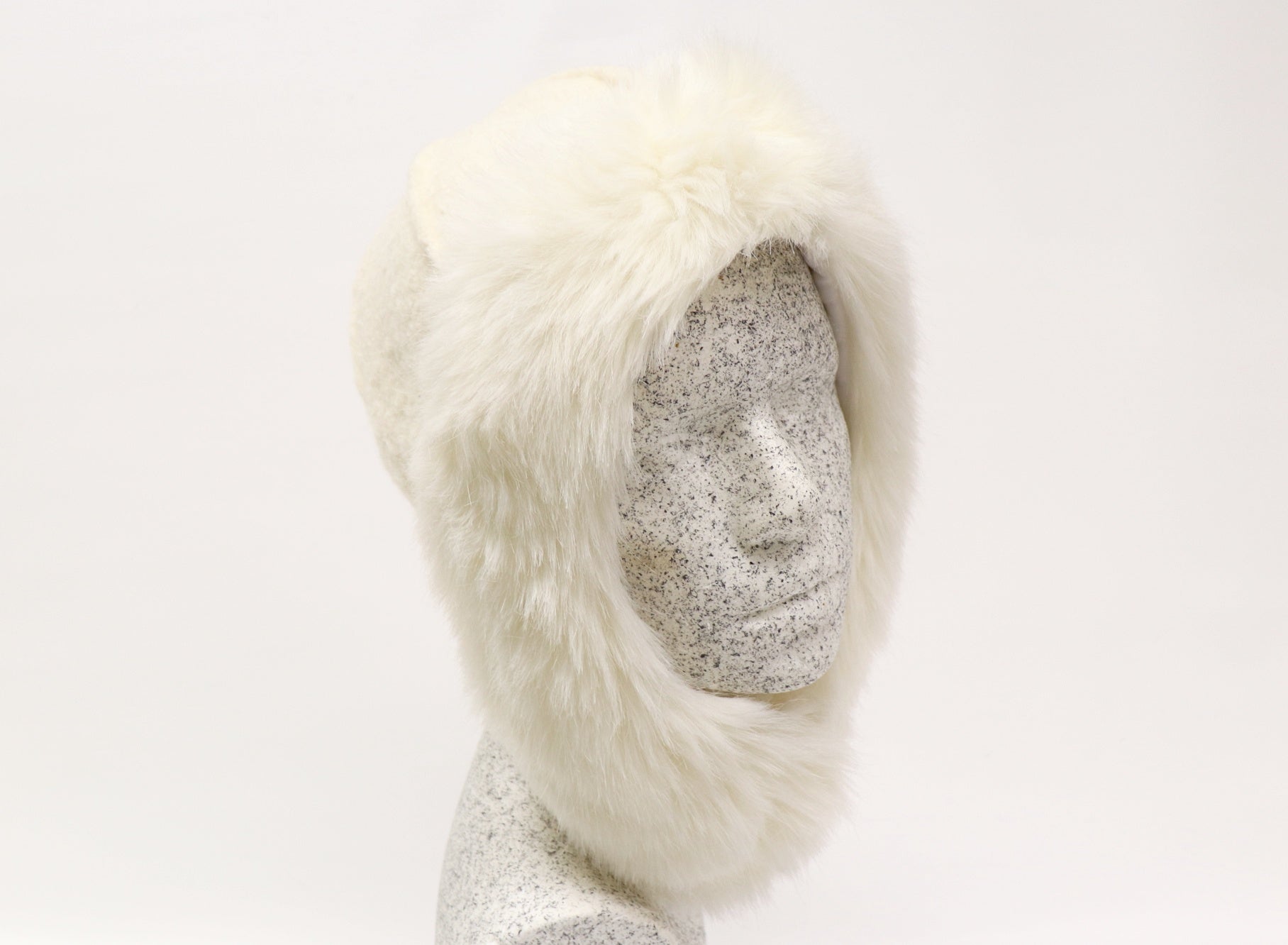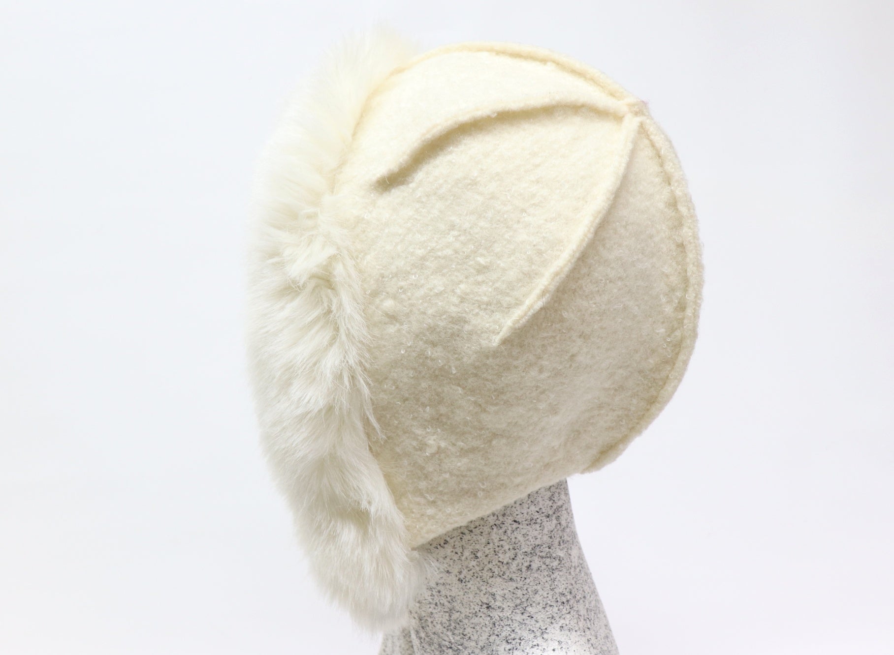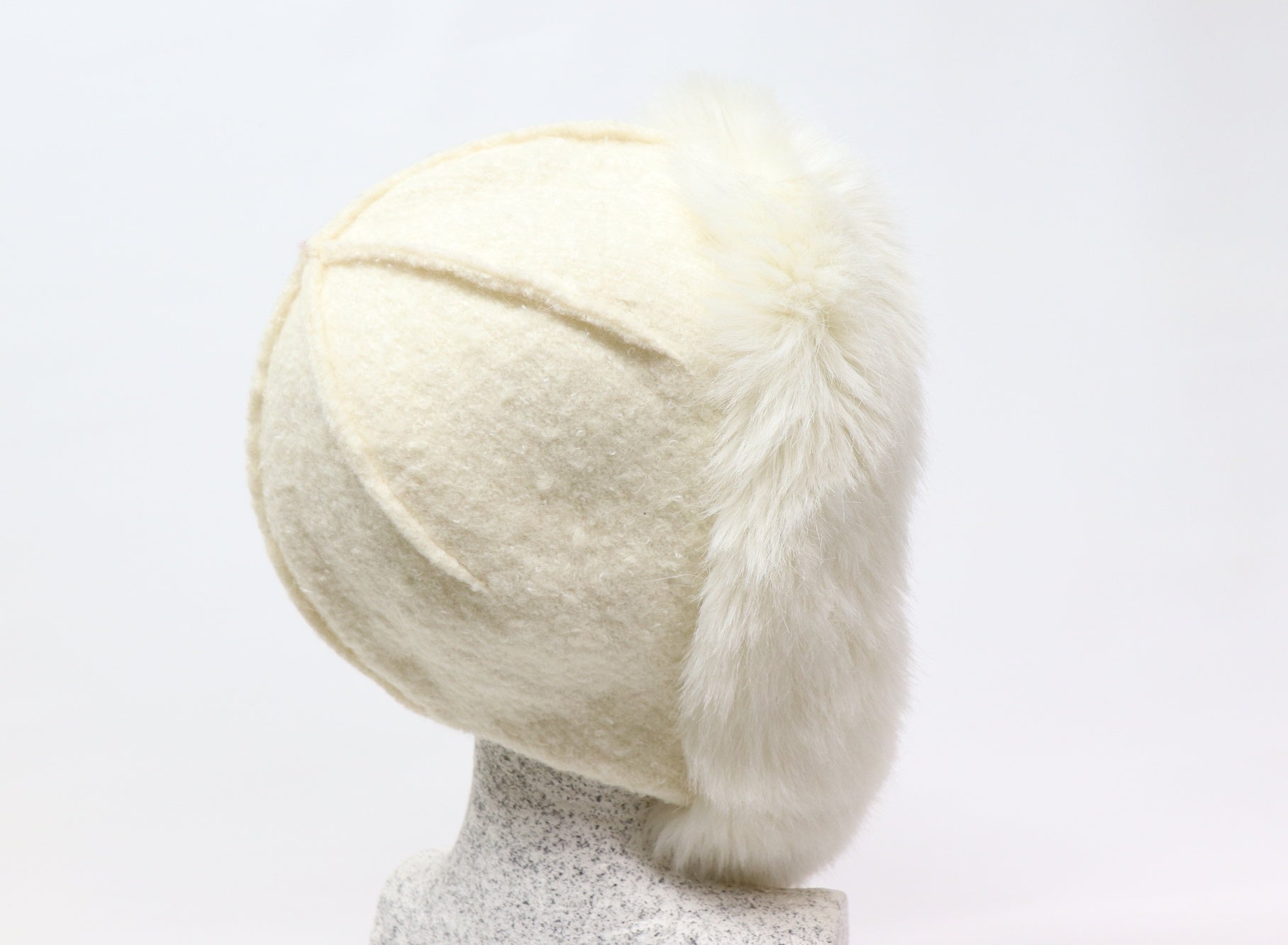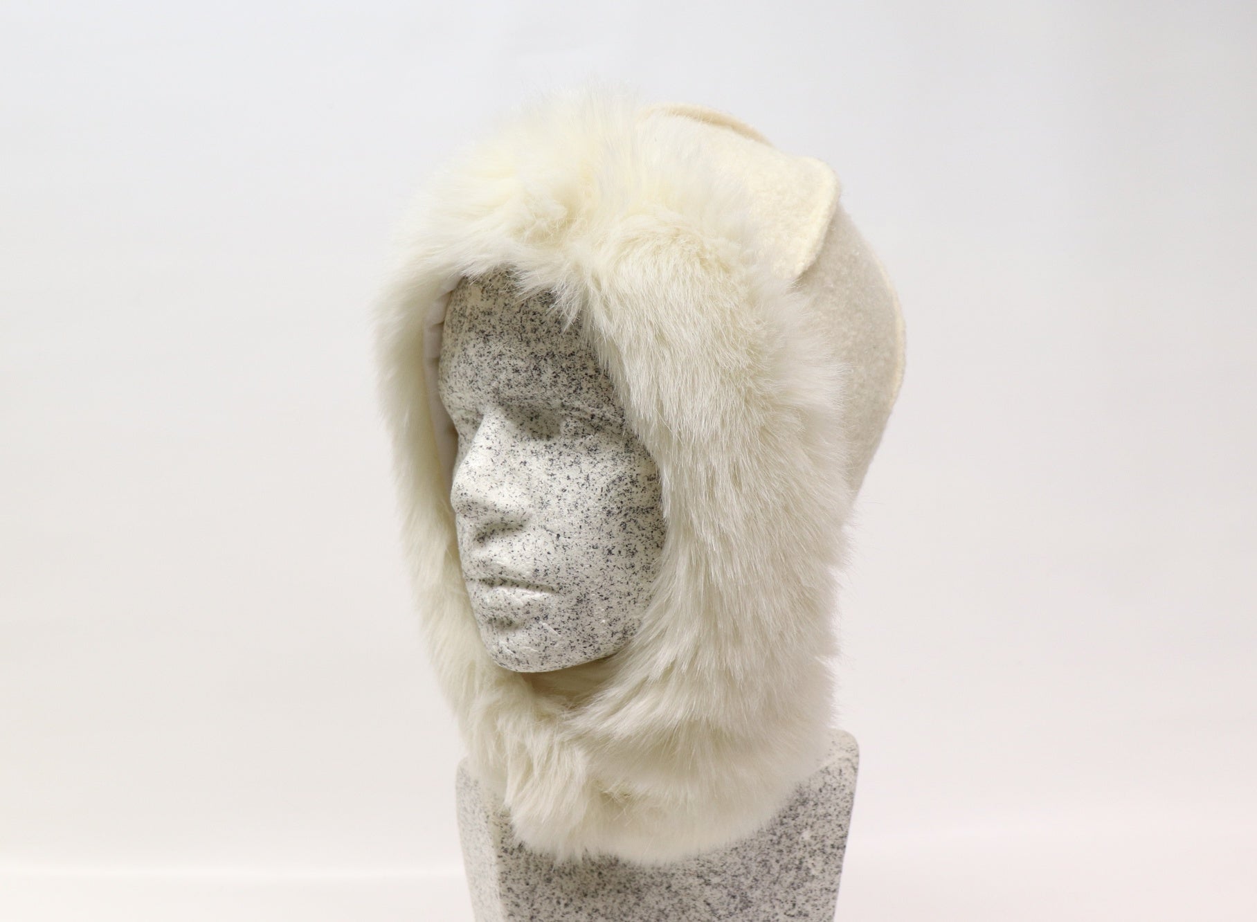 Astronautenmütze aus creme Wollstoff mit Webpelz