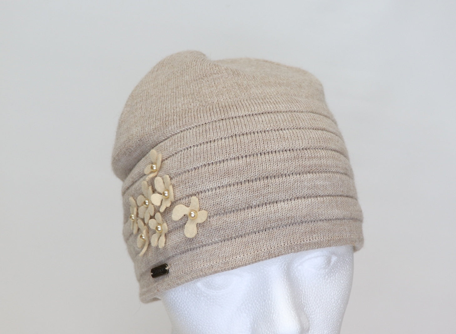 fashionable beanie by MC Burn – garnished with a flower appliqué on the side