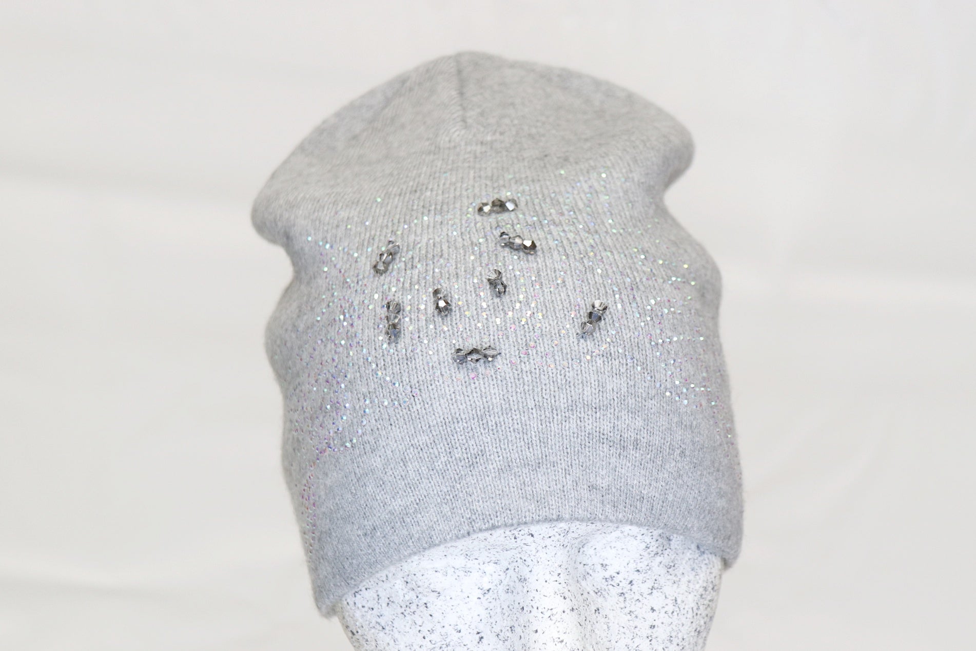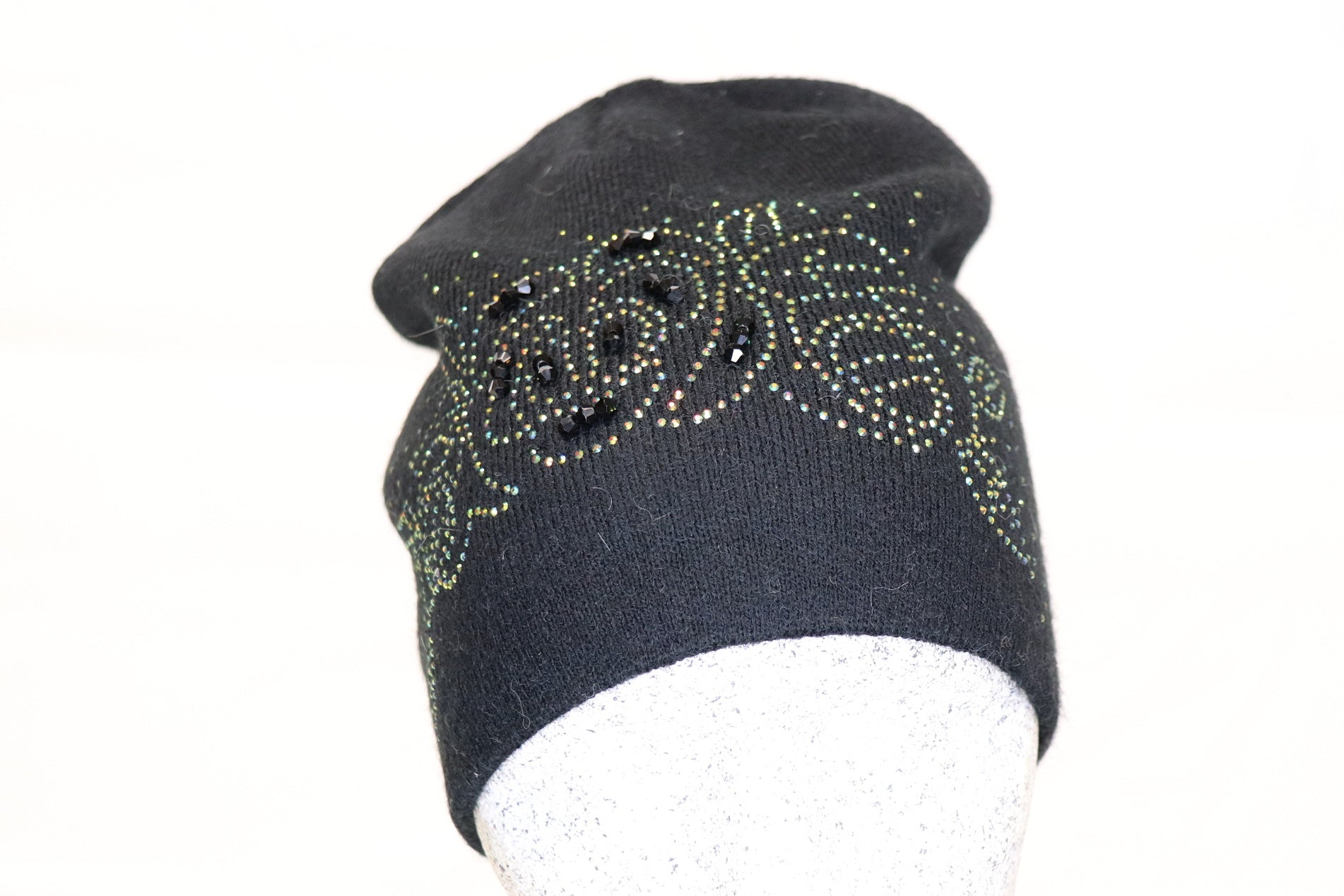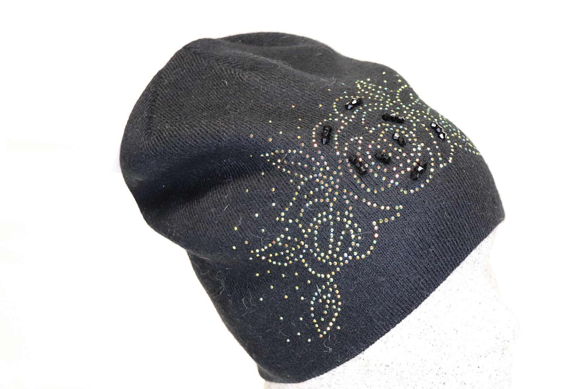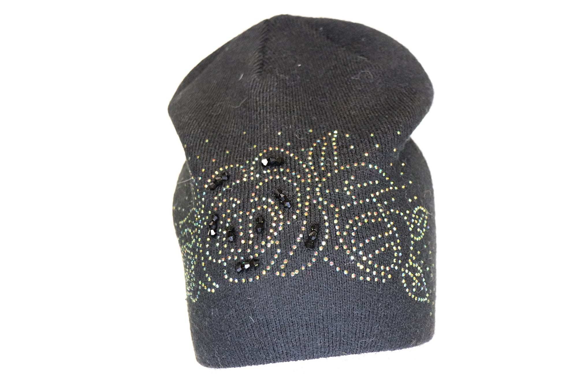 edle Mütze mit feinen Strassblüten und mit Perlen bestickt