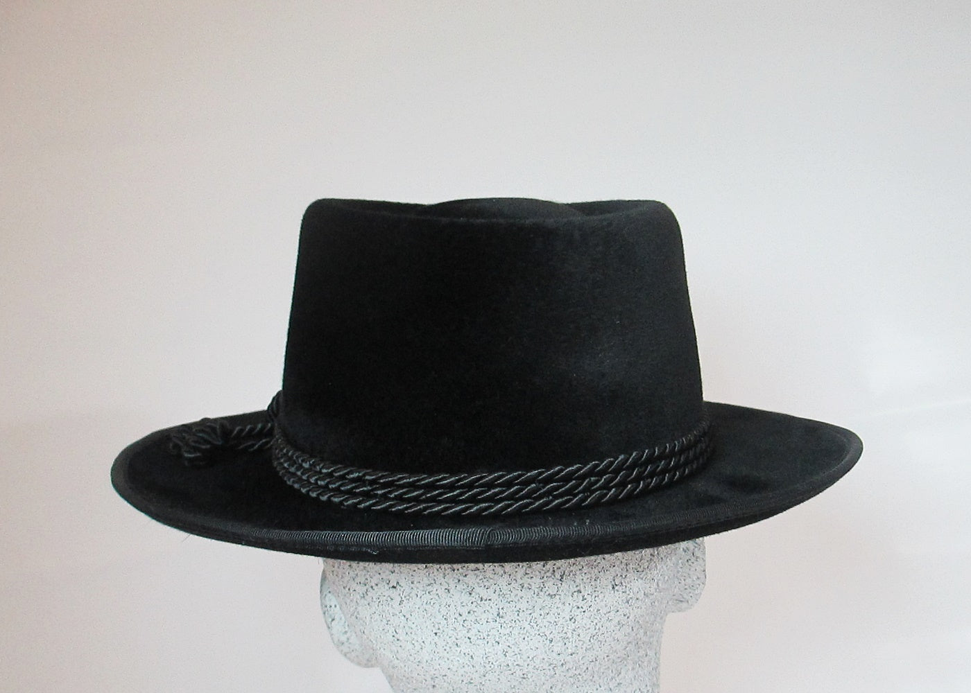 it is garnished with a black grosgrain ribbon can also be garnished with a cord