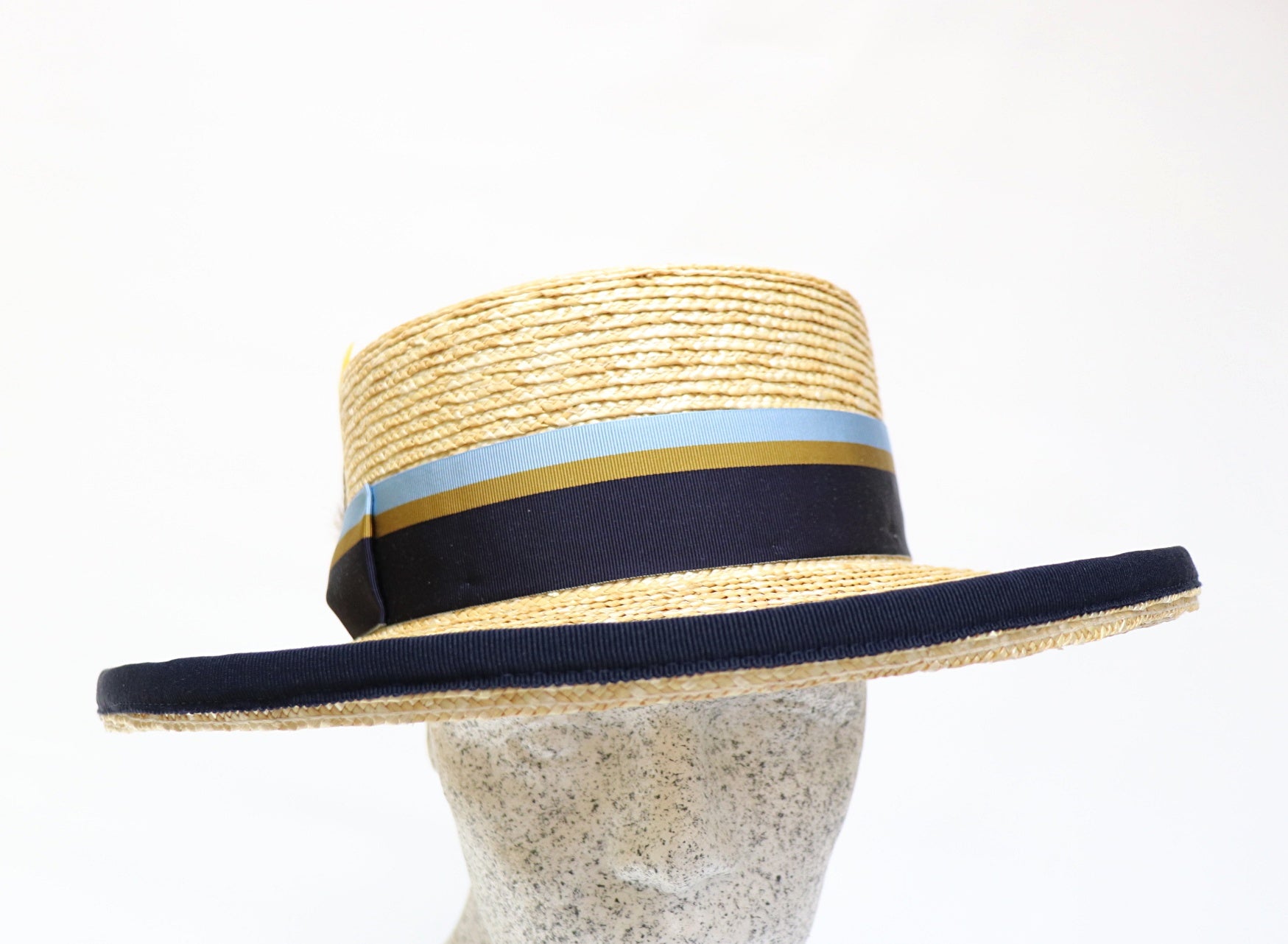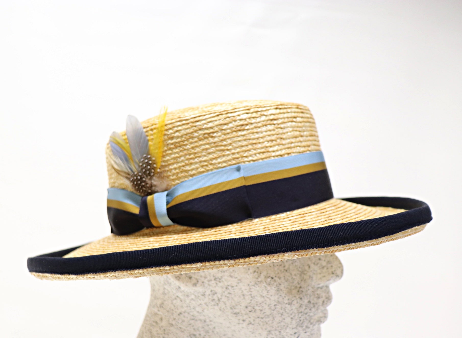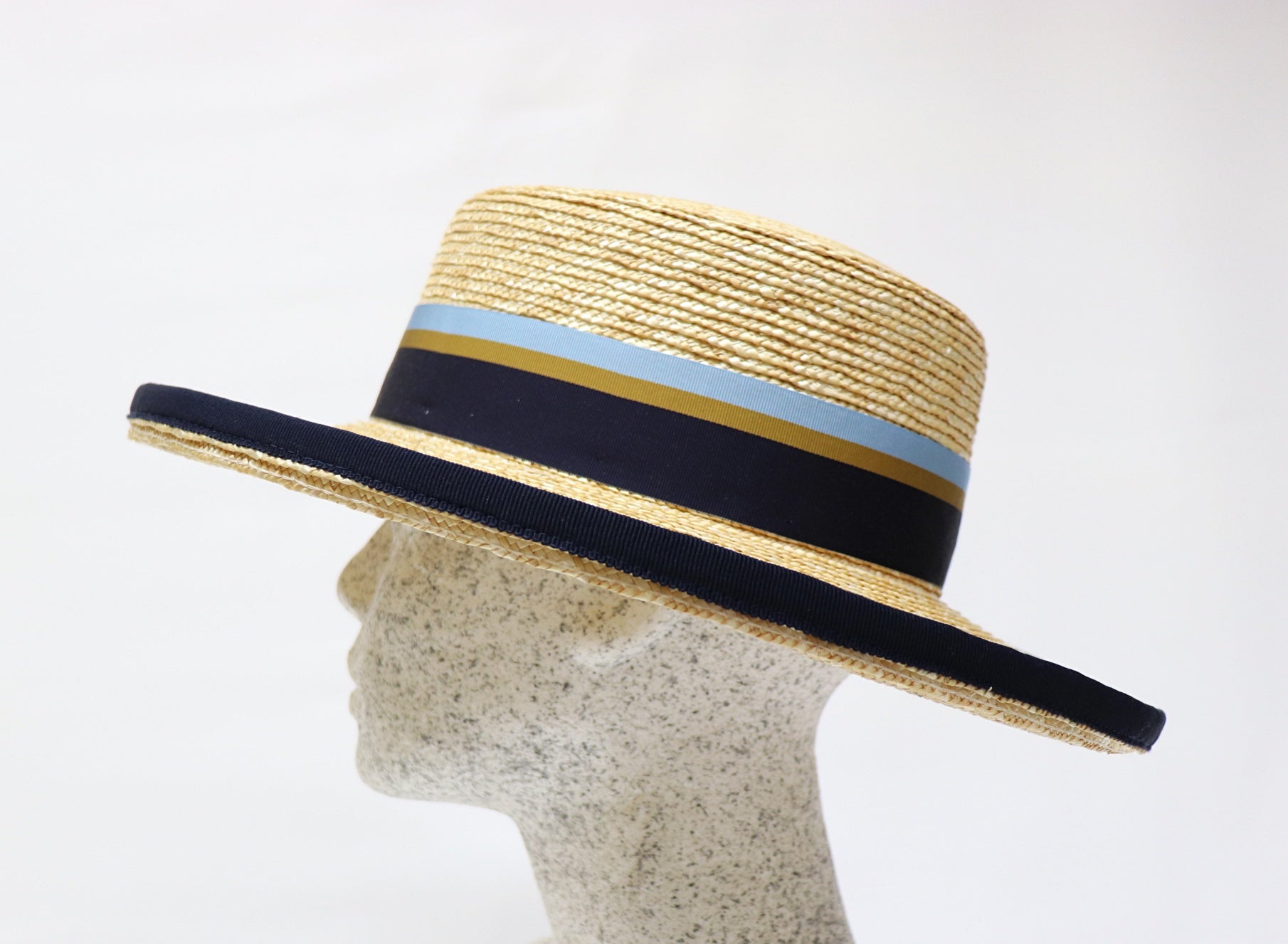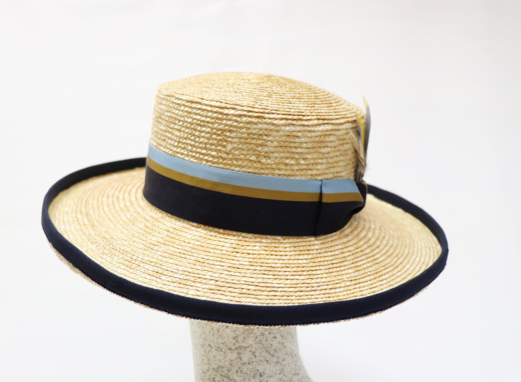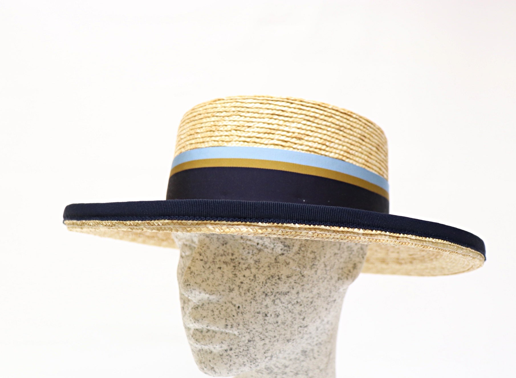 Bortenstrohhut natur mit Streifenband in modischer Matelotform