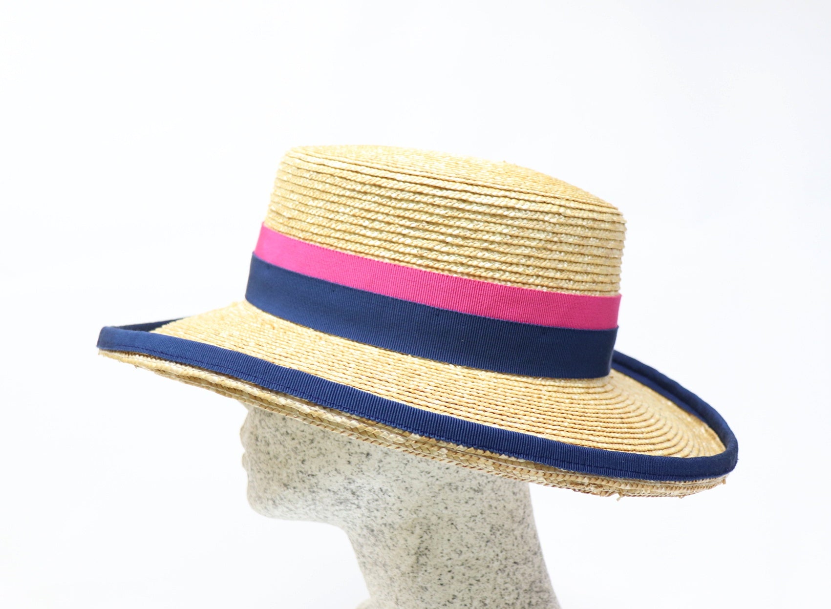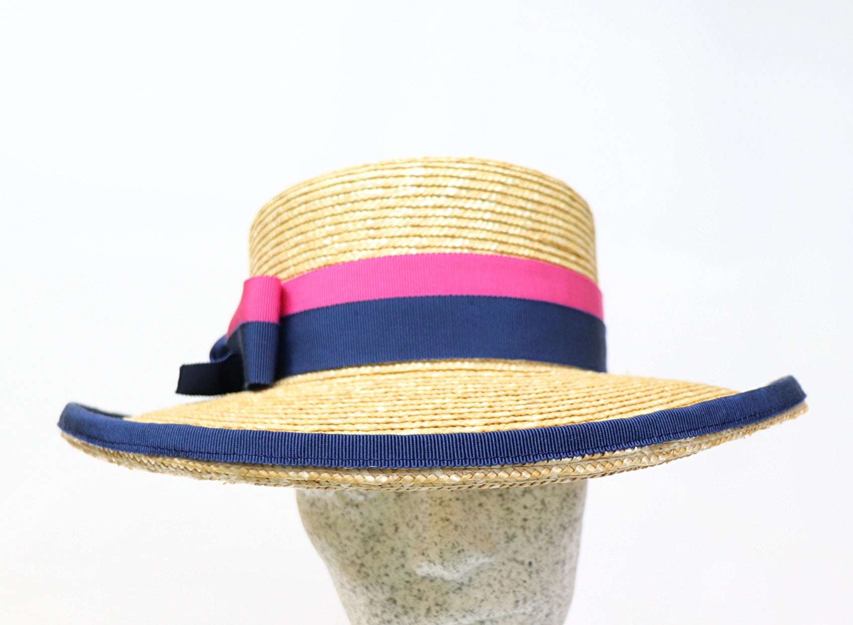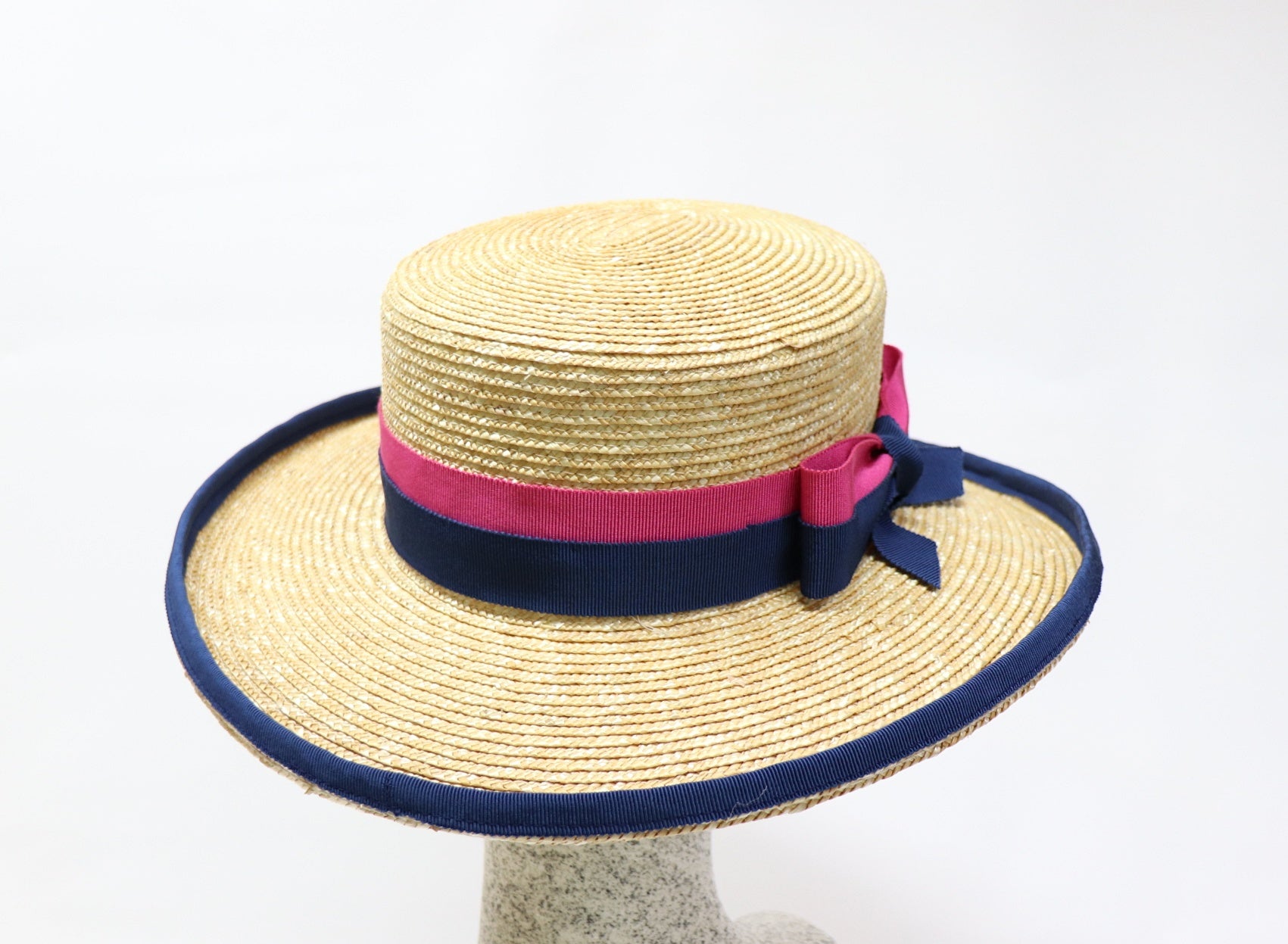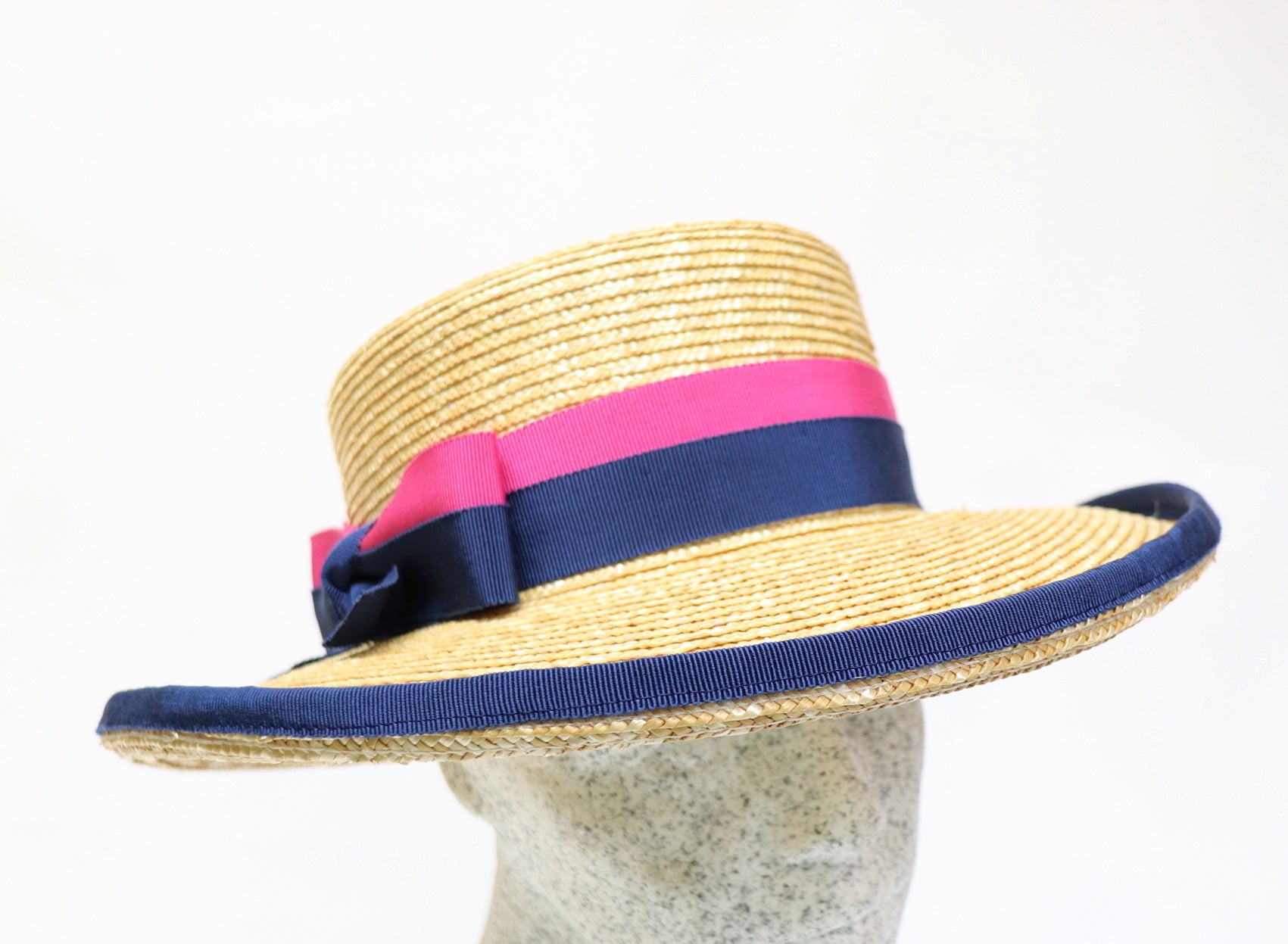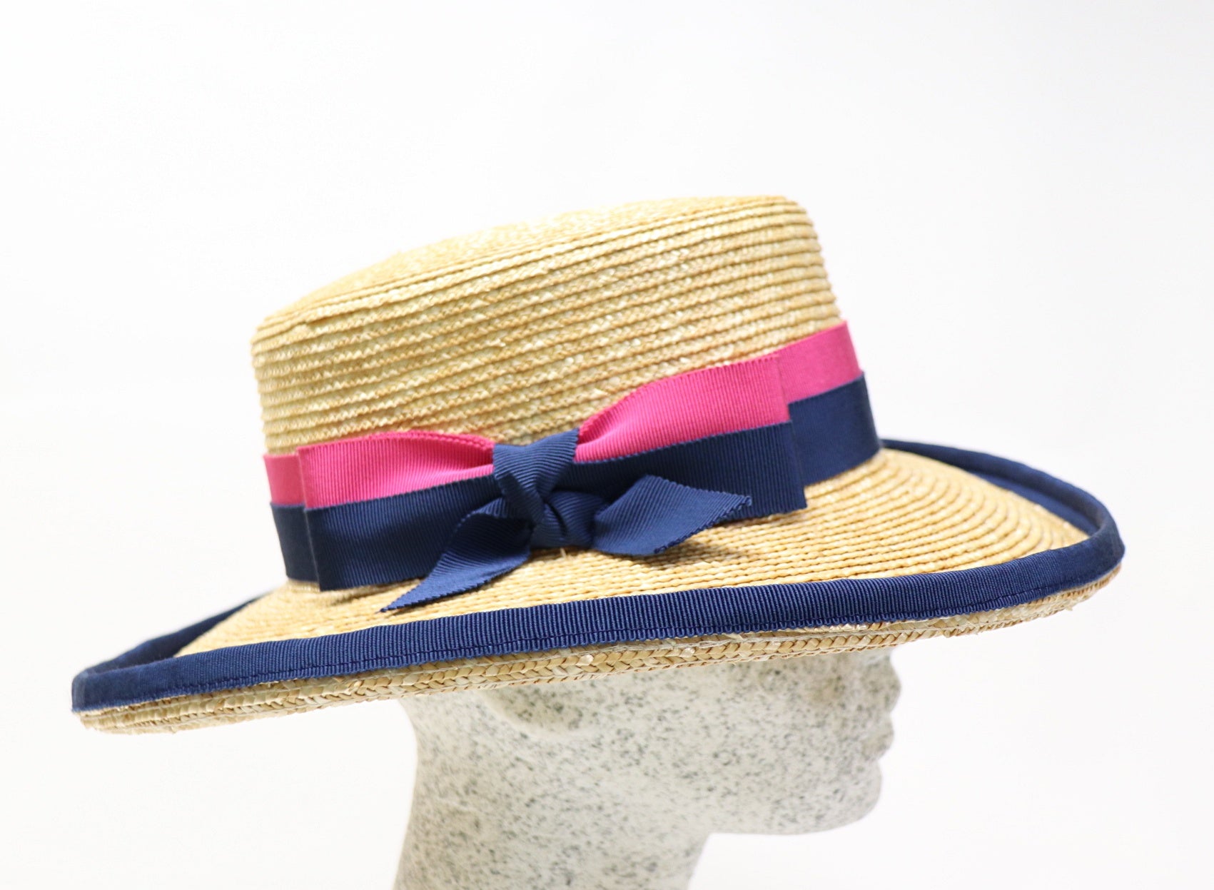 Bortenstrohhut natur mit Streifenband in modischer Matelotform
