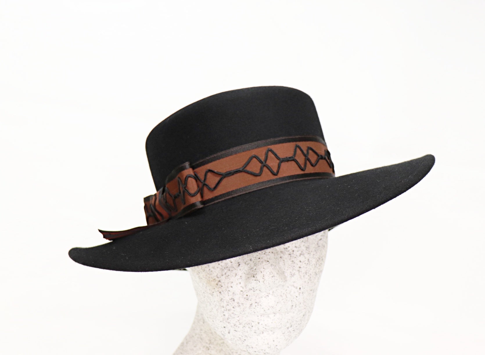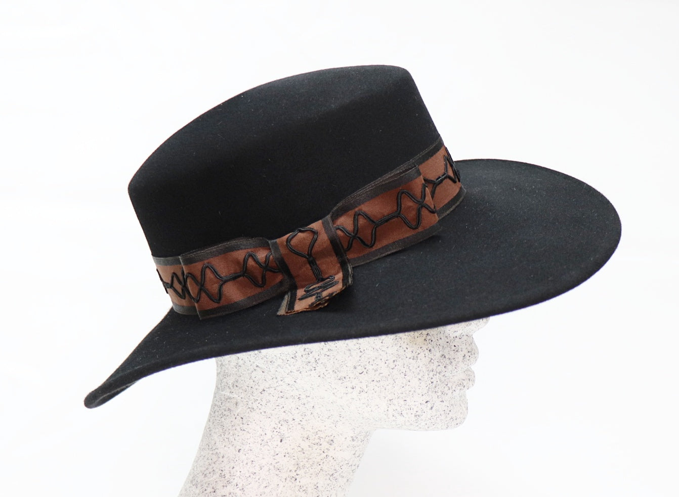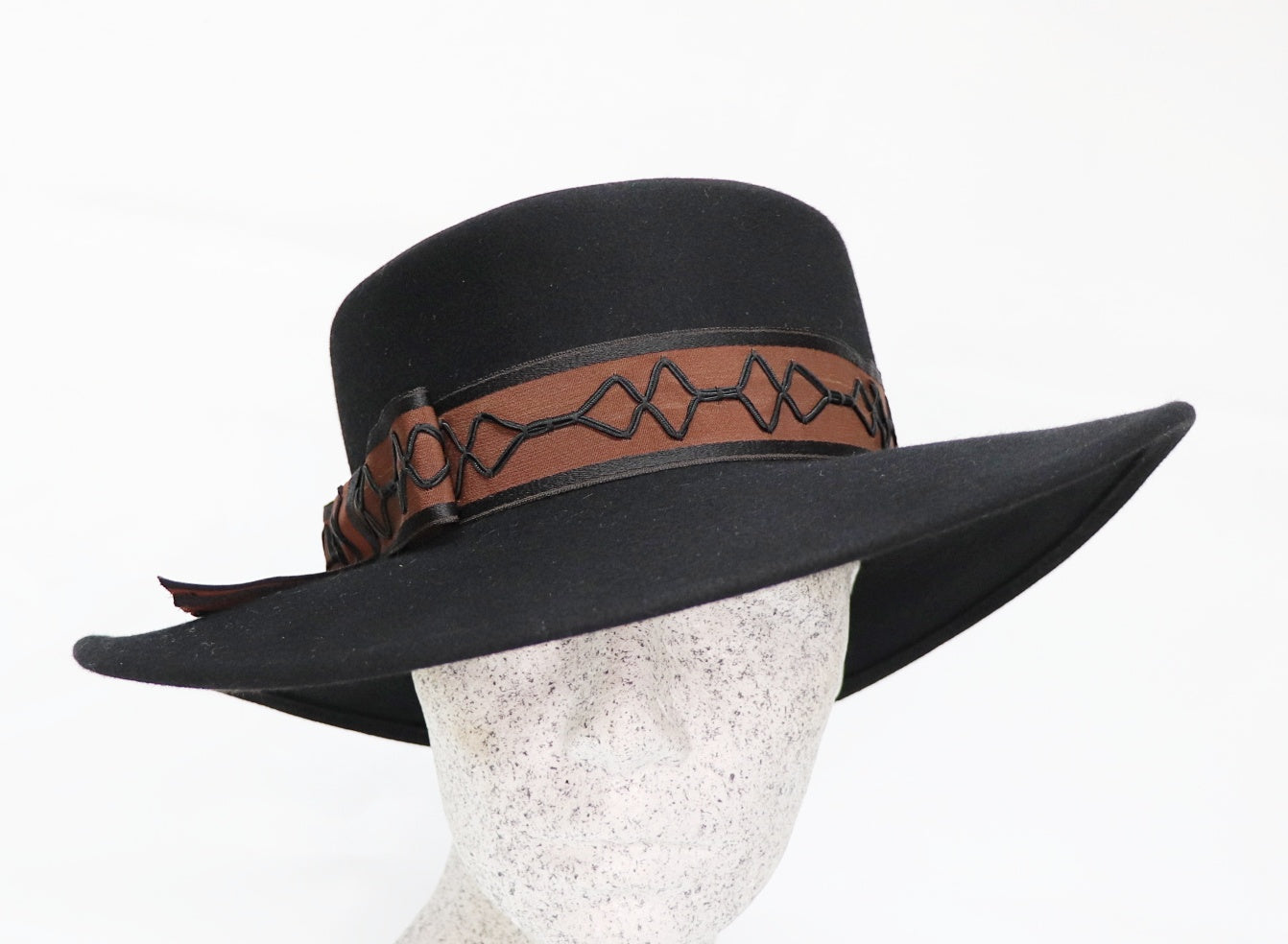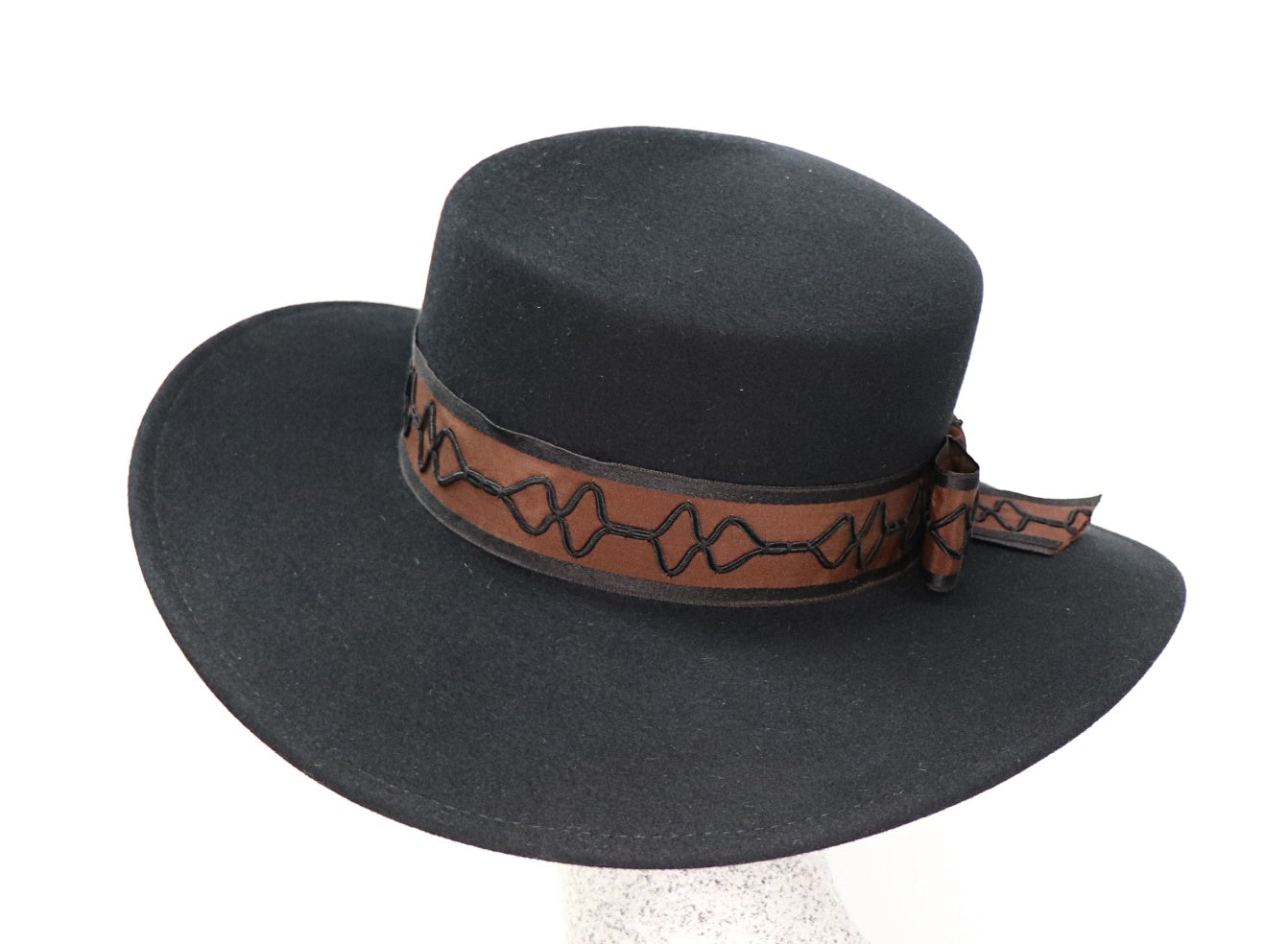 großer schwarzer Matelot aus feinem Haarfilz mit schwarz braun Band
