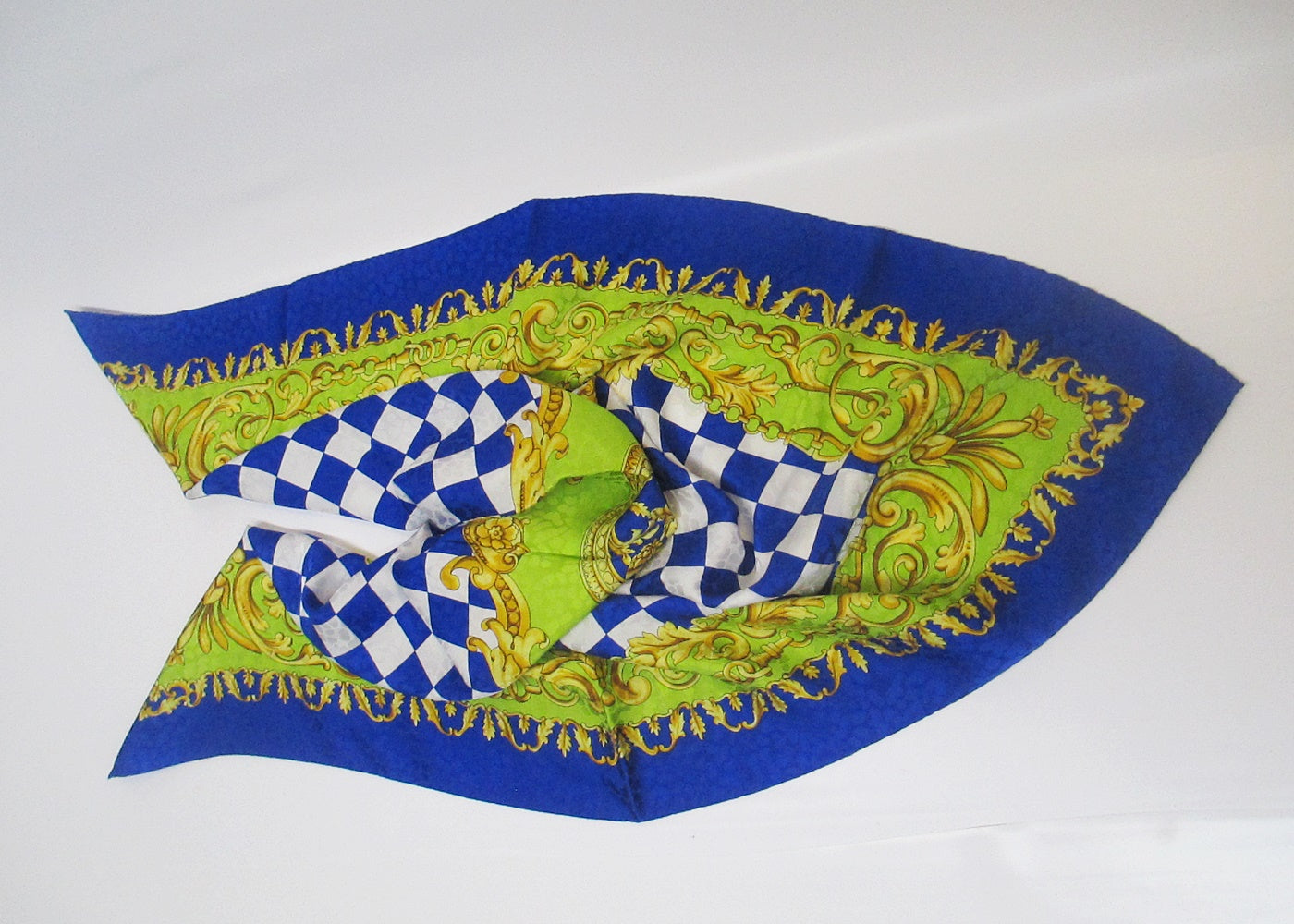 Jacquard - silk scarf - checkerboard pattern with chain motifs