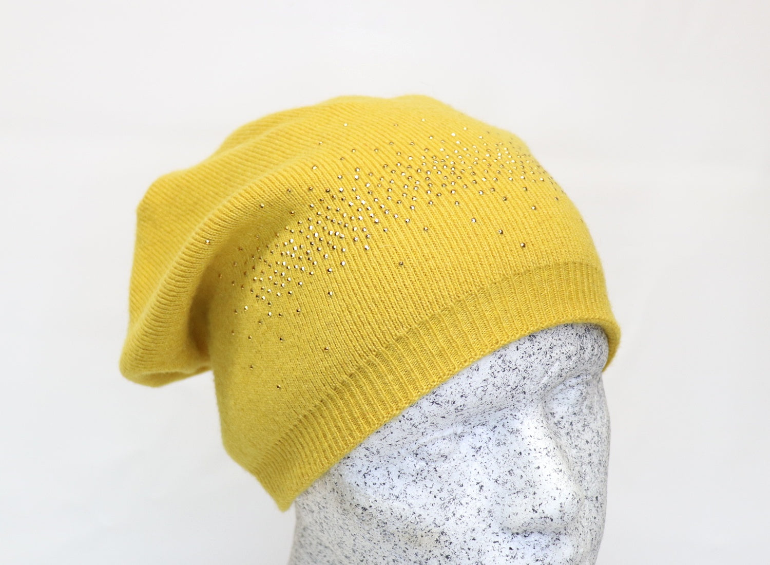 Kaschmir Woll Slouch mit feinen Steinchen und Schleife