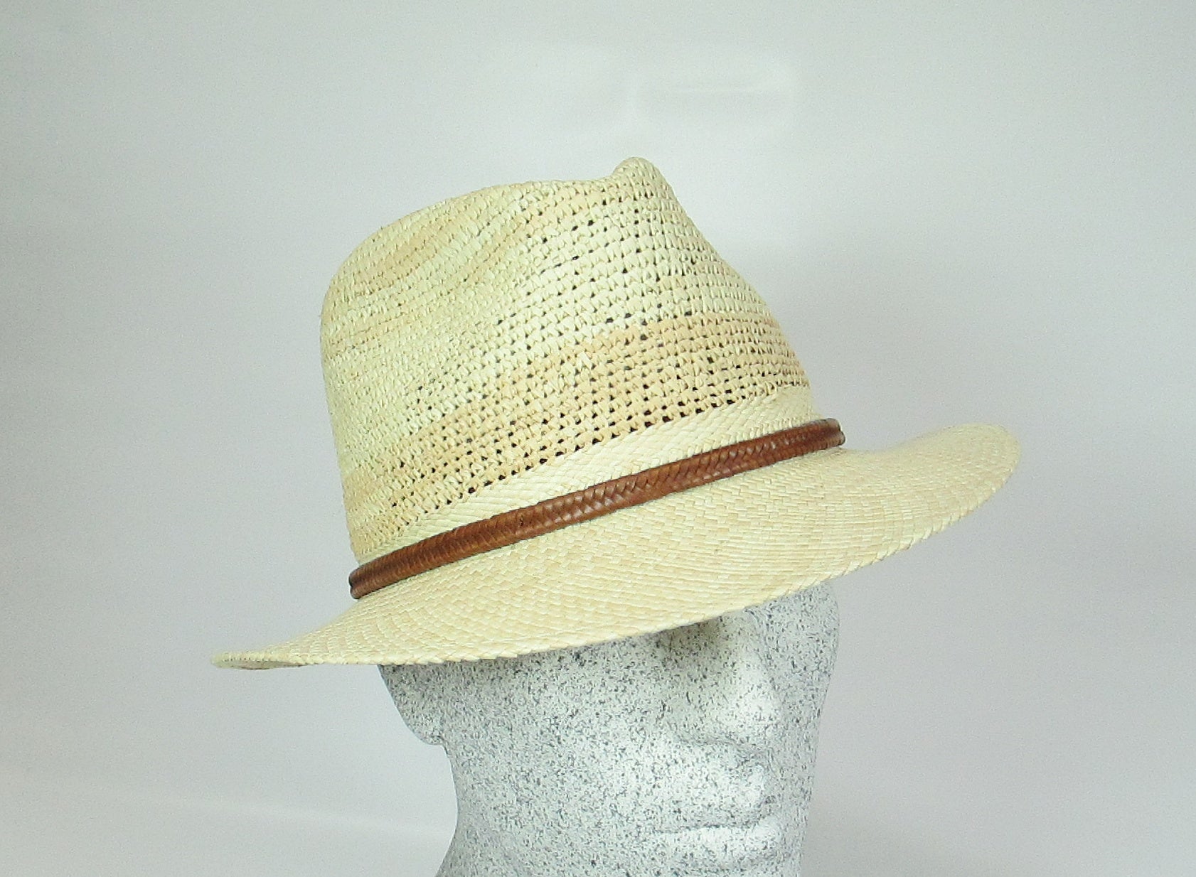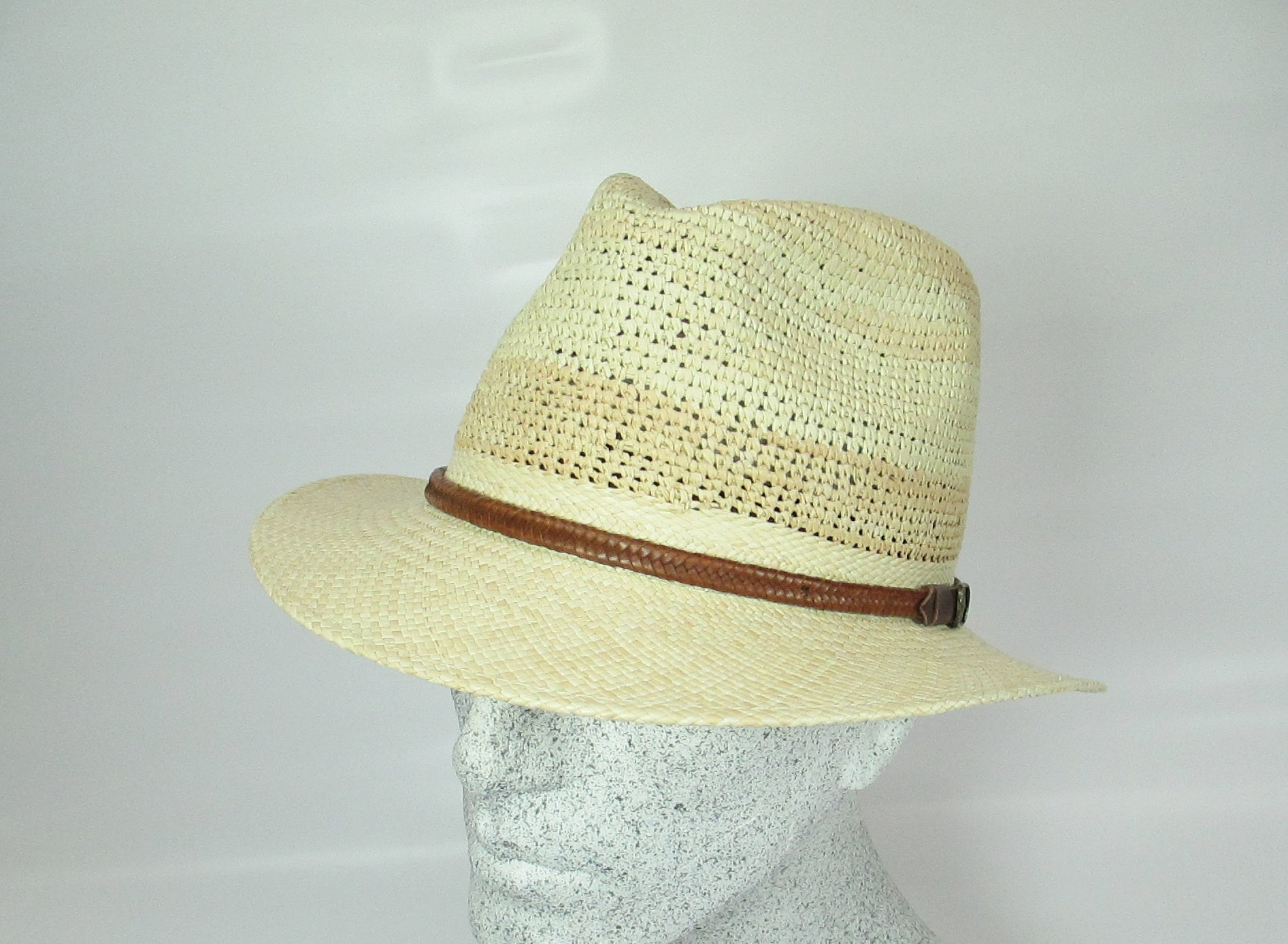 Sporty Panama straw hat garnished with a narrow - braided leather band
