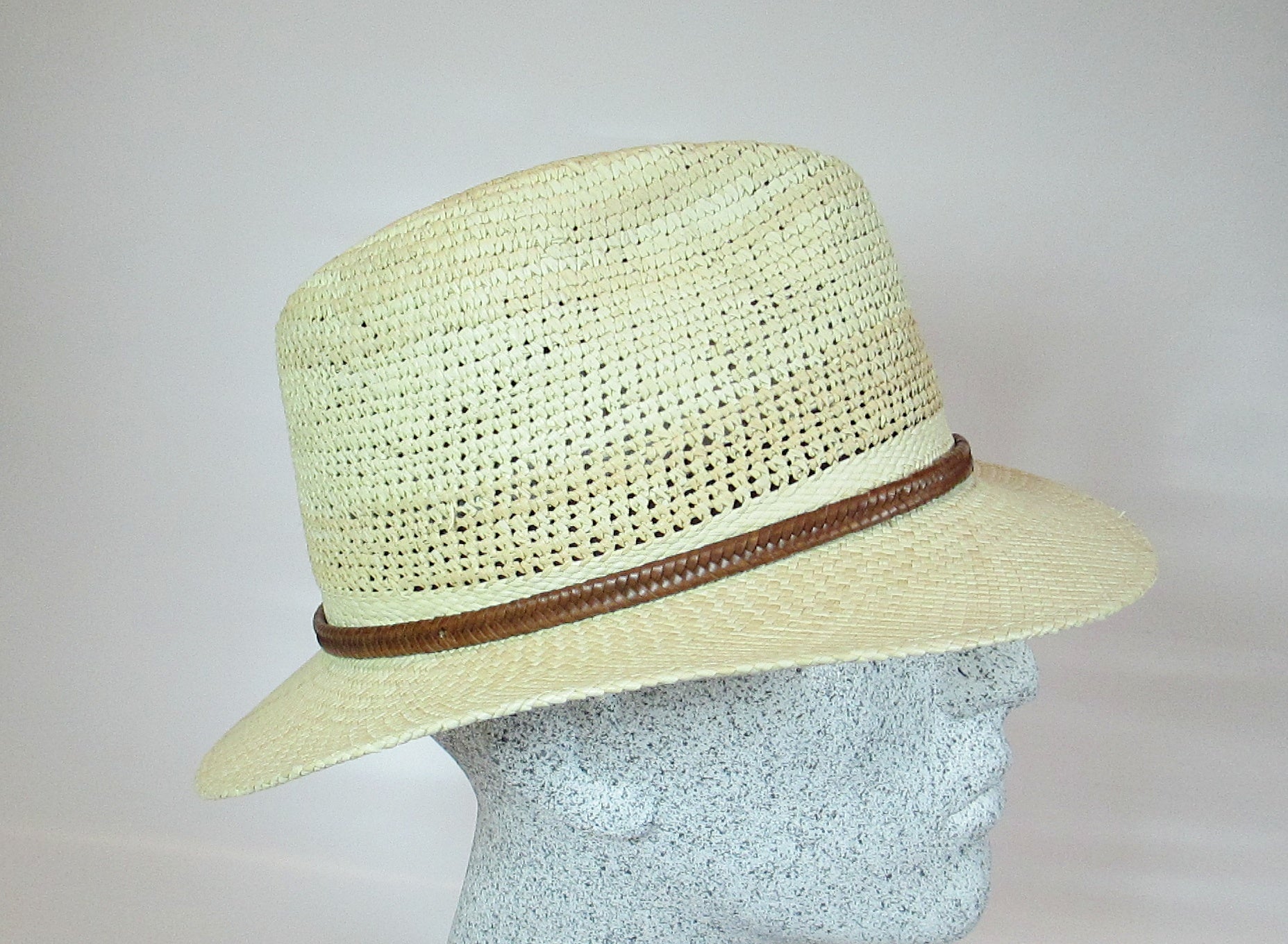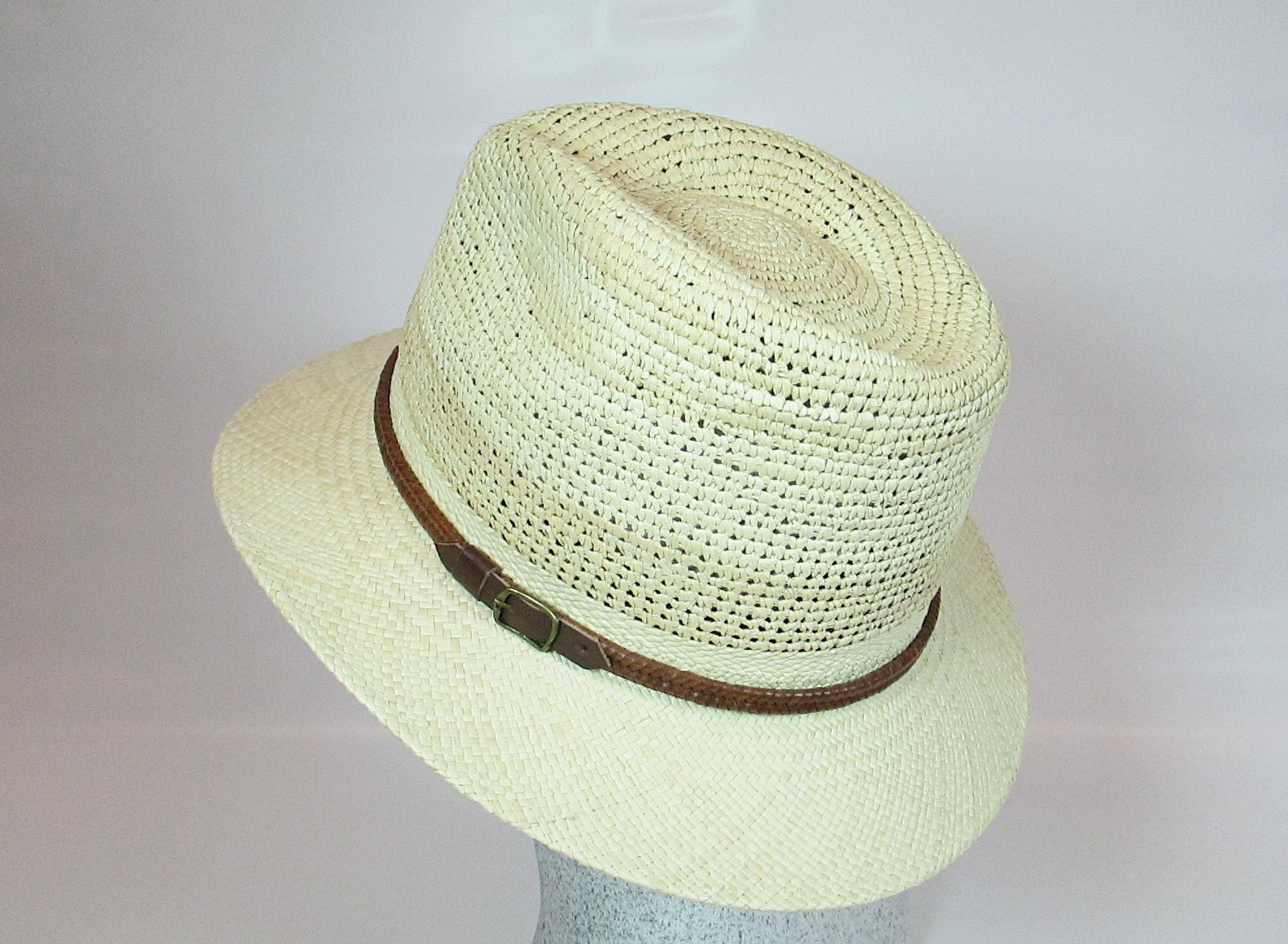 Panama natural with crochet head and leather strap