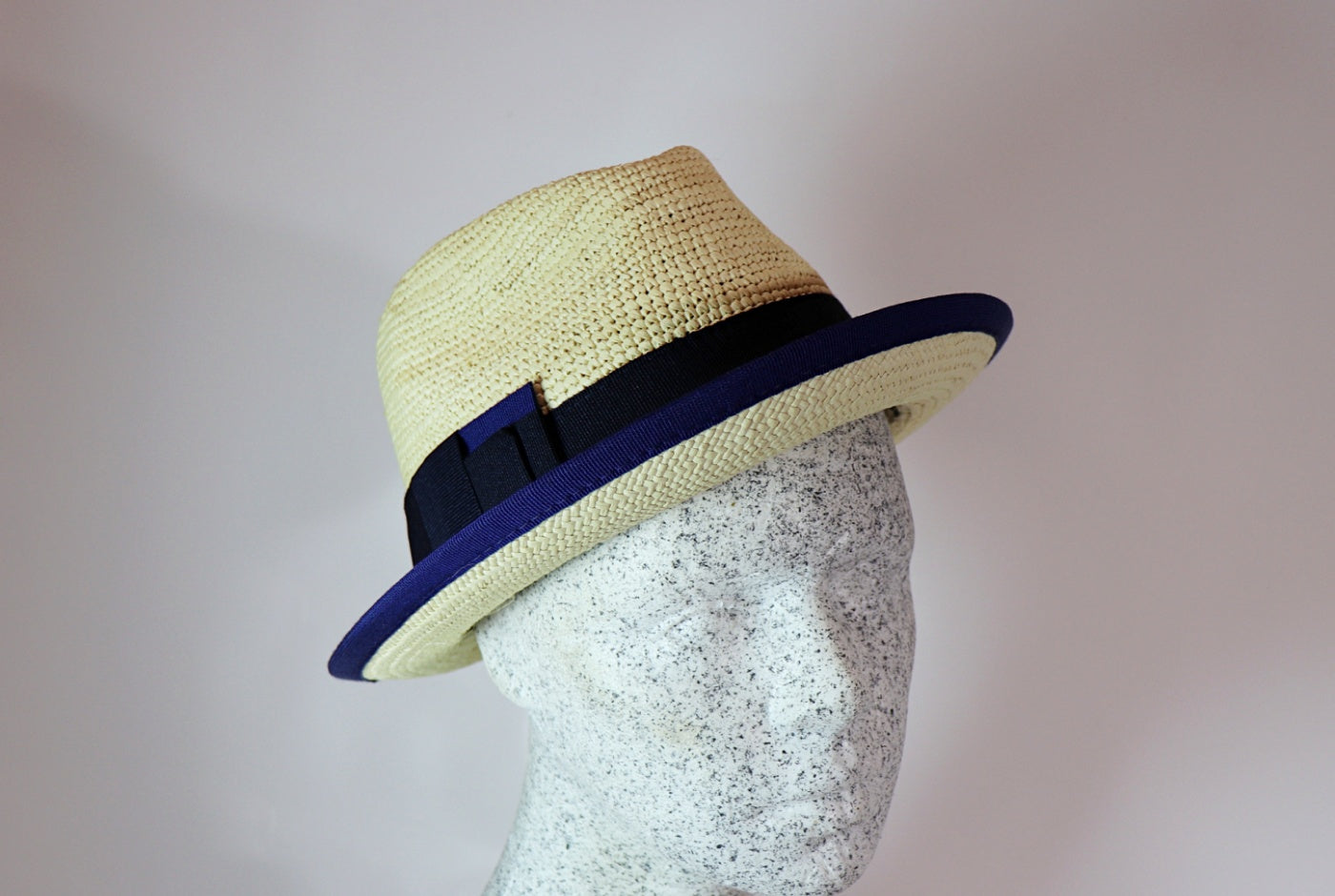 Panama trilby with blue ribbon