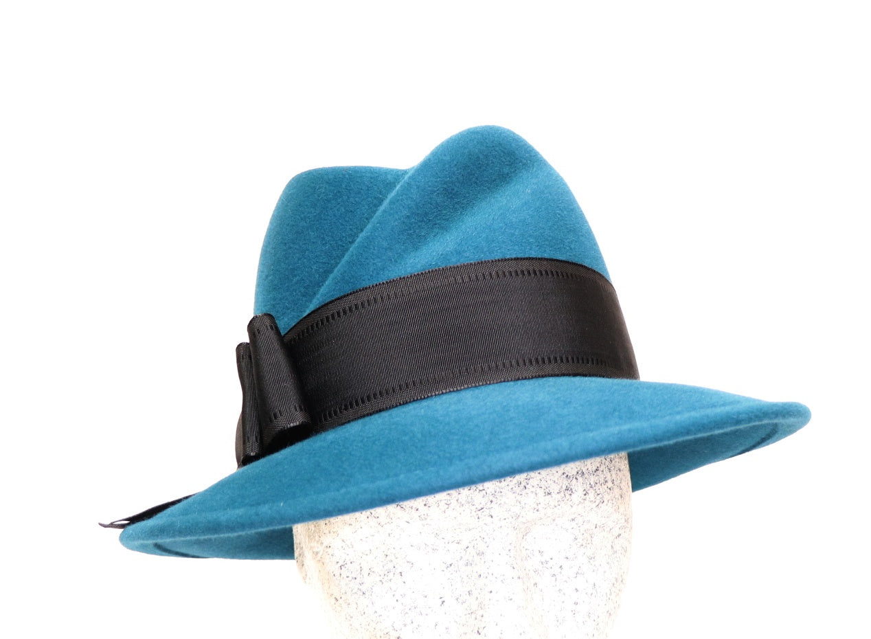 garniert mit einem schwarzen Ripsband und seitlicher Schleife
