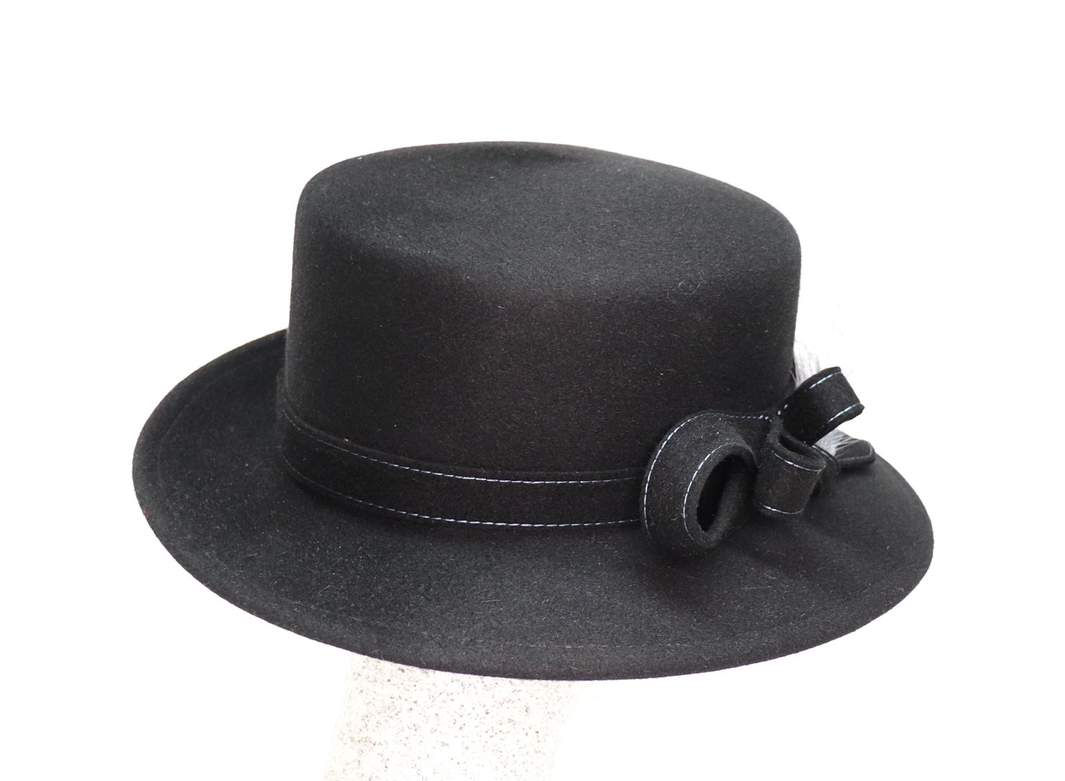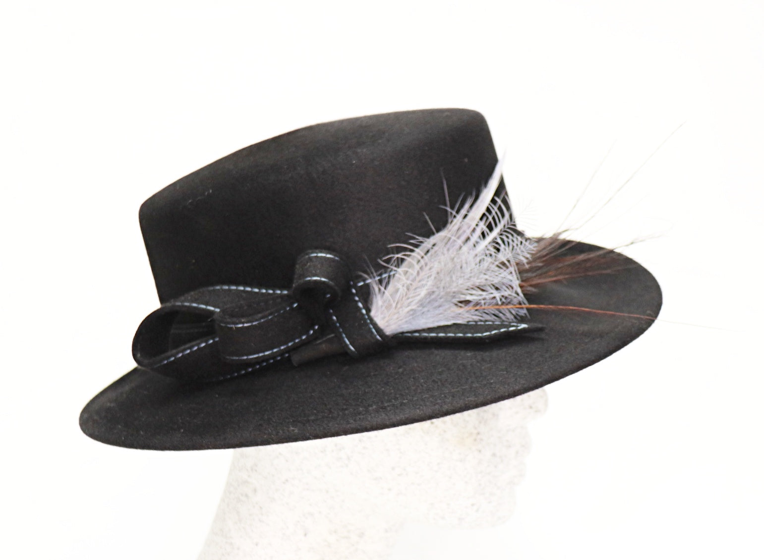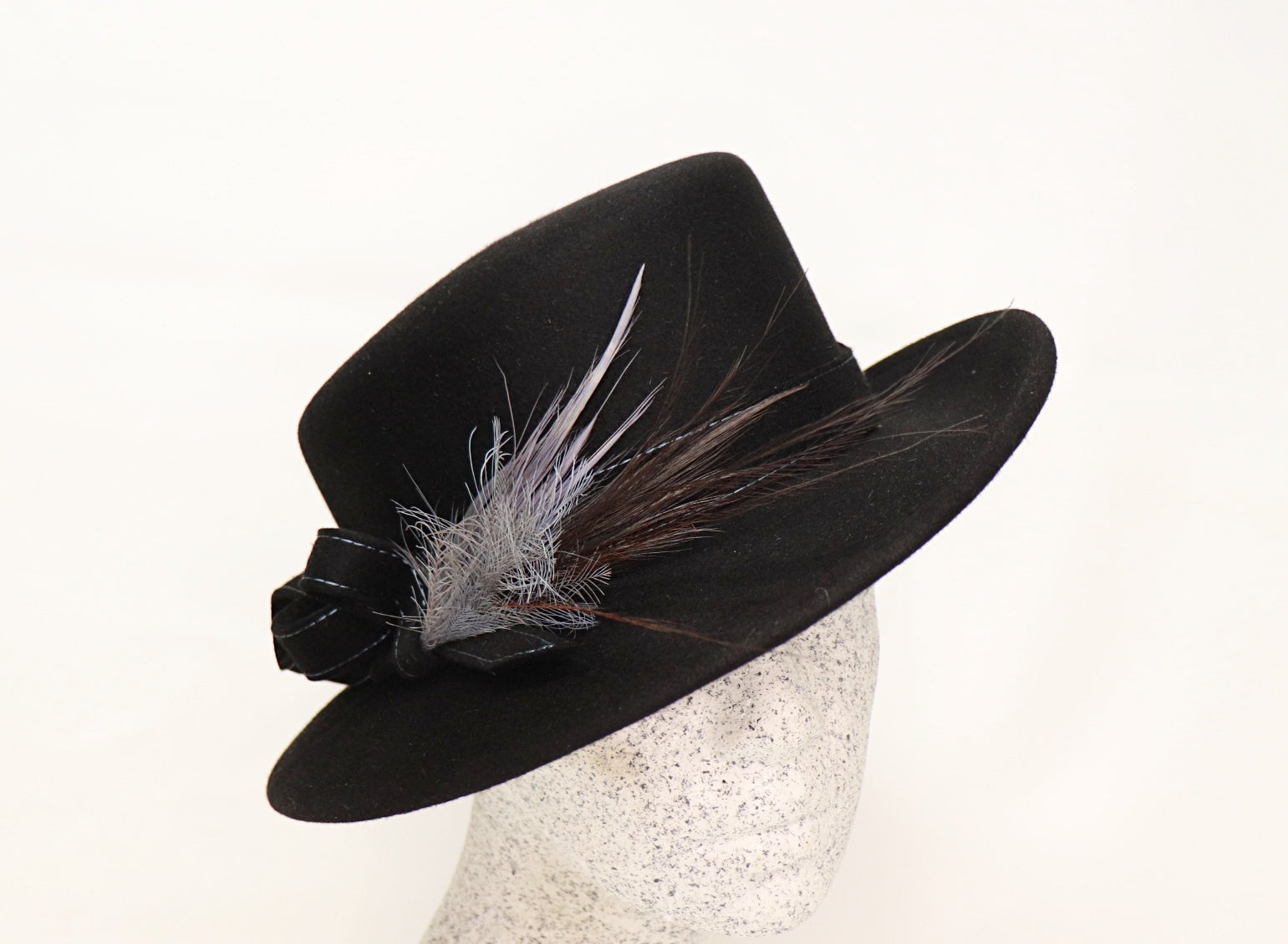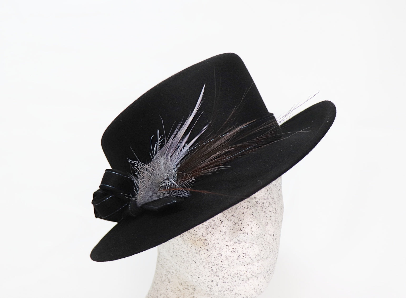 schwarzer Filzhut mit schrägem Rand und Kopf