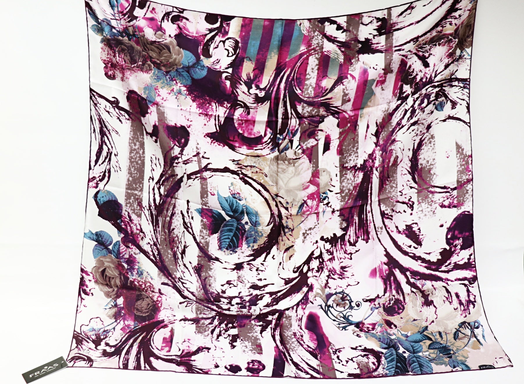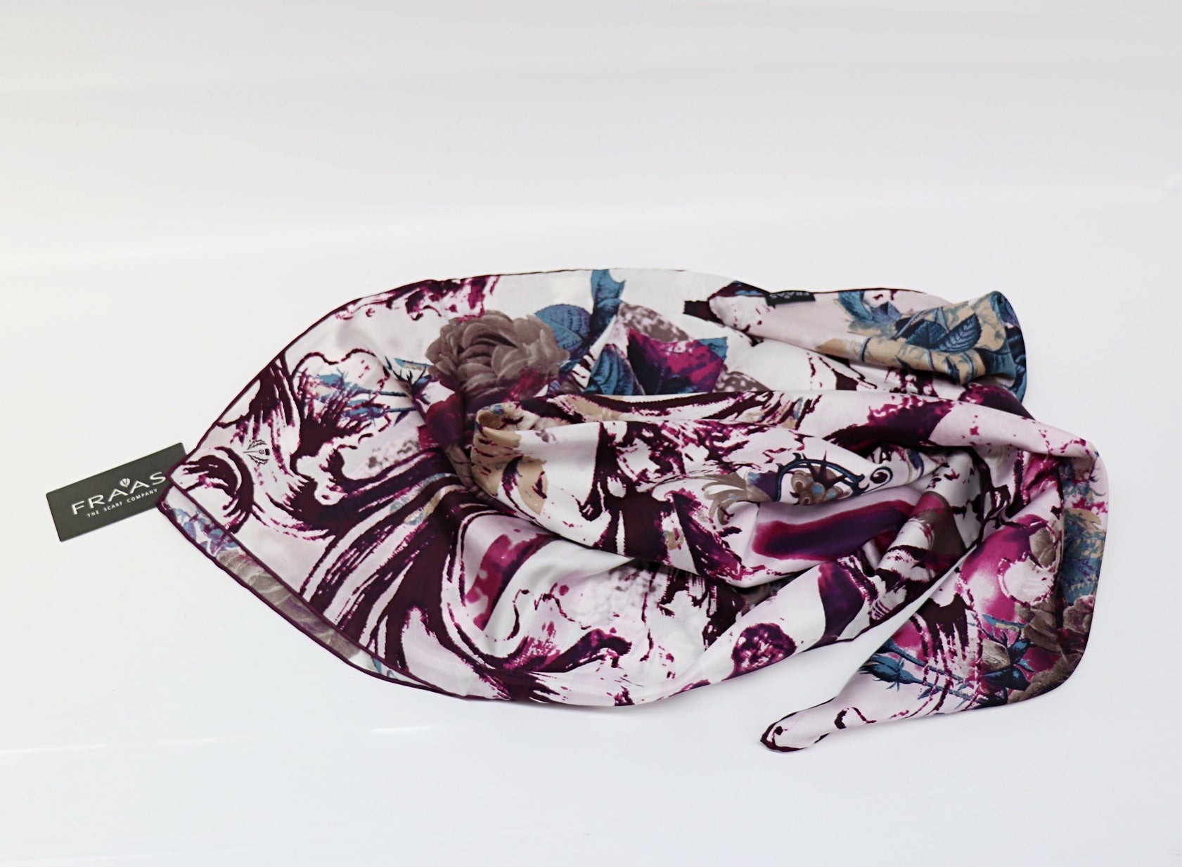 large silk scarf with modern aubergine roses