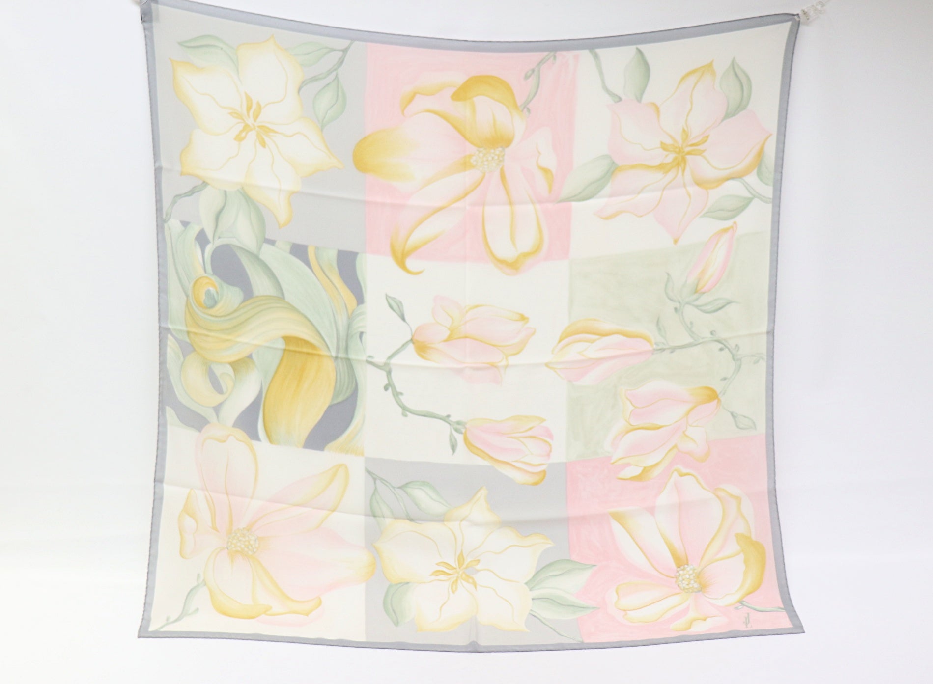 Silk scarf with pastel magnolias