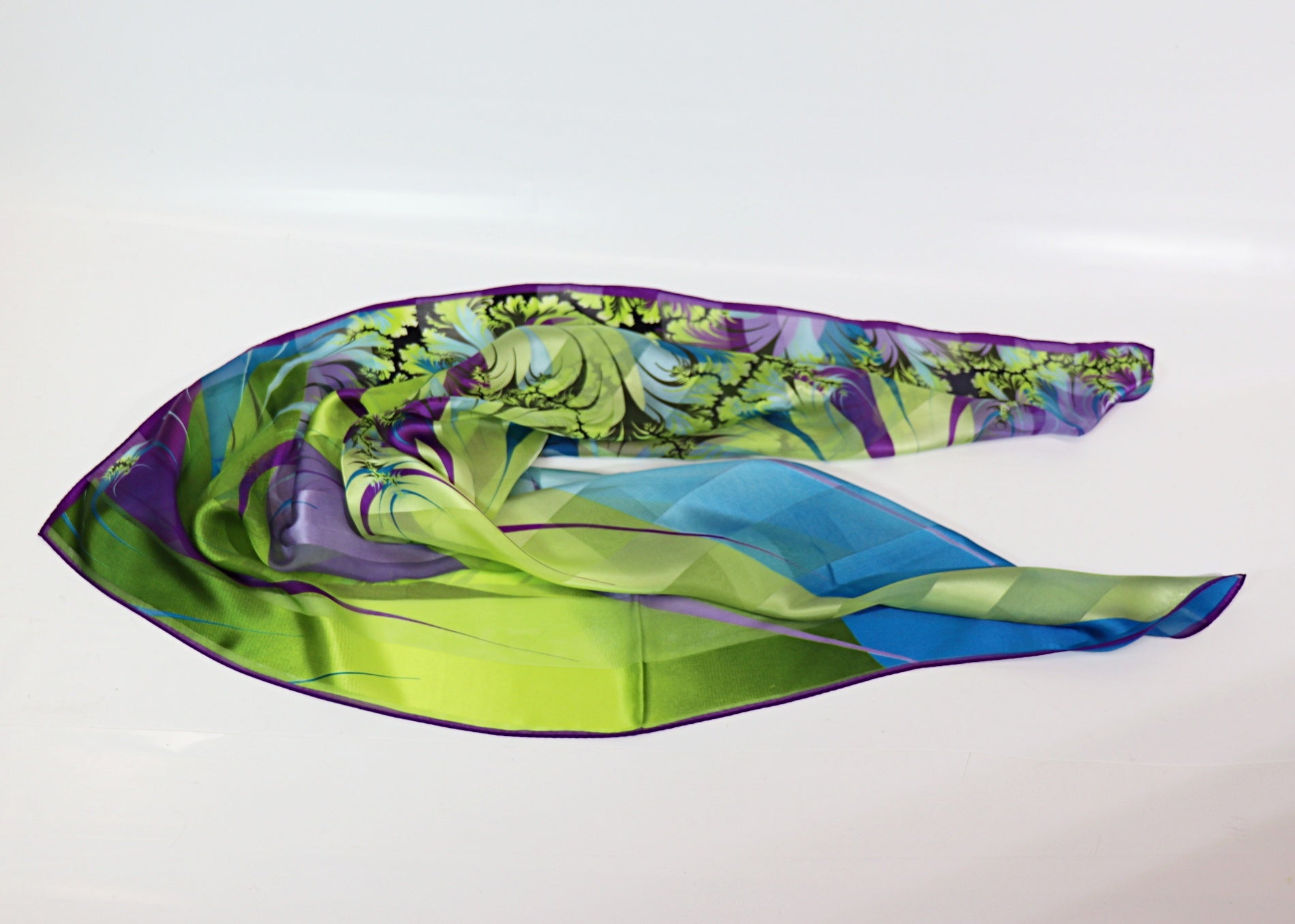 Silk scarf fashionable patterned in kiwi - purple - royal
