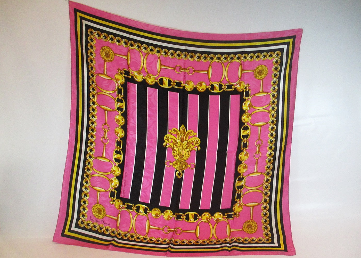 Jacquard - silk scarf in pink with chain motifs by TRISTANO ONOFRI