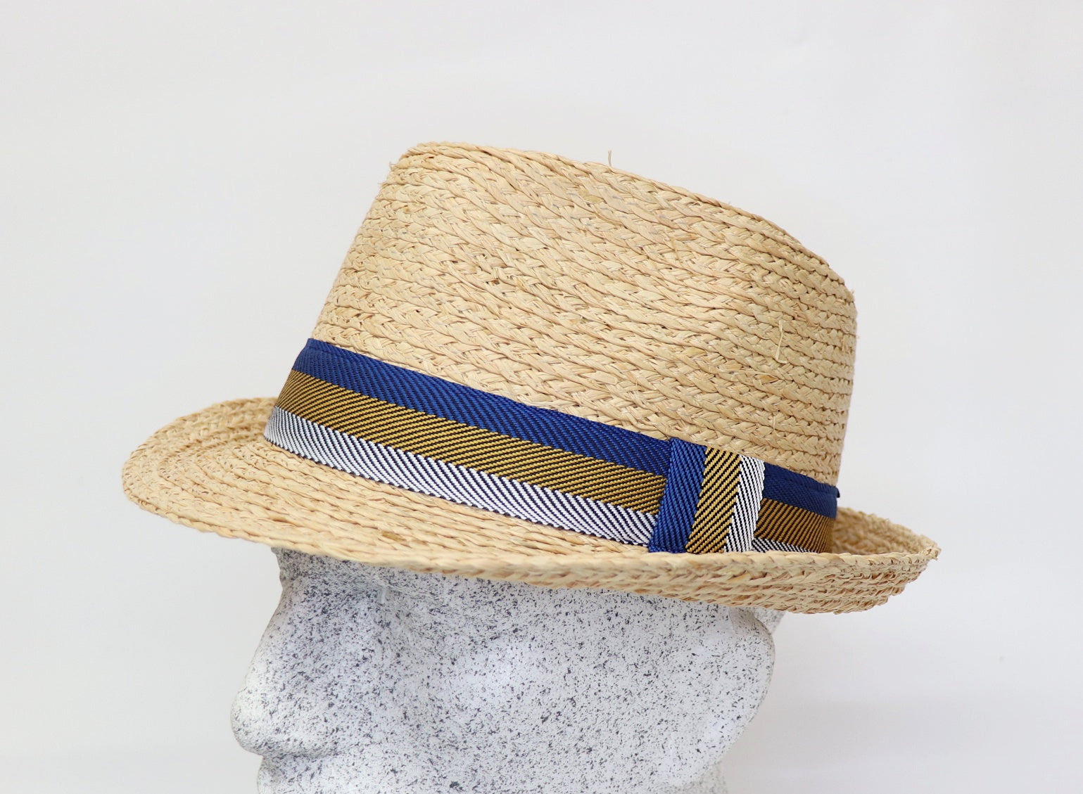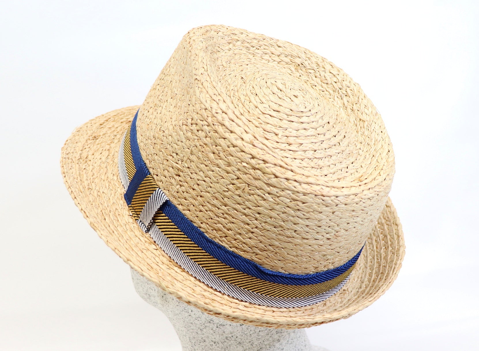 kleiner modischer Herrenstrohhut aus Raffia - Bortenstroh