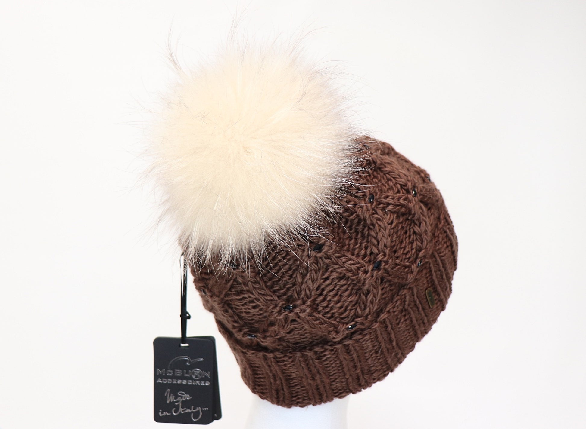 Hand wash with wool detergent - brush the fur pompom with a wire brush after drying