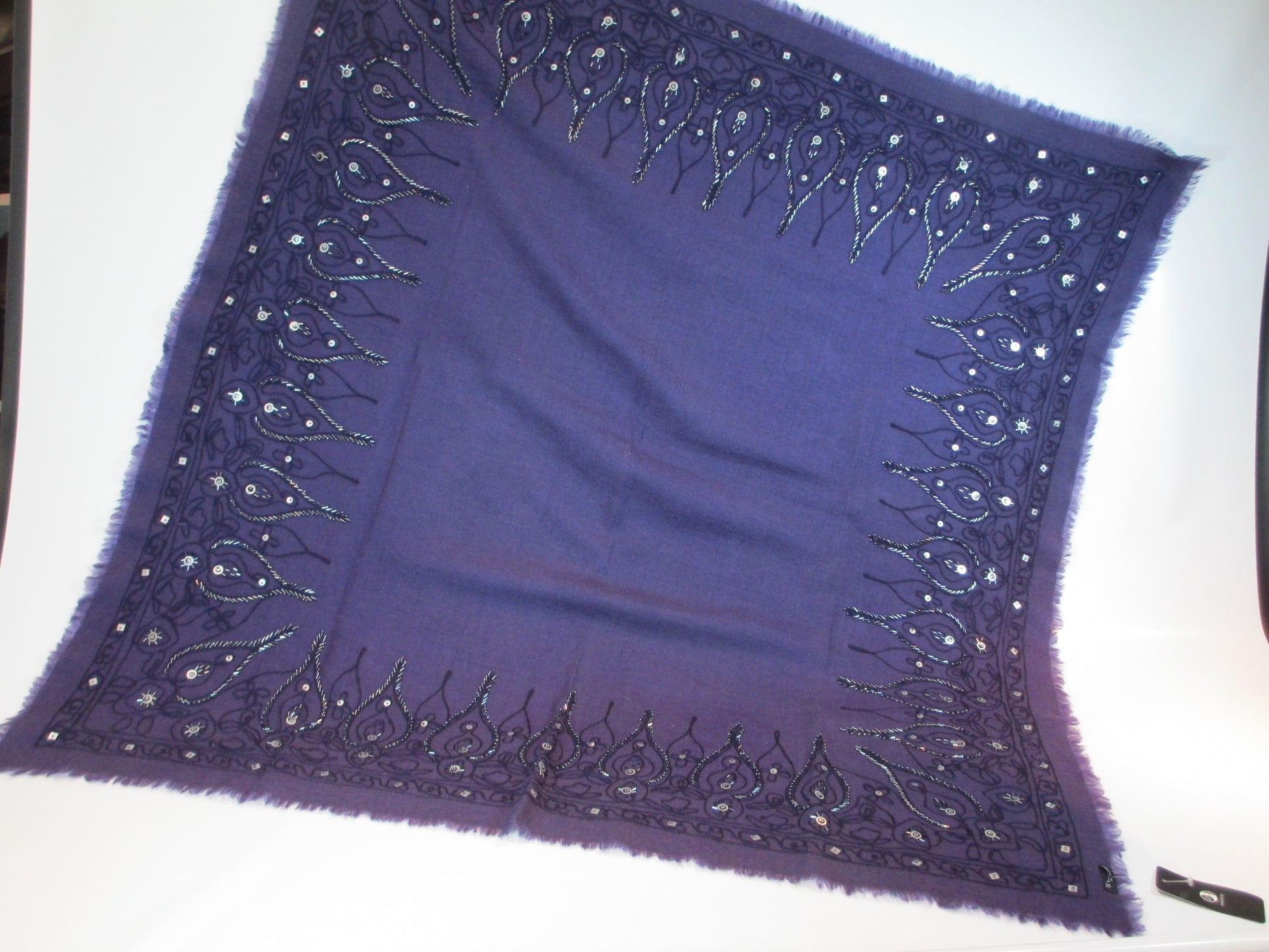 Wool cloth hand embroidered in purple