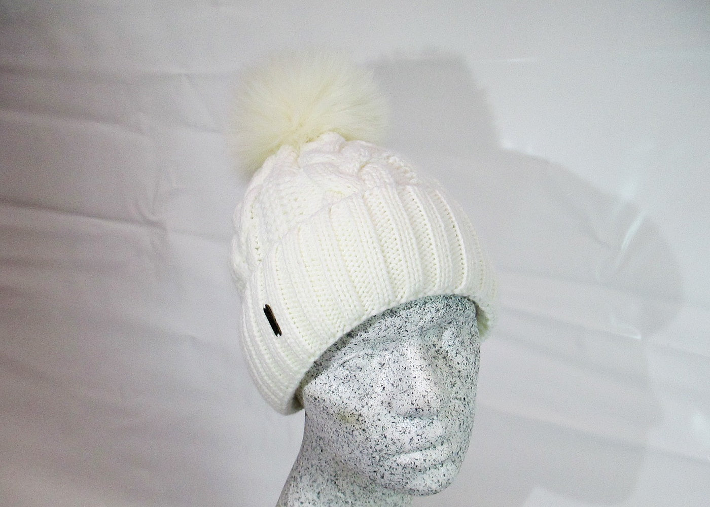 classic braided hat with turn-up and a noble fox pompom - lined with fleece inside