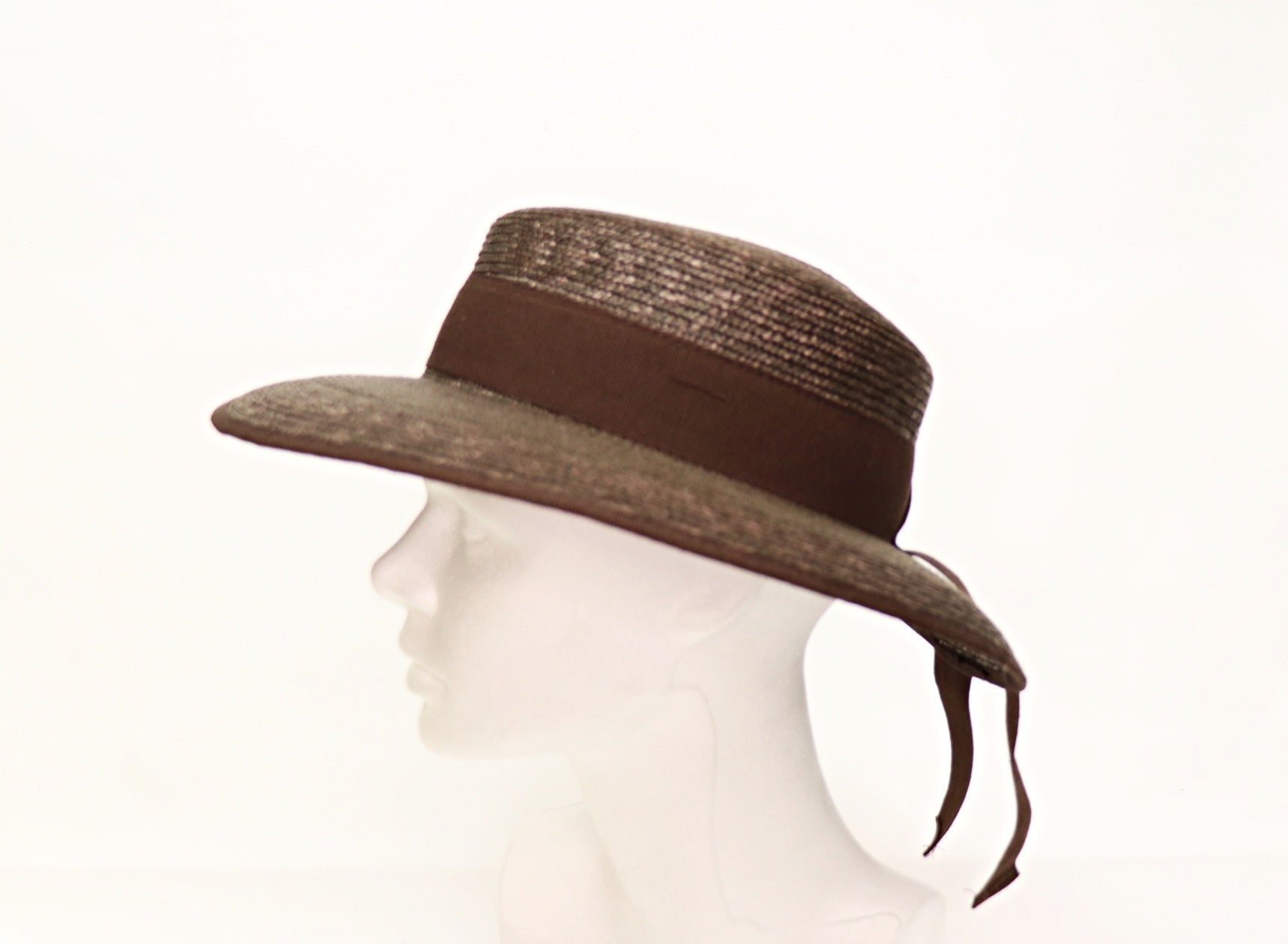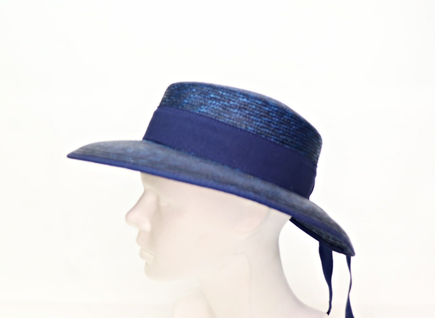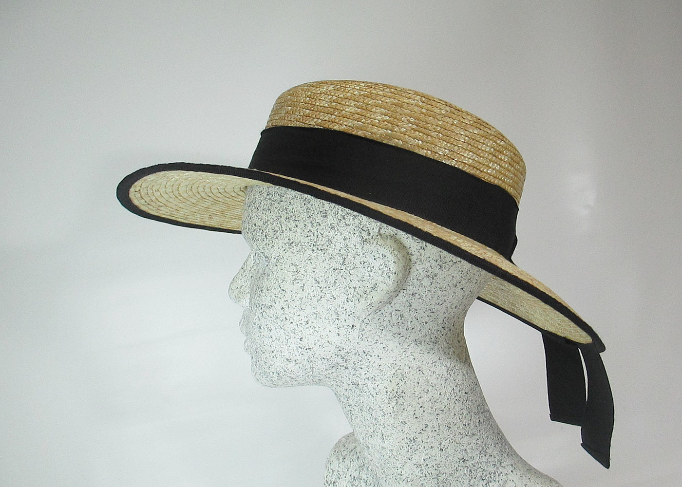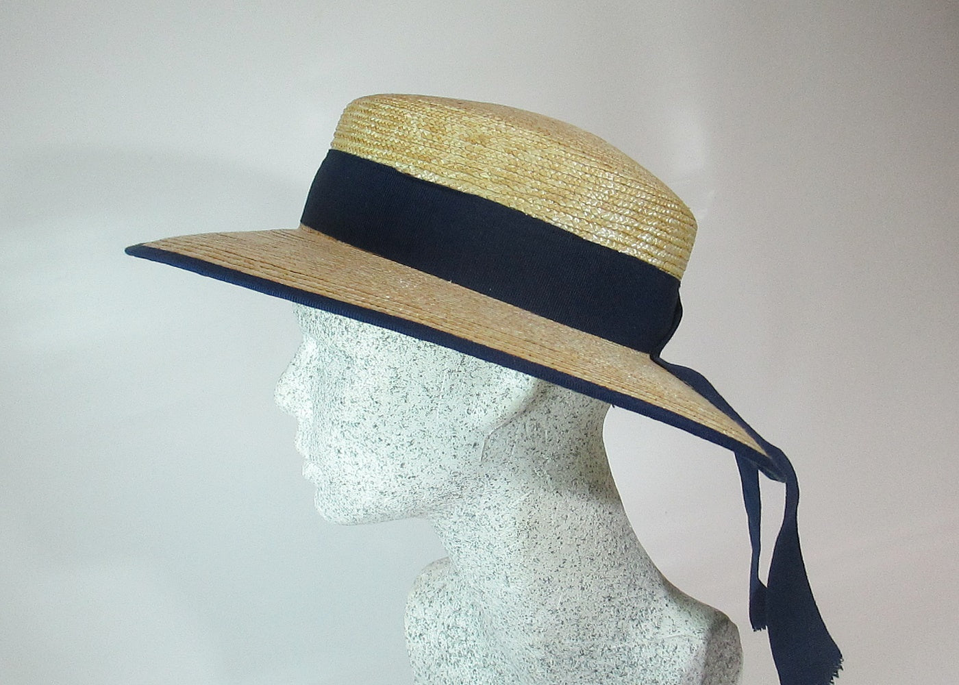 Strohhut in klassischer Matelot Form - kantiger Kopf und gerader Rand