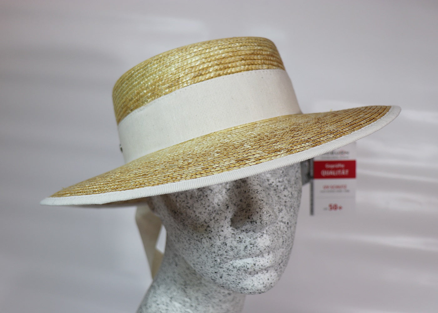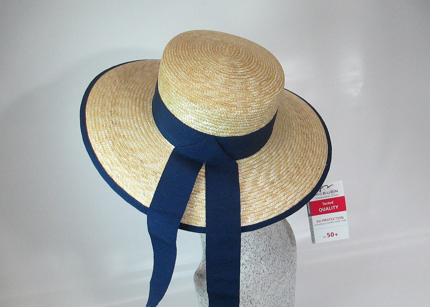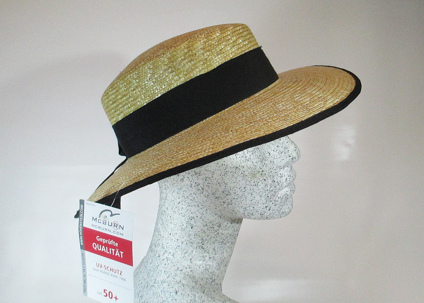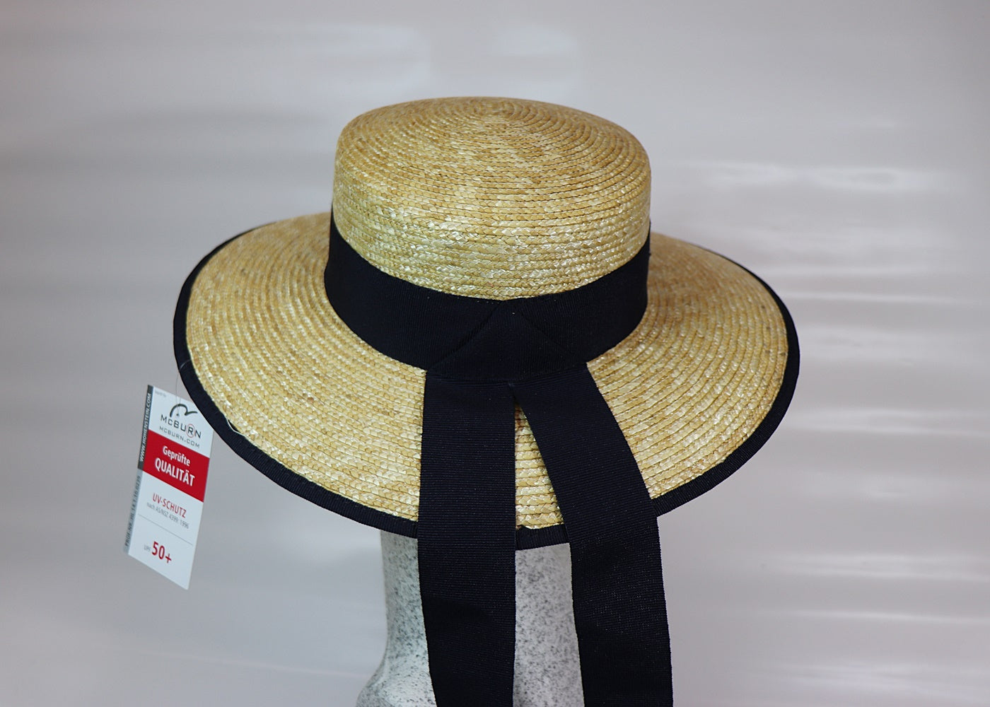 Bortenstrohhut natur in Matelot Form mit Ripsband