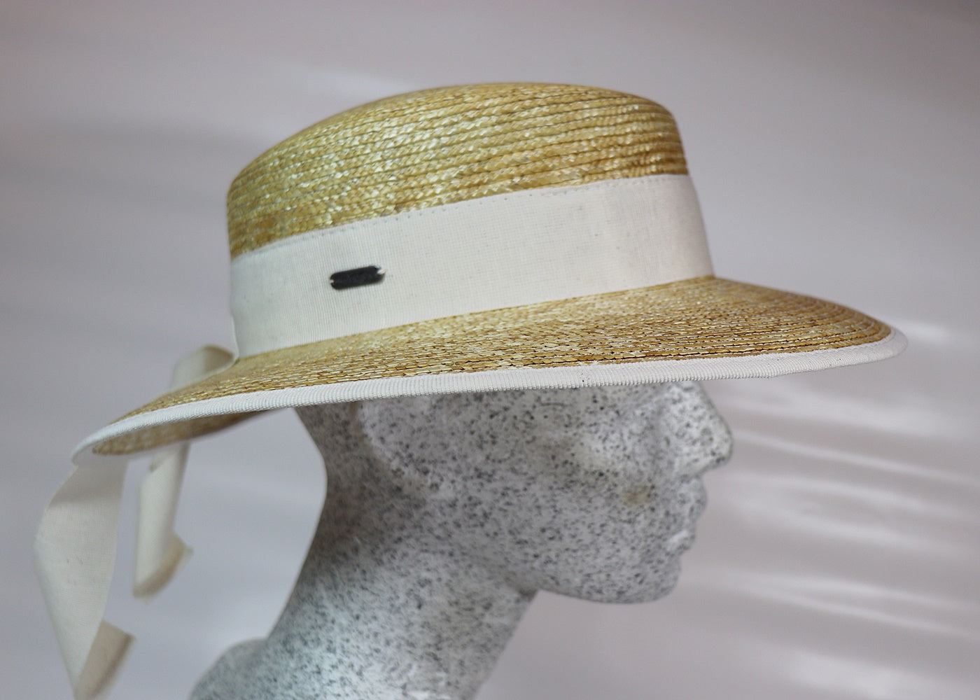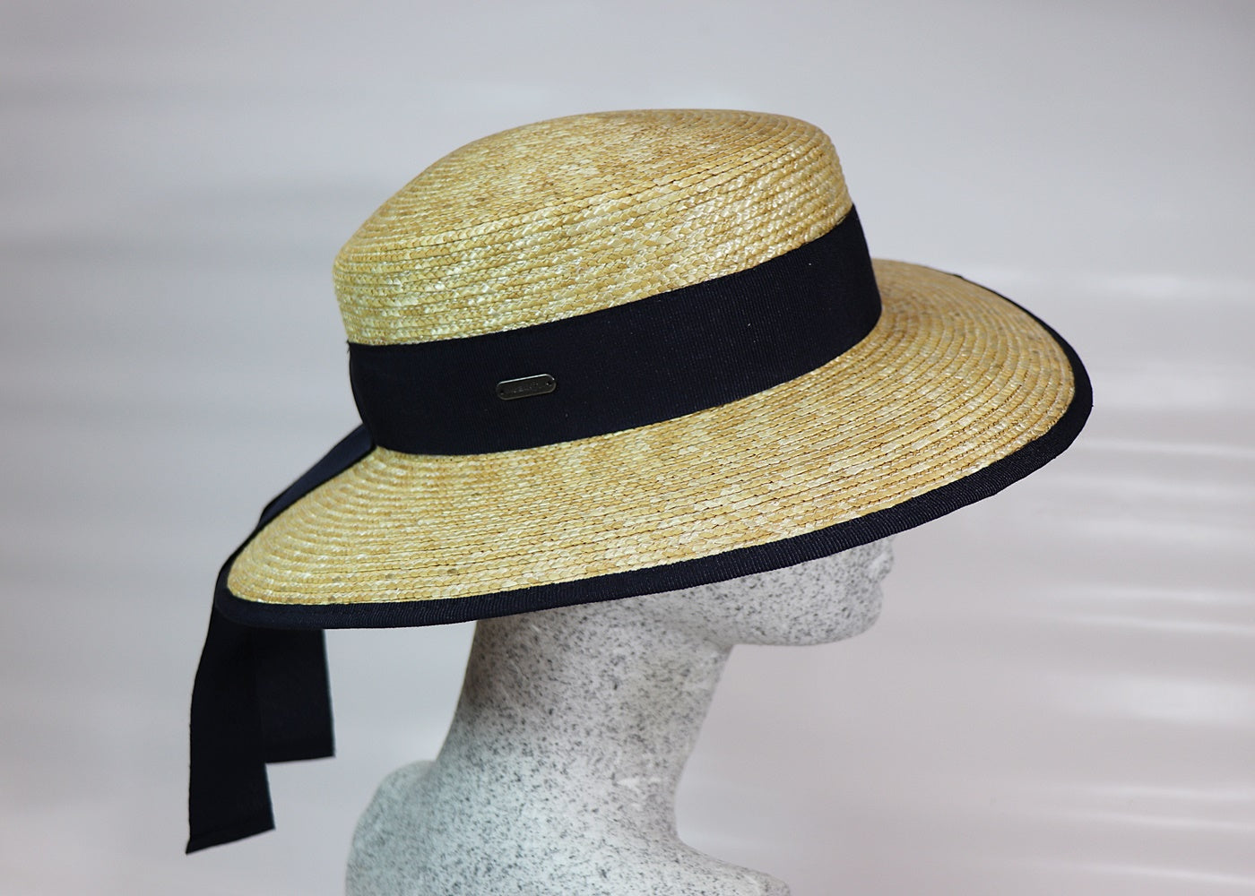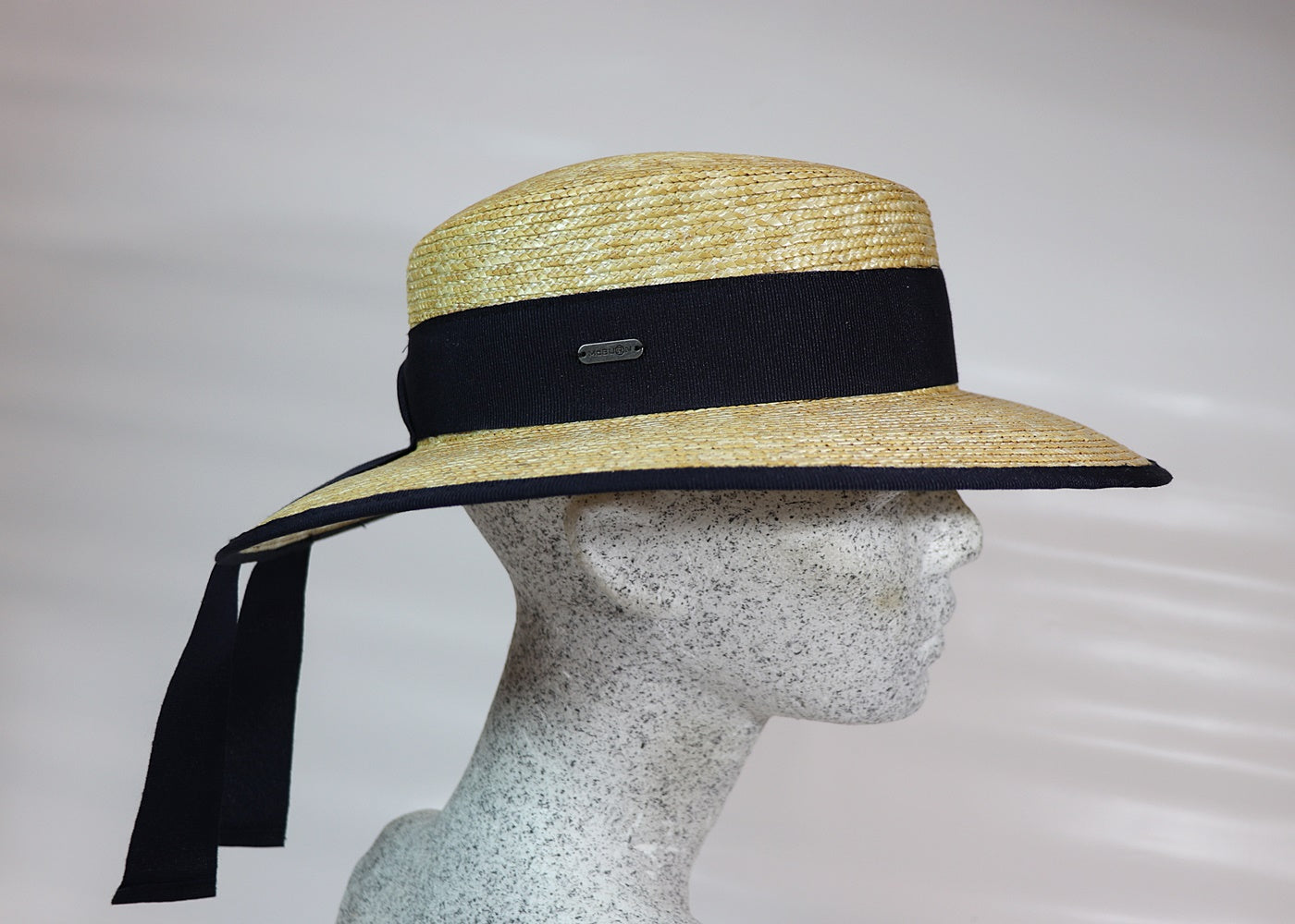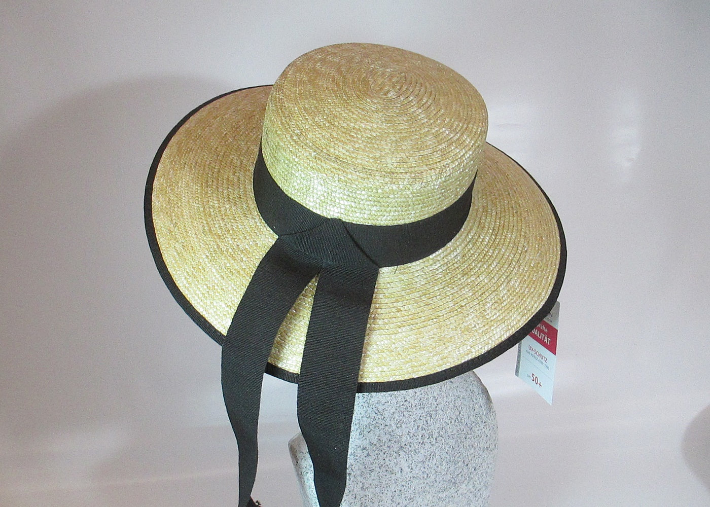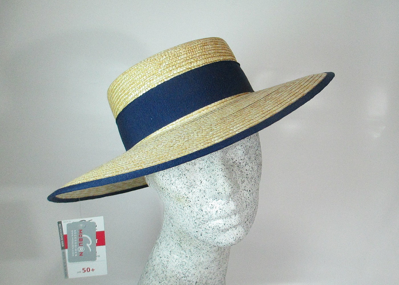 Bortenstrohhut natur in Matelot Form mit Ripsband