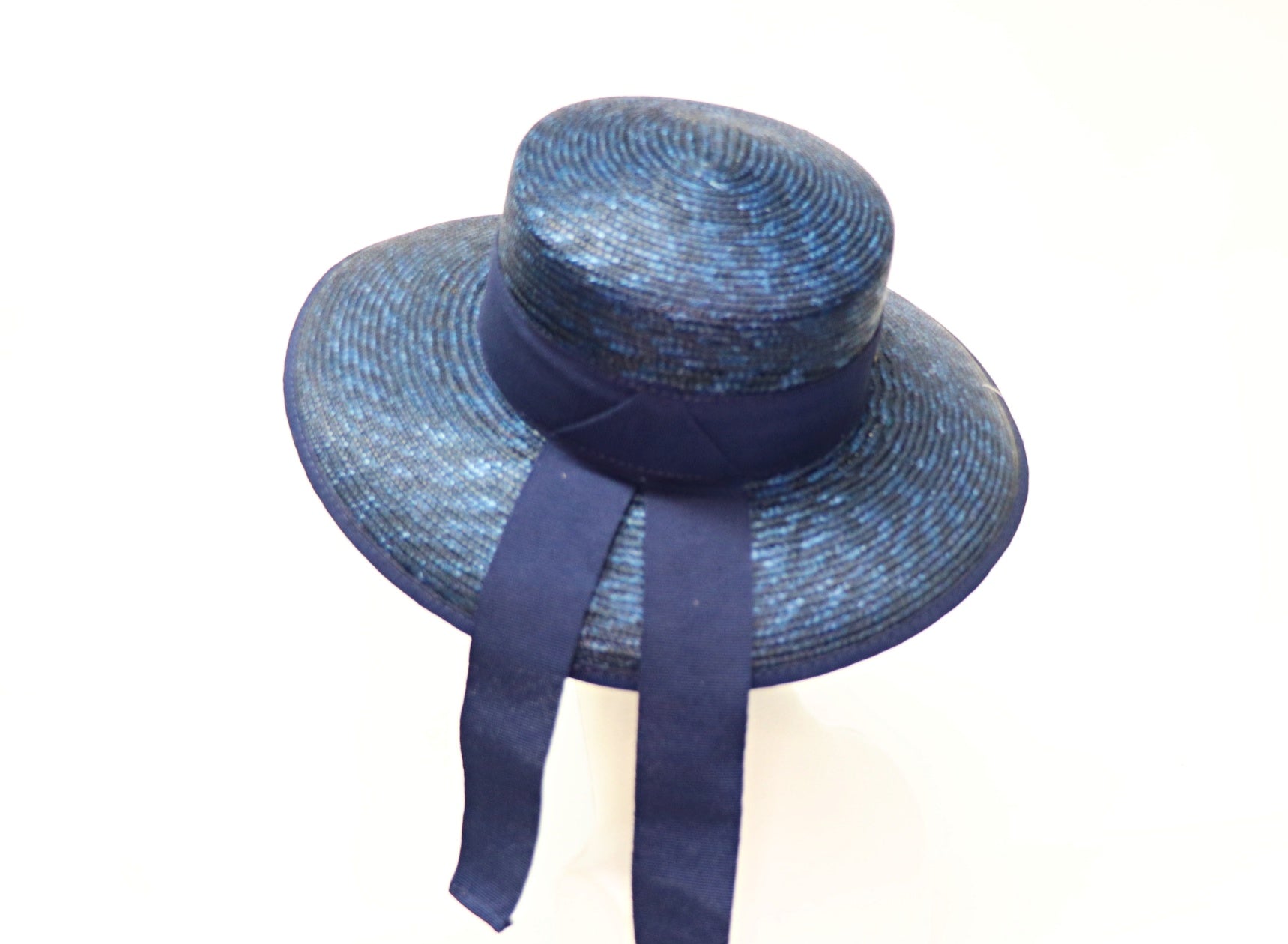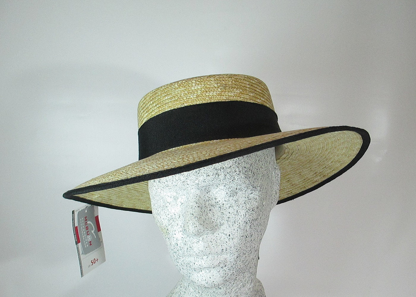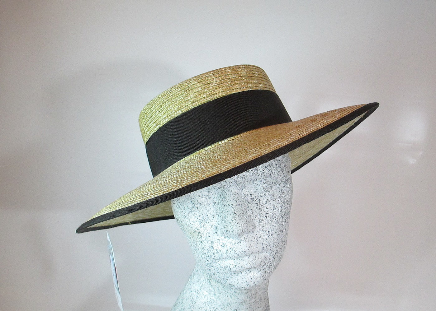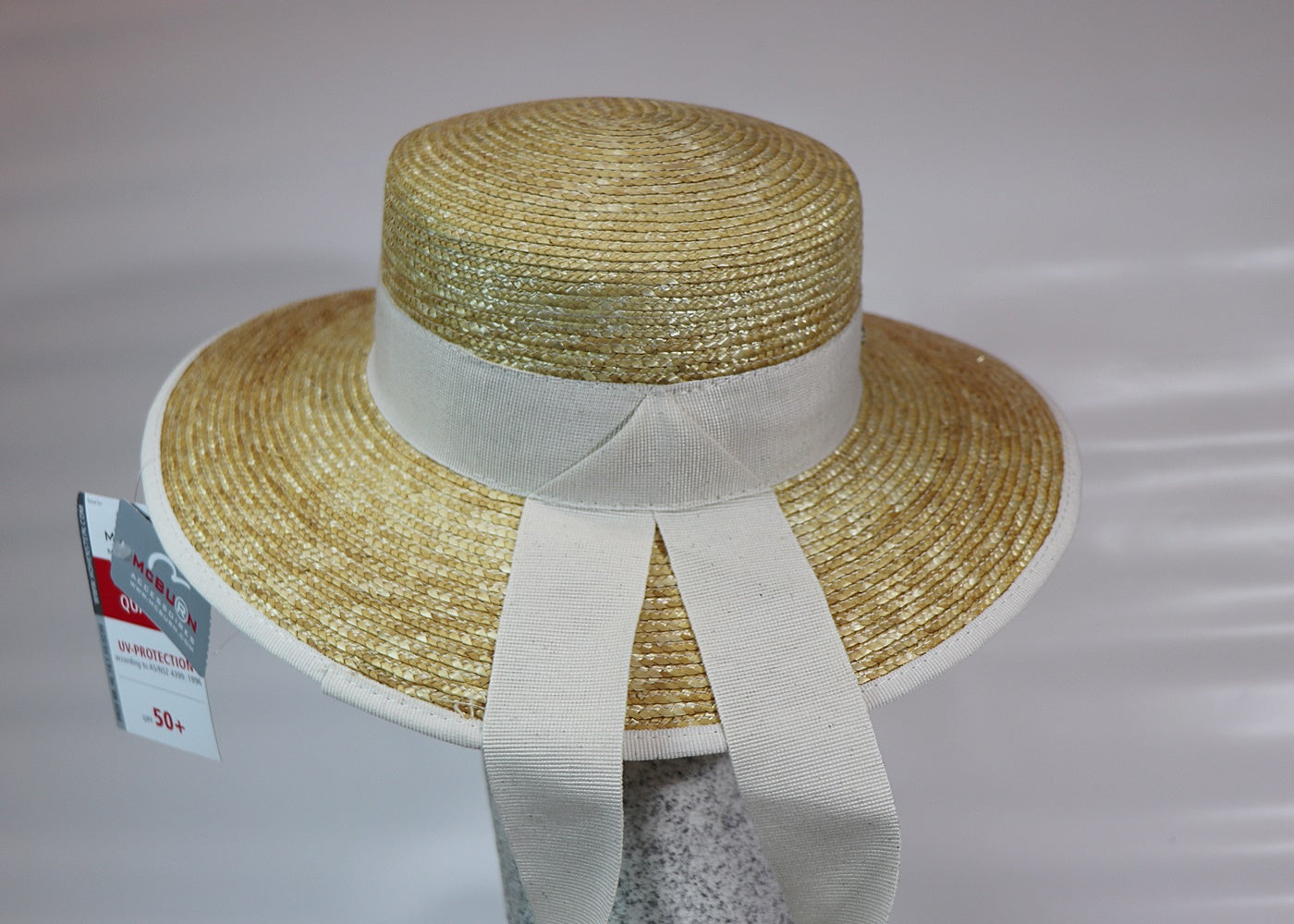 Bortenstrohhut natur in Matelot Form mit Ripsband