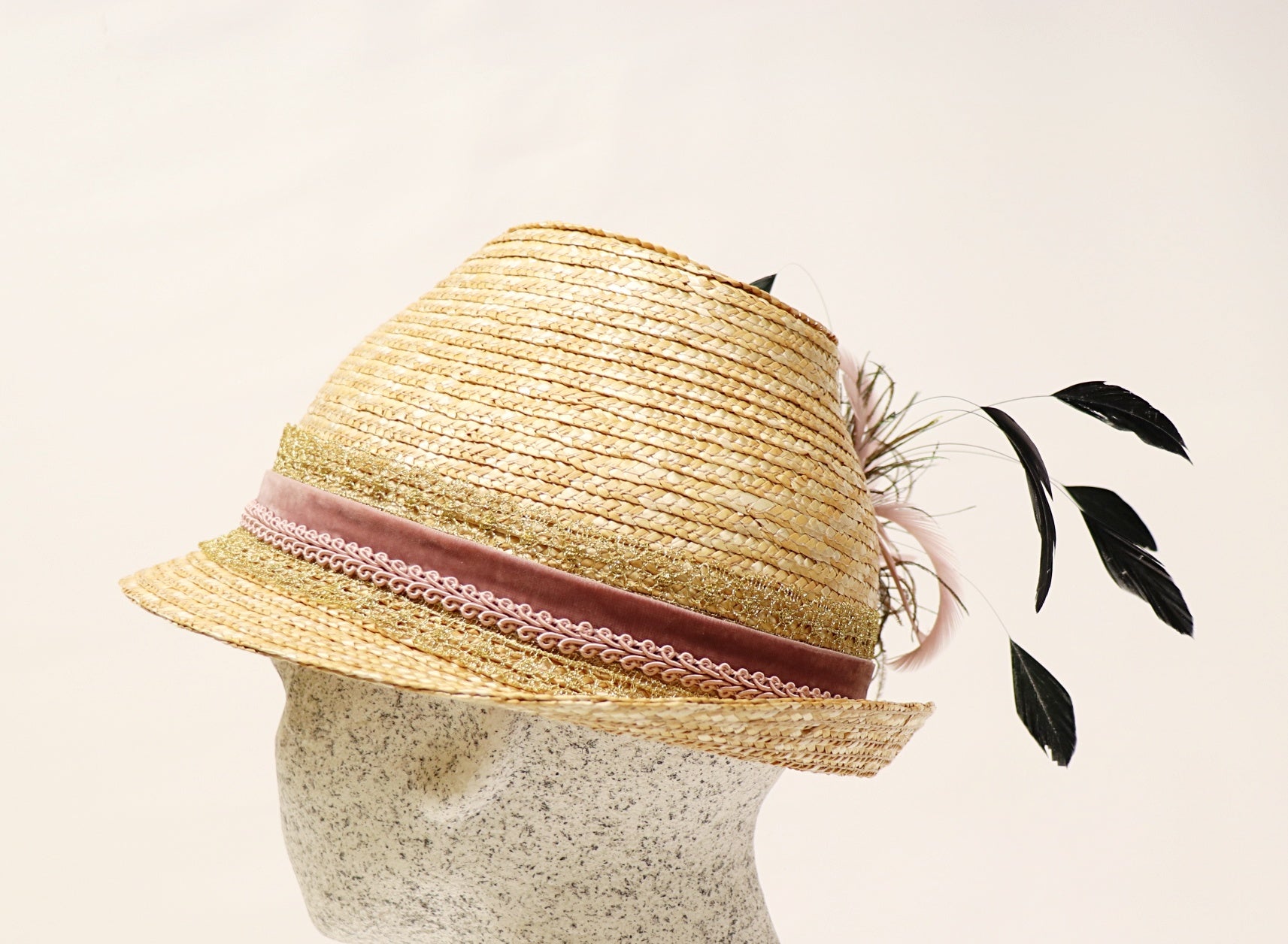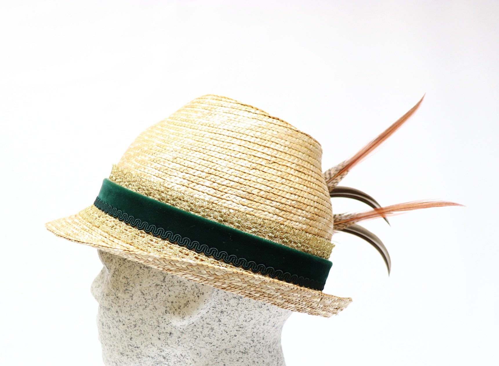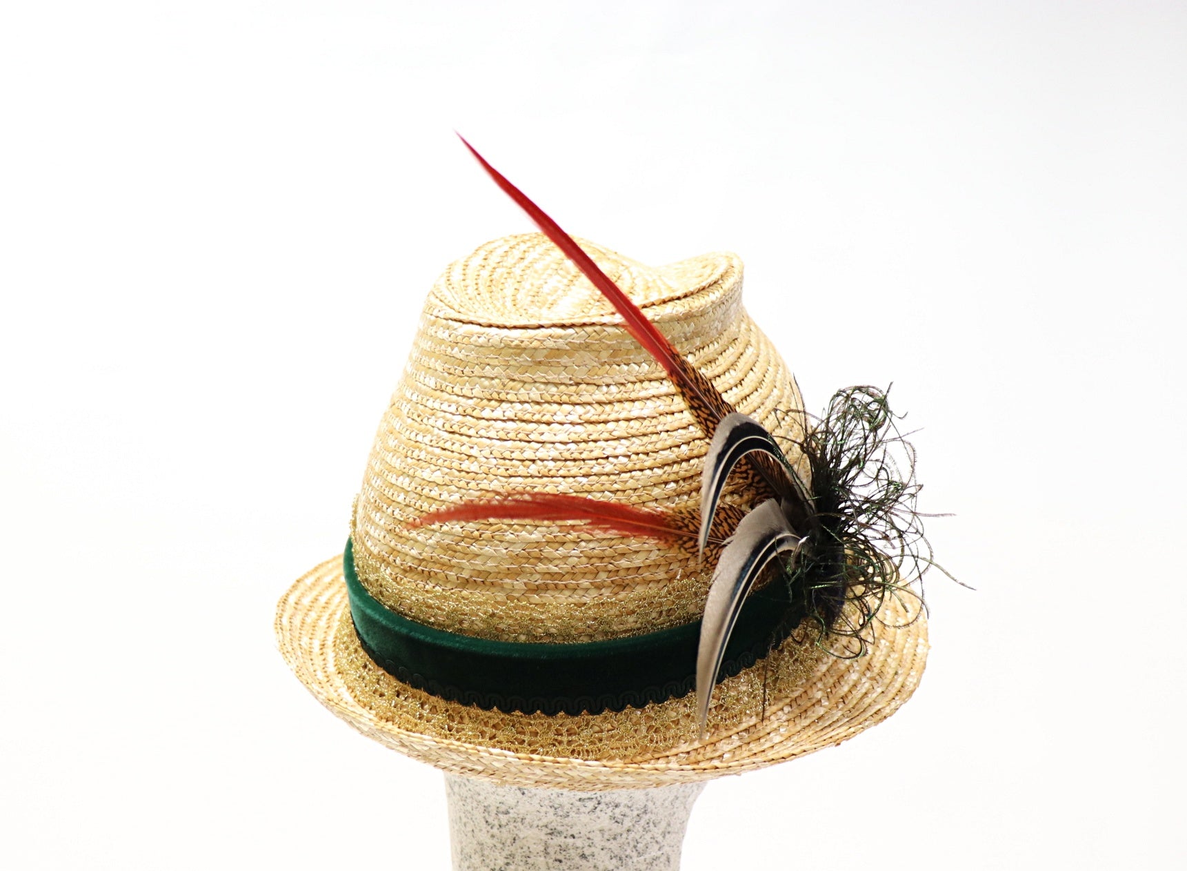 Dirndelhut - Bortenstroh 6er mit Federn
