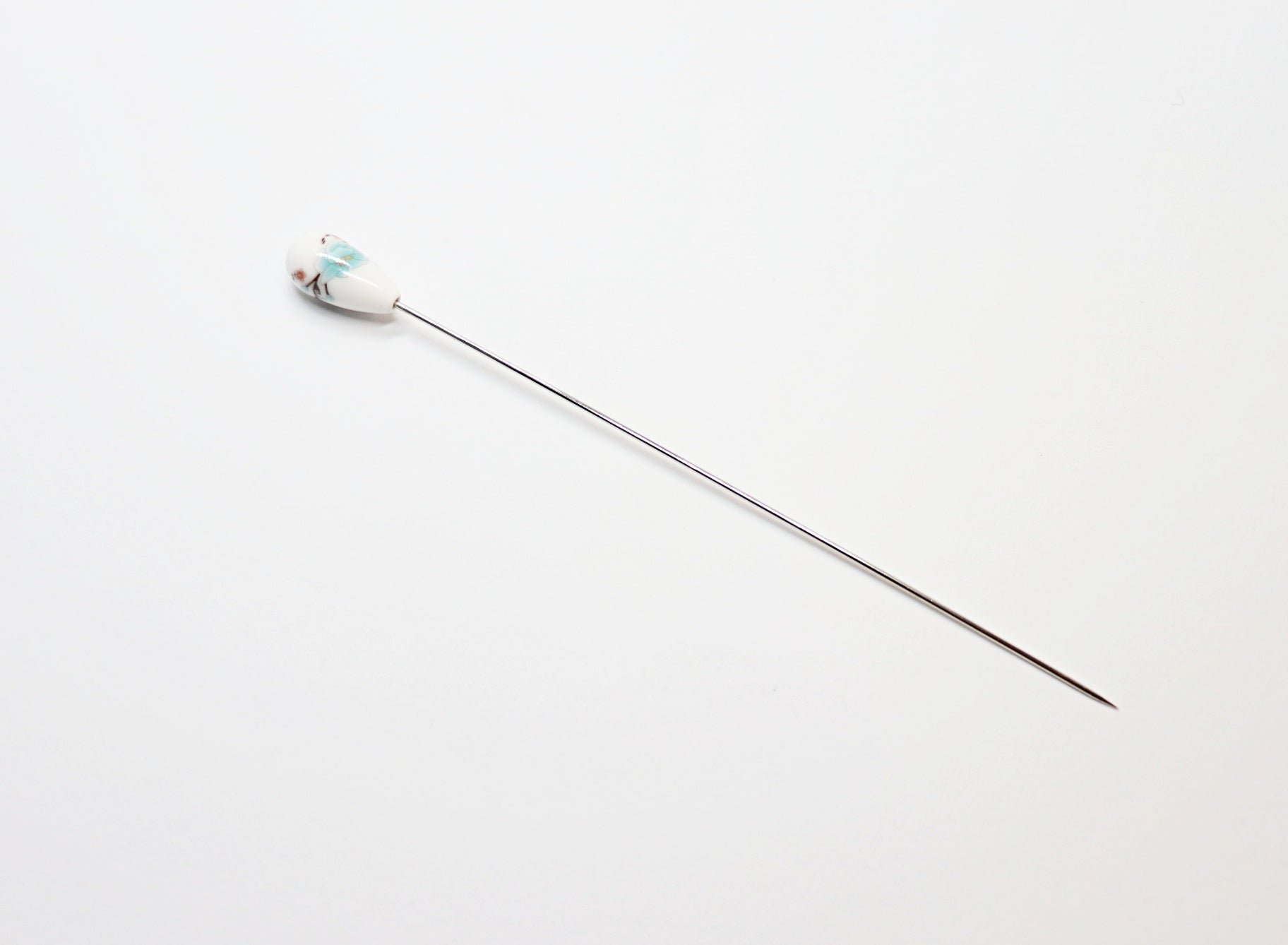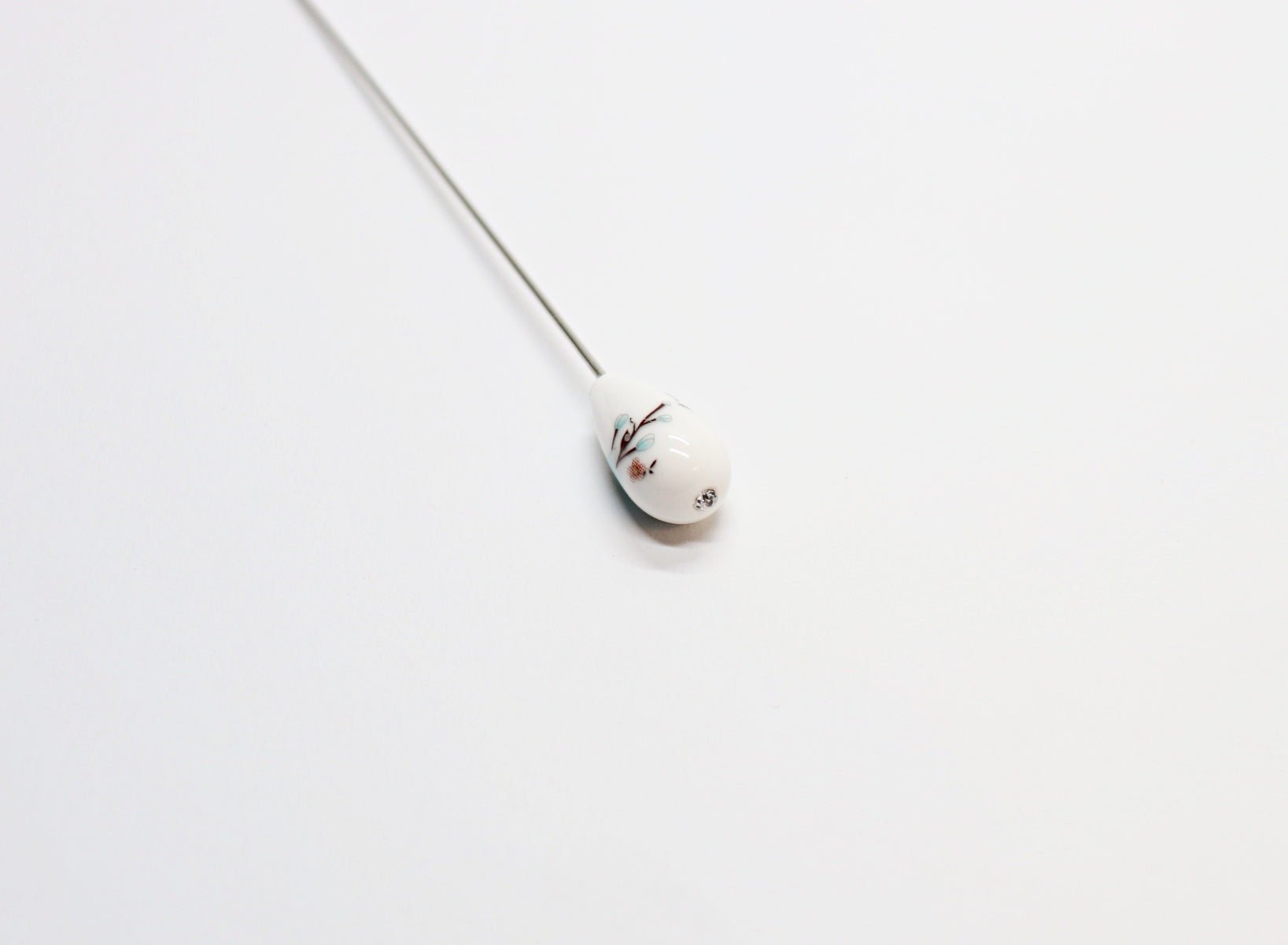 Hutnadel mit einer Tropfenperle aus weißem Porzellan mit feinen Blüten