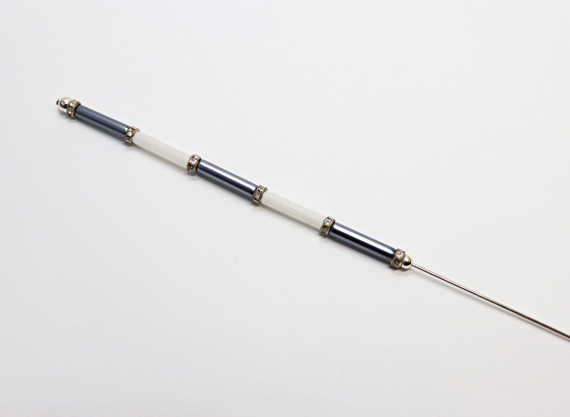 Hutnadel mit Stabperlen und Straß 25 cm lang