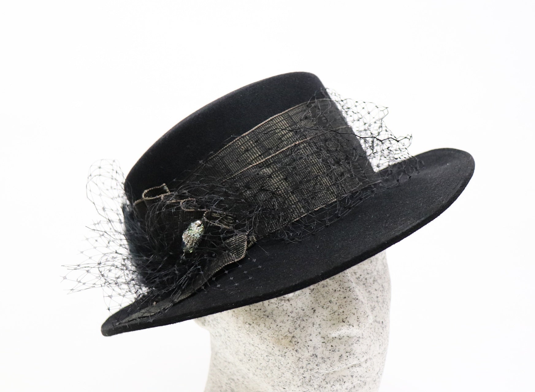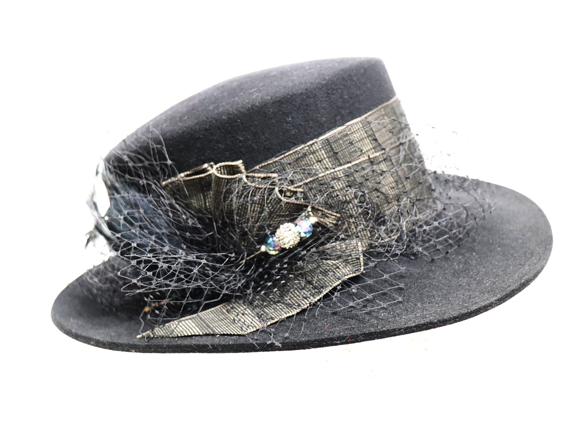 klassischer schwarzer Filzhut mit Tupfenschleier