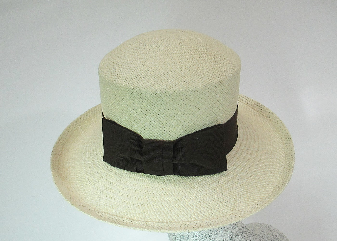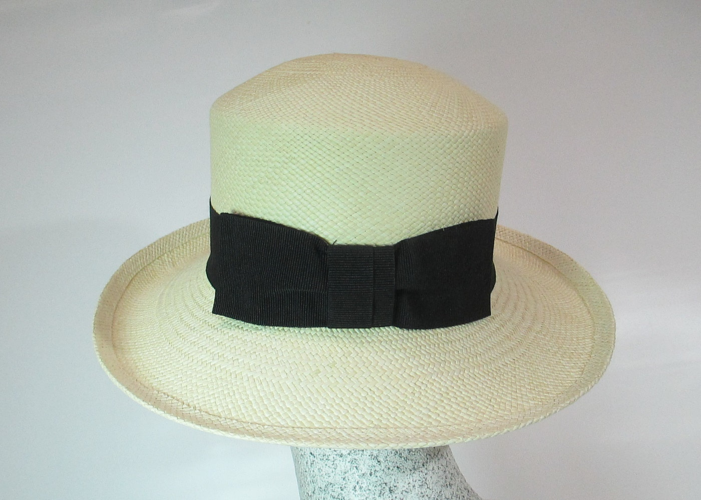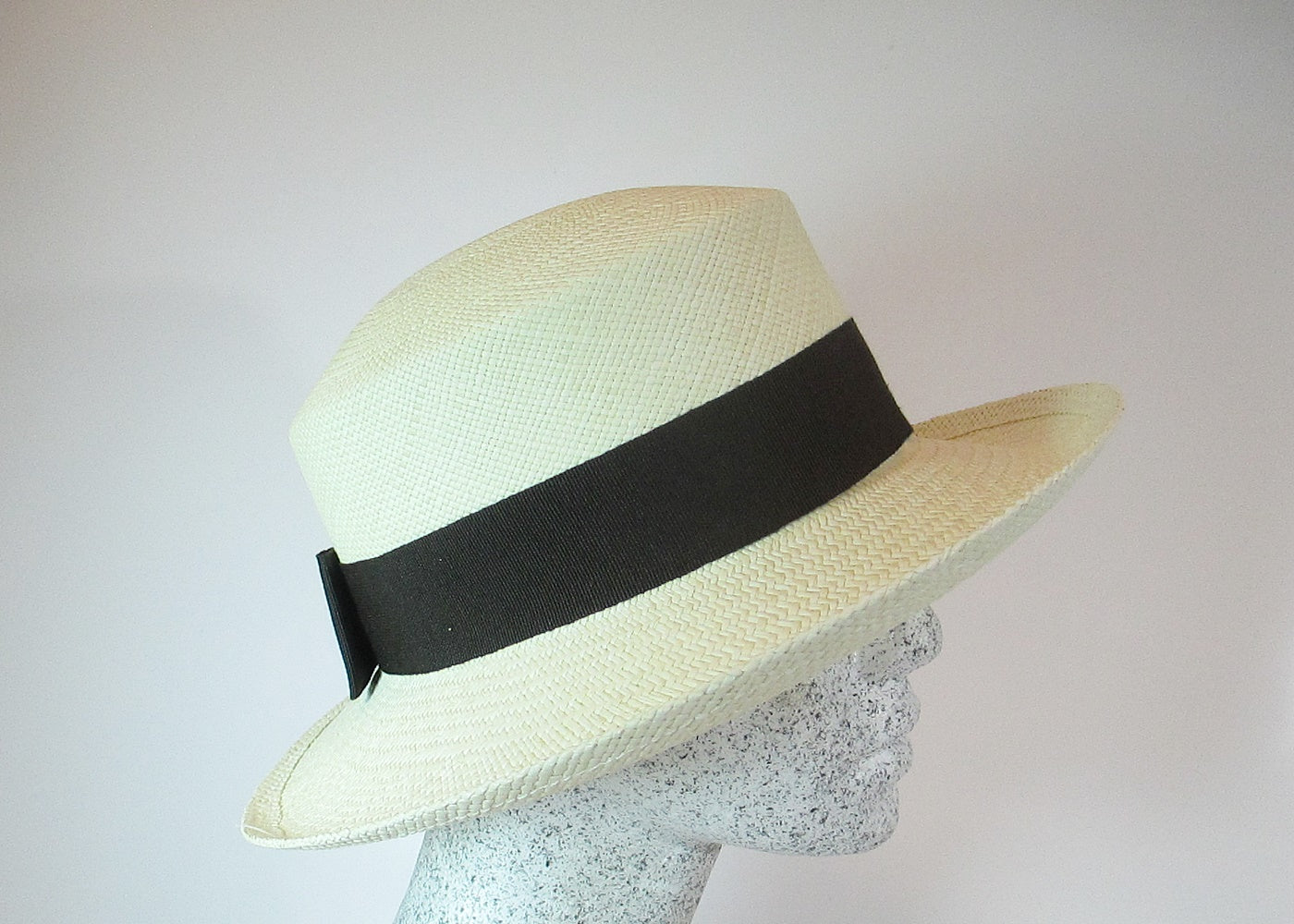 schicker Panama Strohhut mit Aufschlagrand - vorne geht der Rand nach oben