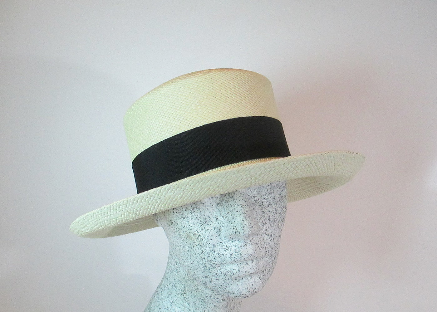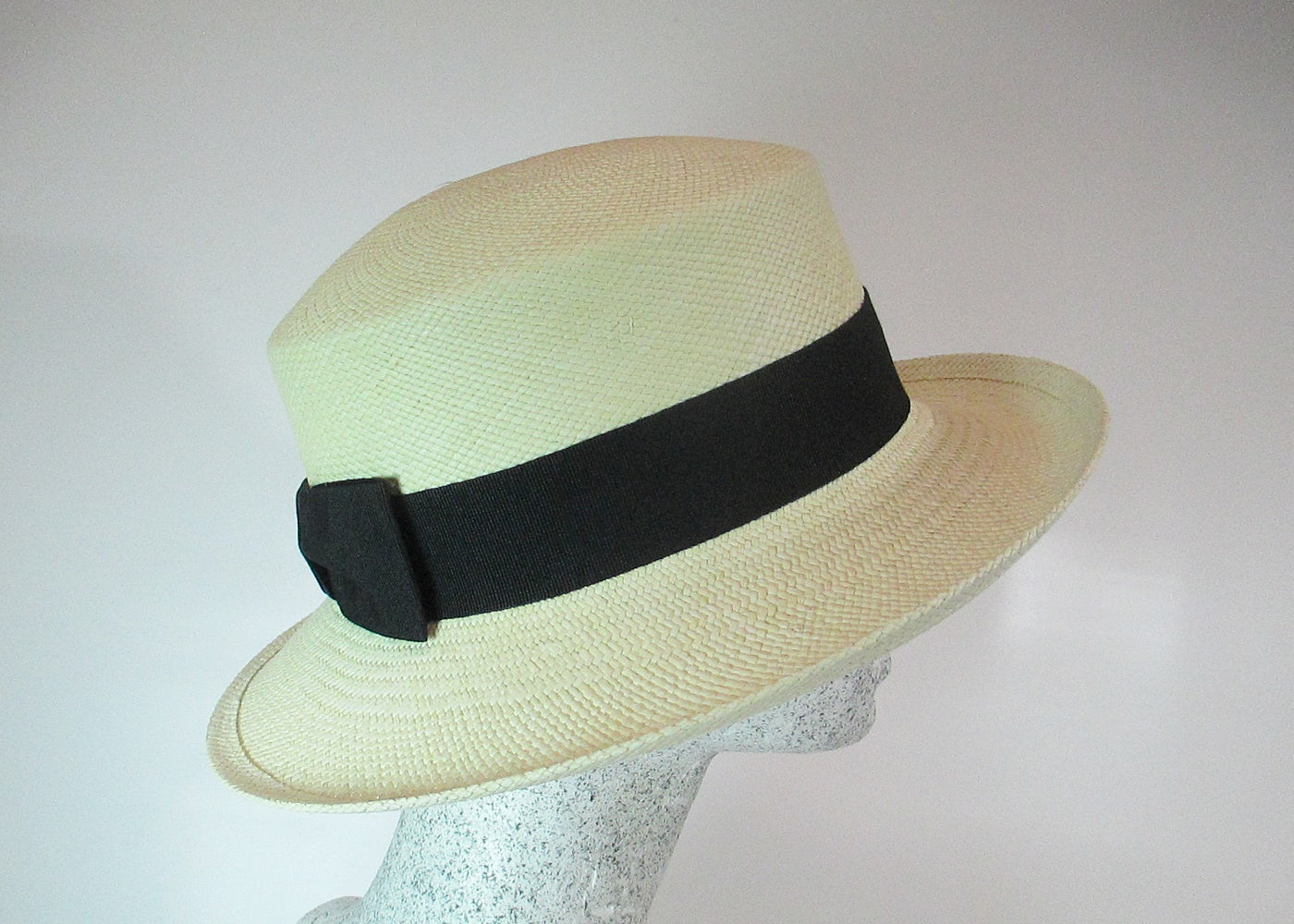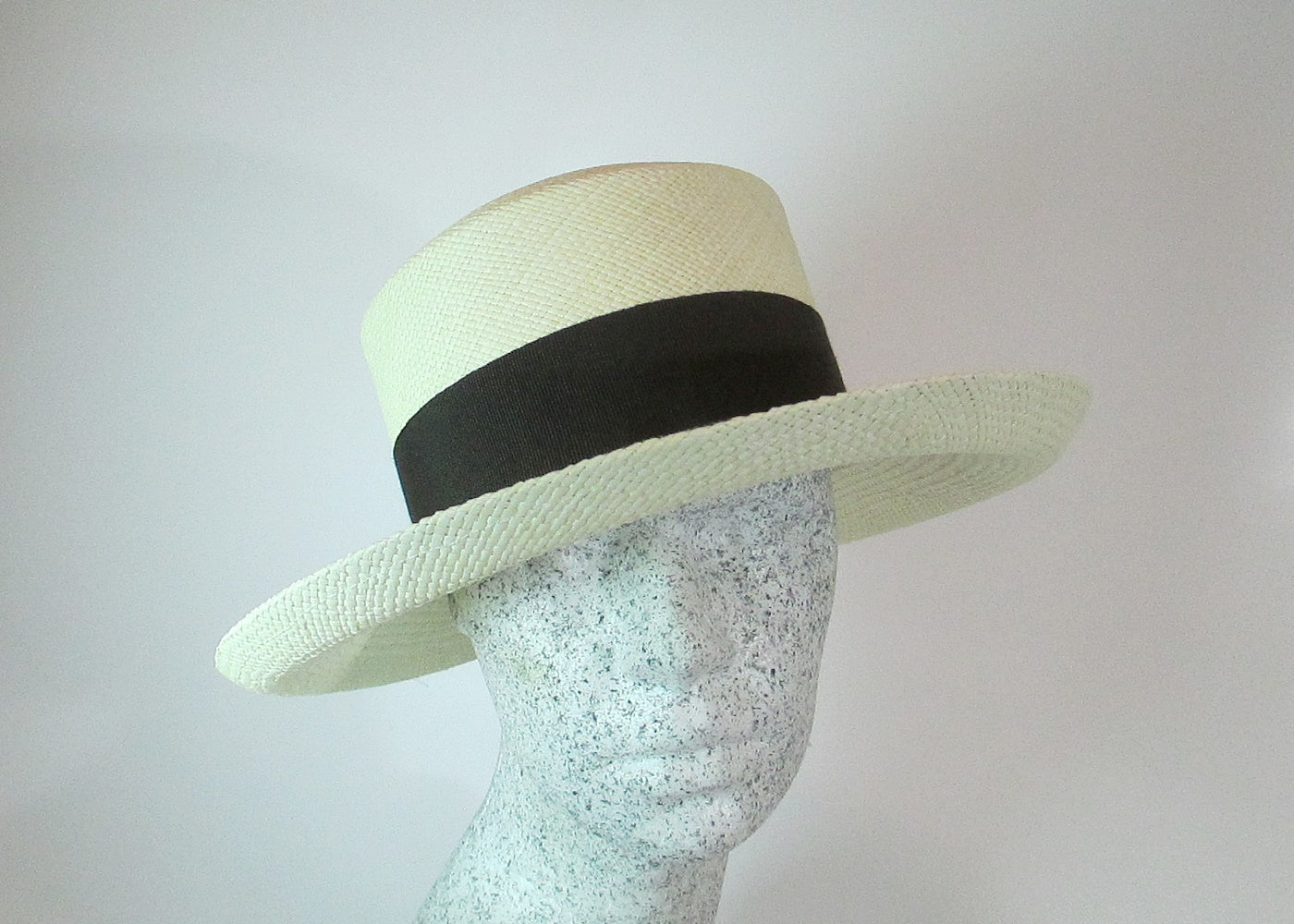 schicker Panama Strohhut mit Aufschlagrand - vorne geht der Rand nach oben
