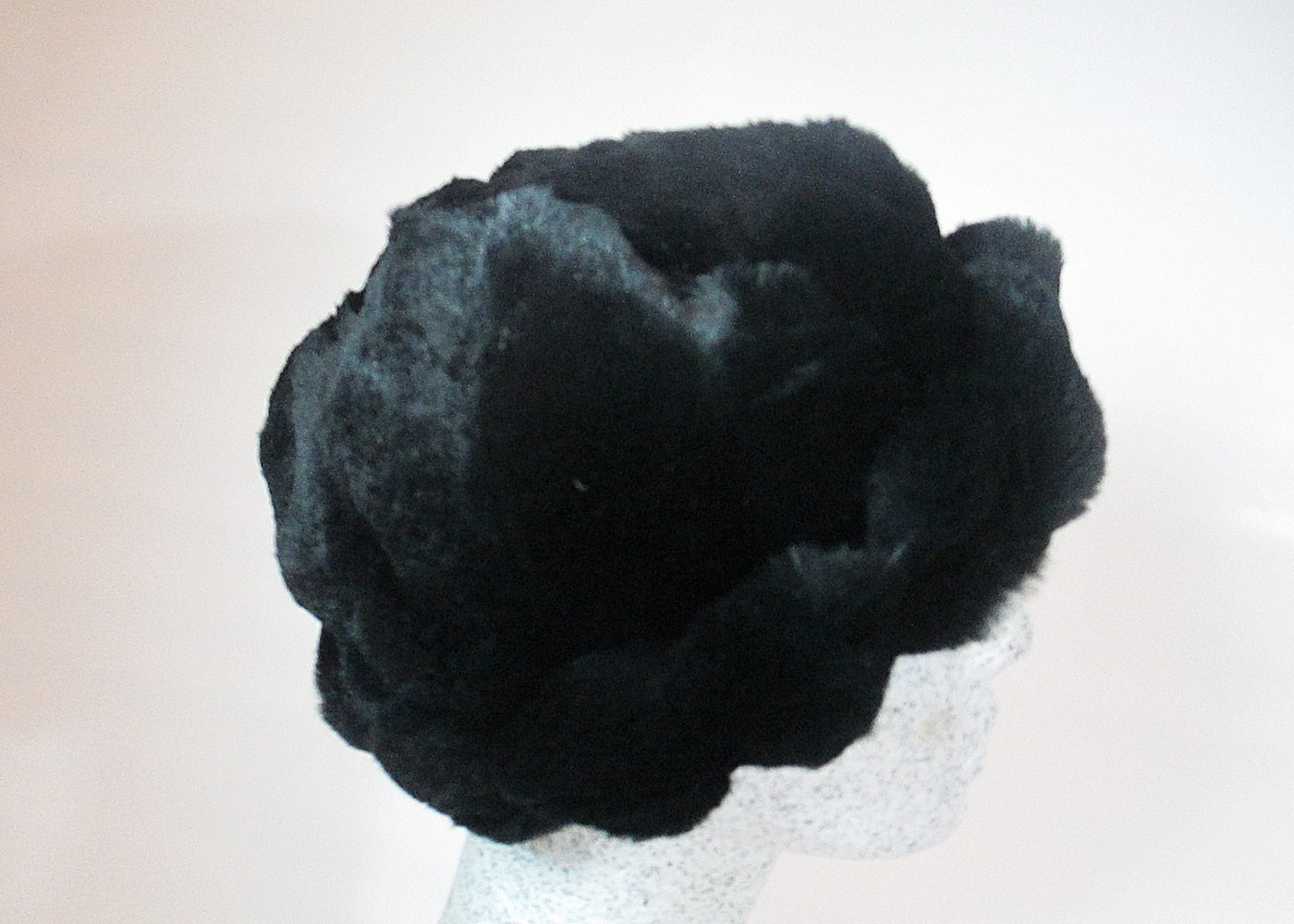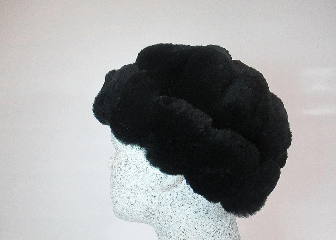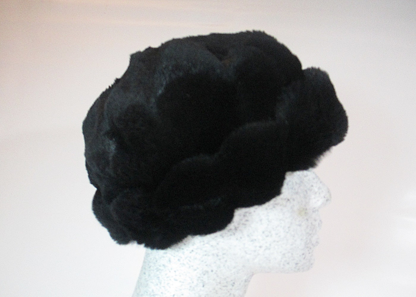 leichte warme Mütze aus schwarzem Rillenkanin - Kaninchenfell geschoren - ist samtig weich