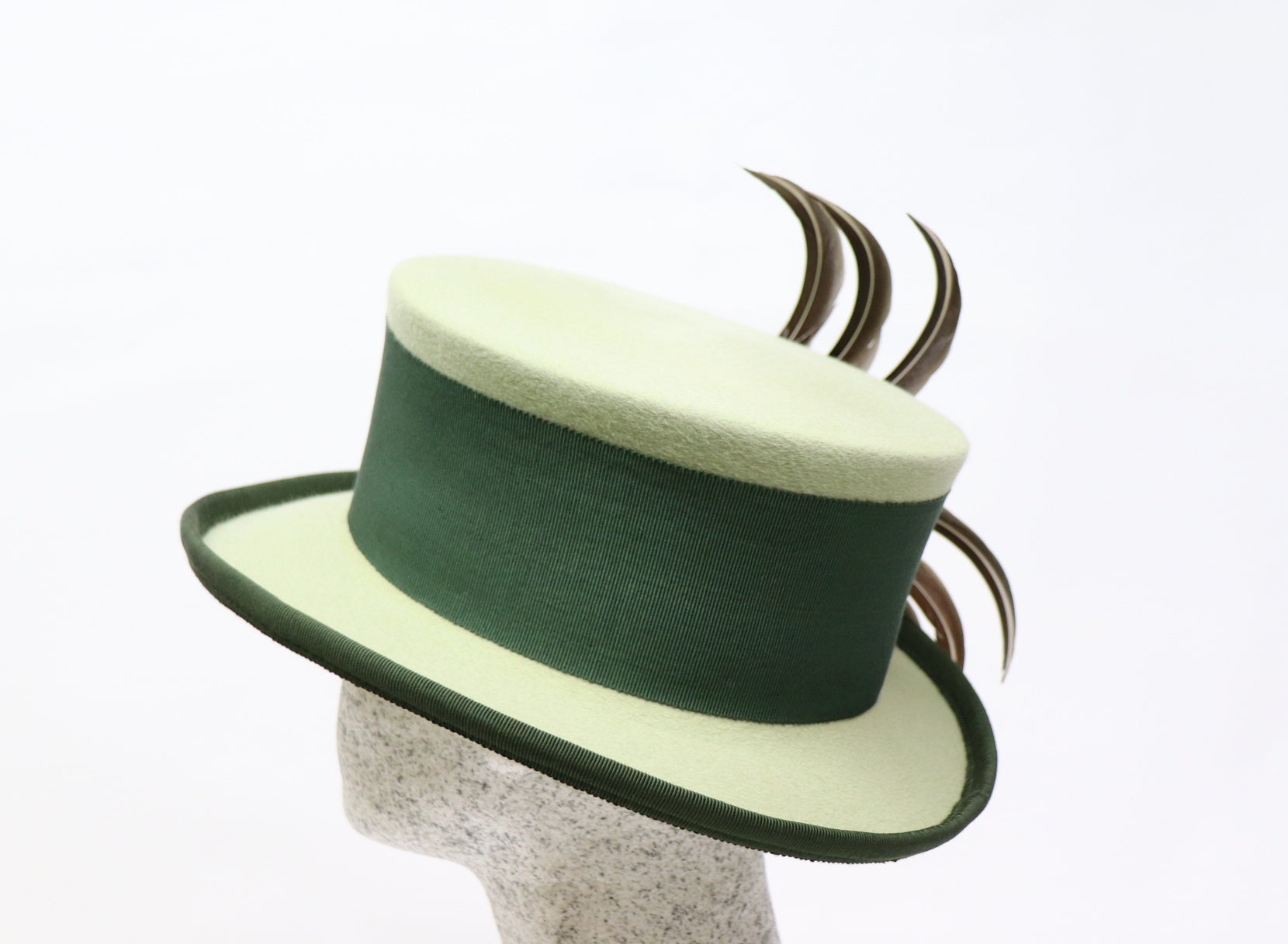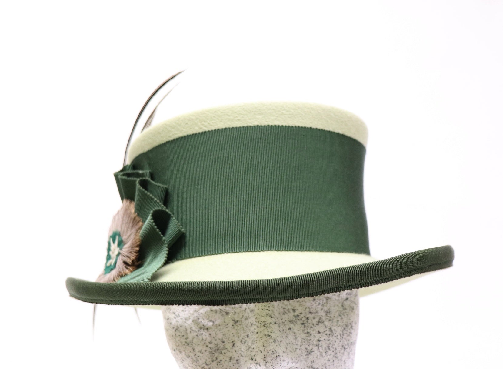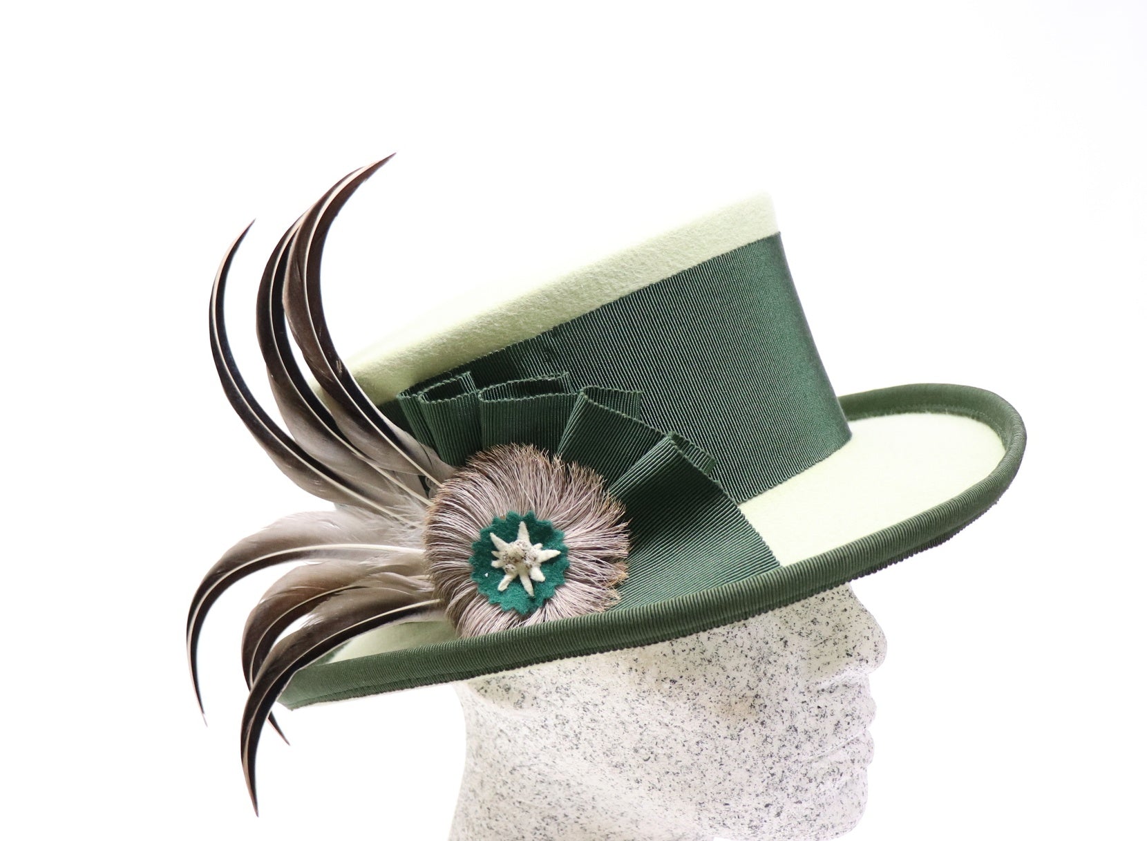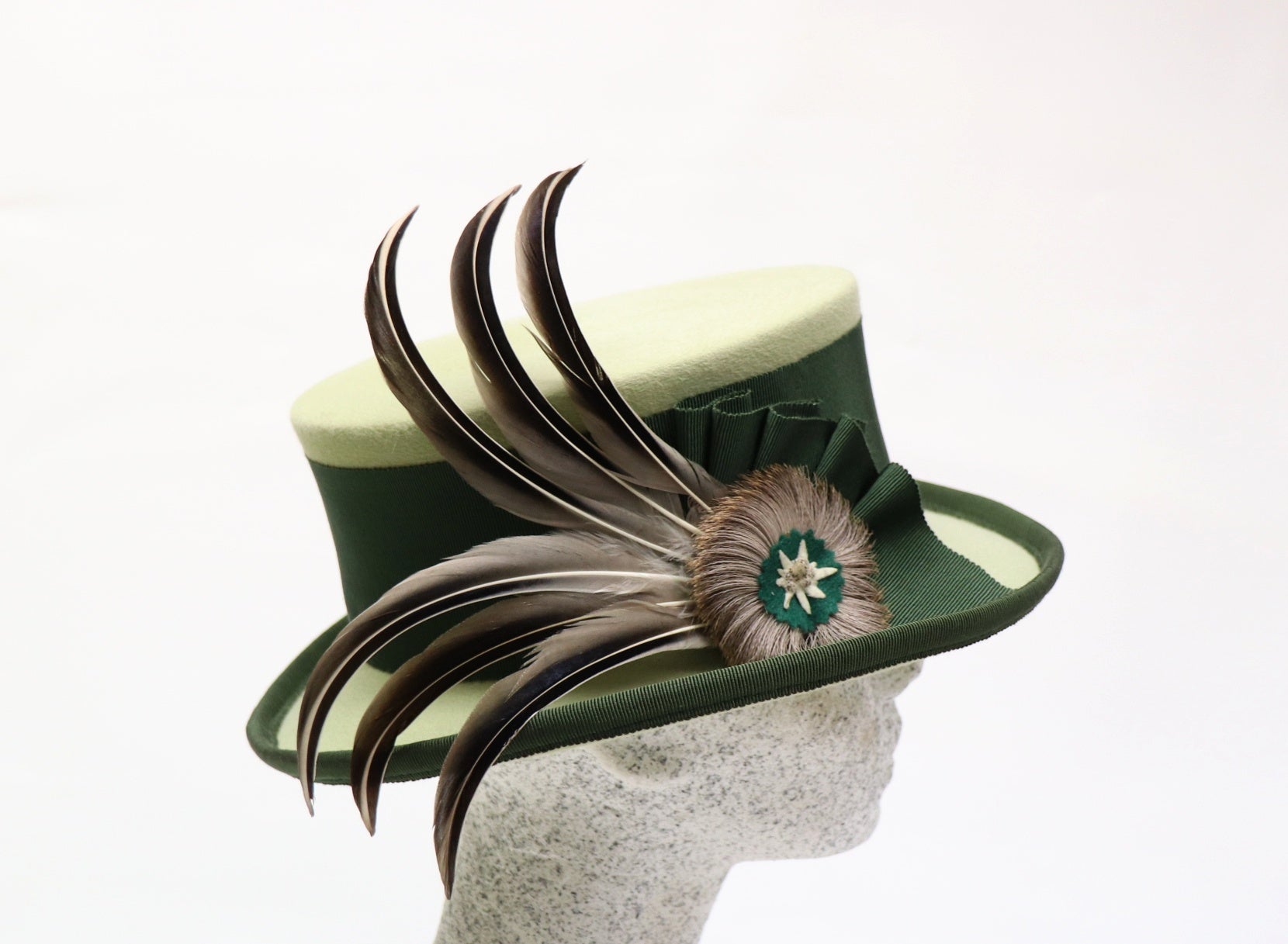 seitlich ein tolles - aufwendiges Federgesteck mit Rehrosette und Edelweiß