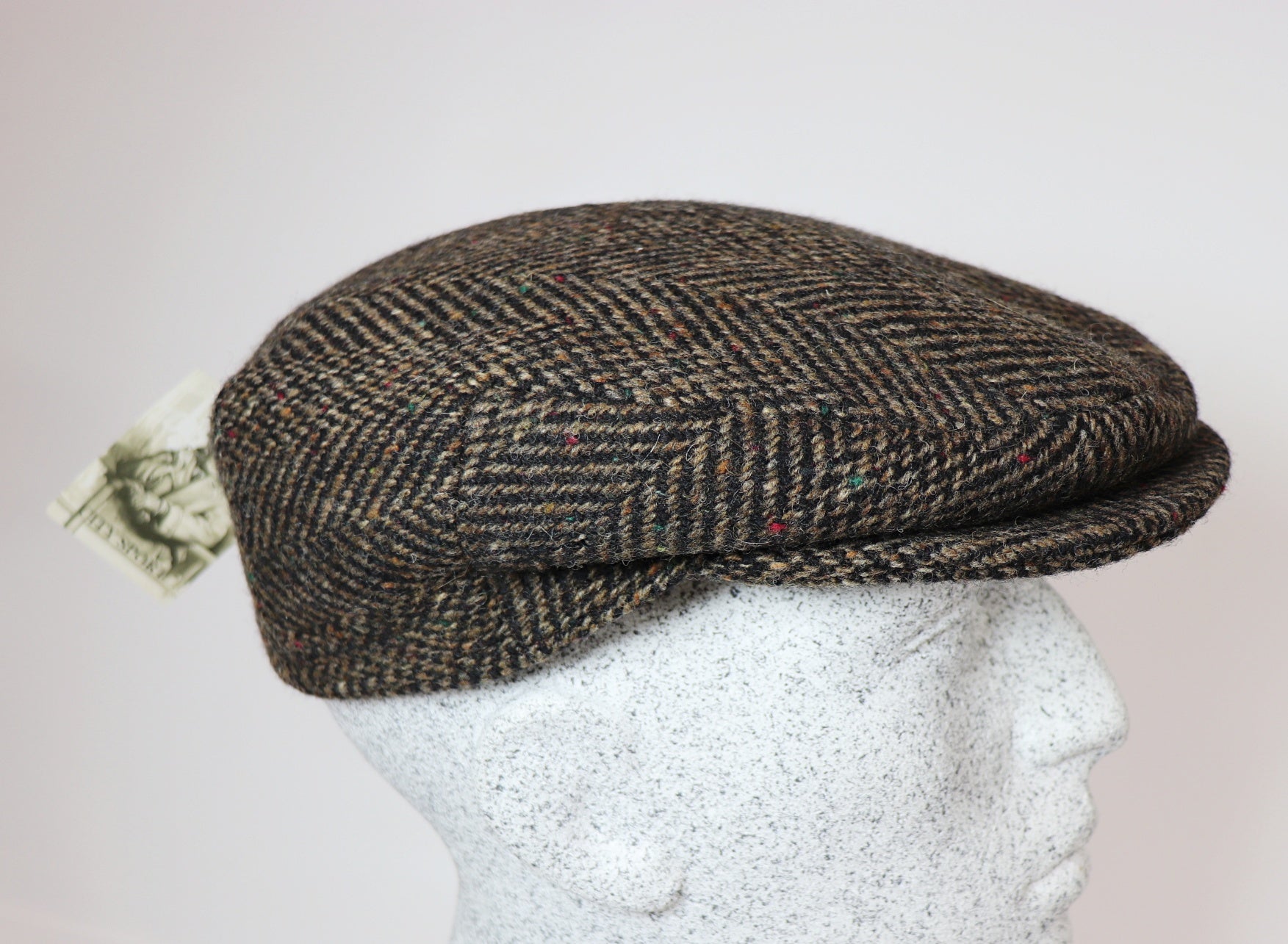 Schildmütze aus Donegal Tweed im Fischgrat Muster