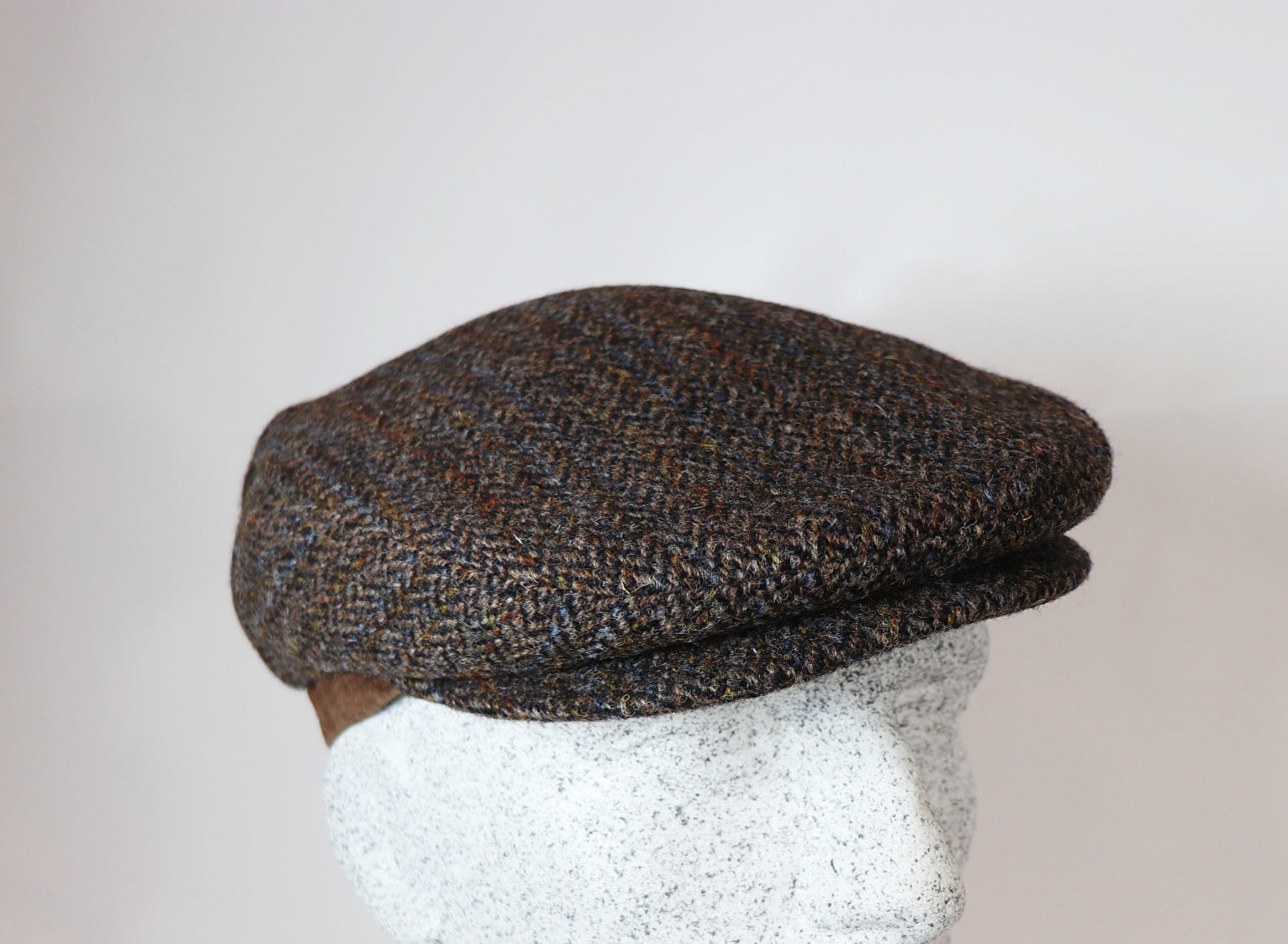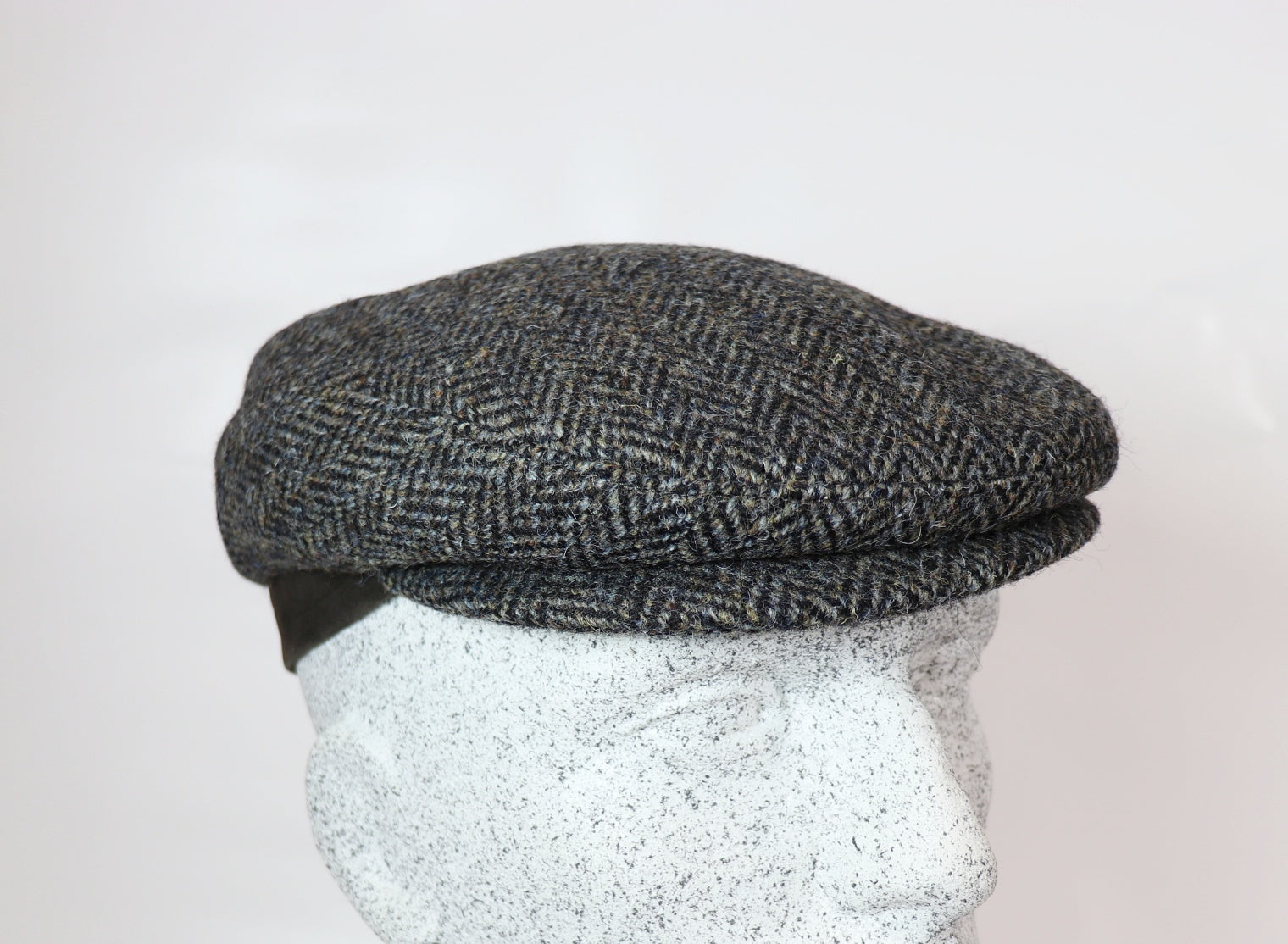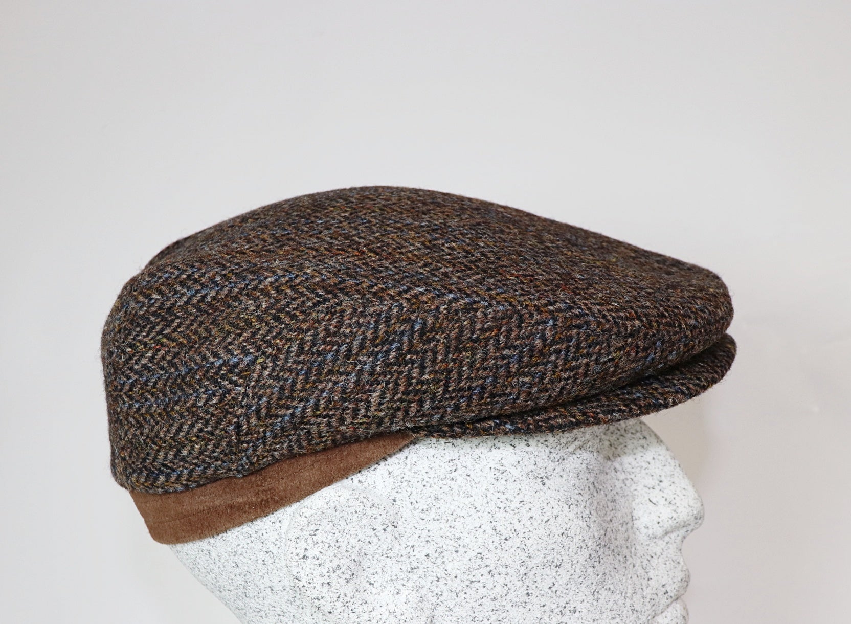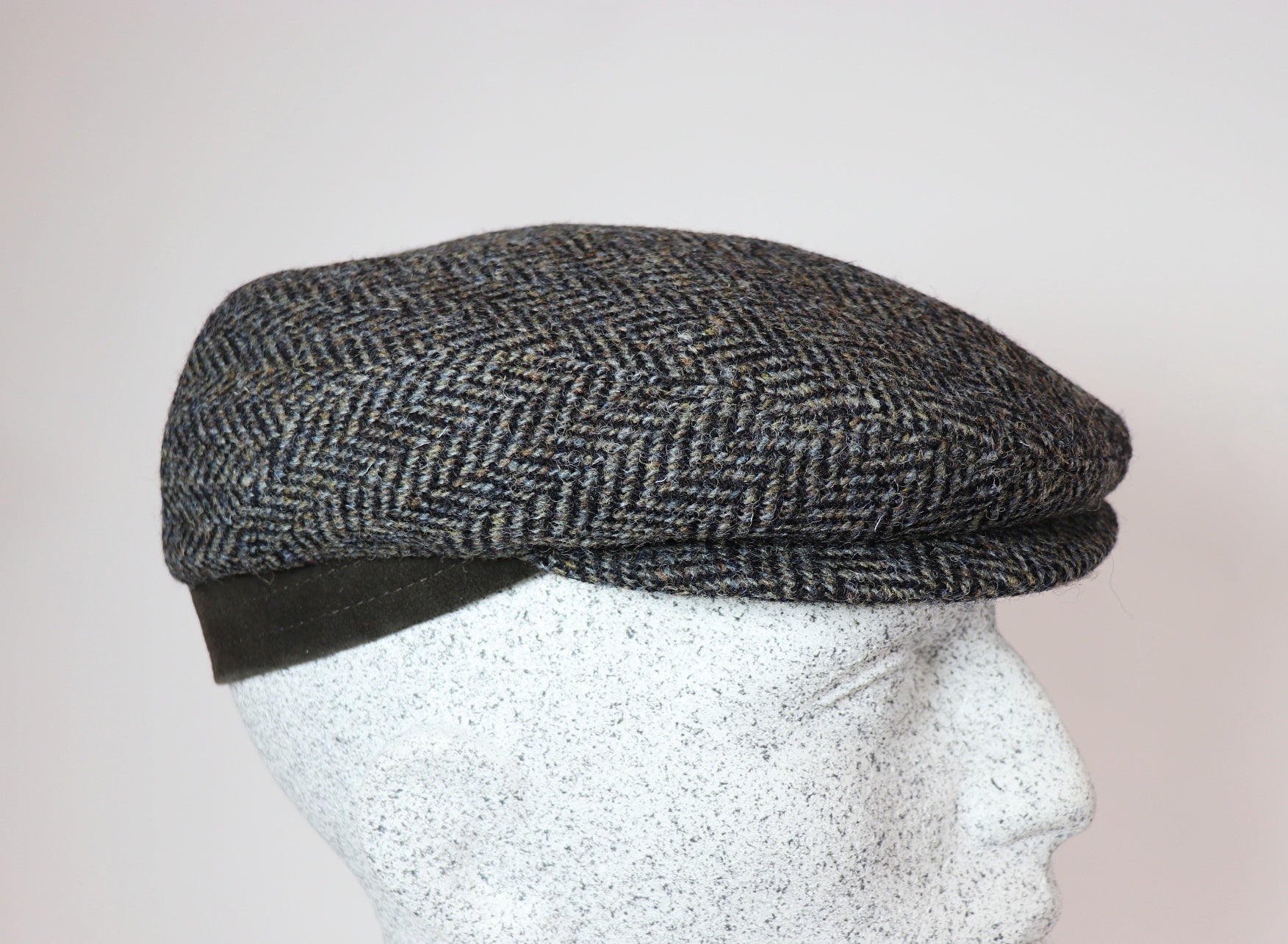 Schildmütze aus Harris Tweed im Fischgrat Muster mit Ledersteg
