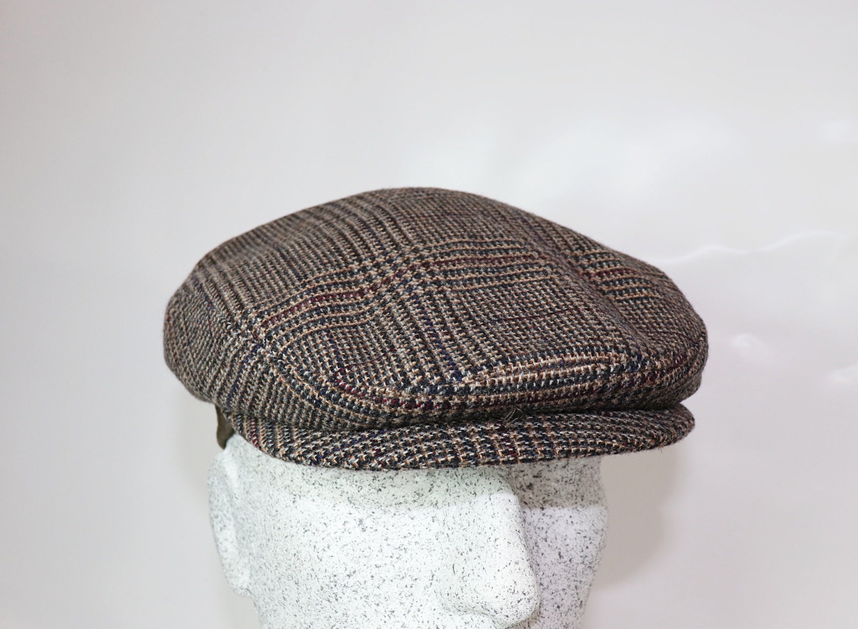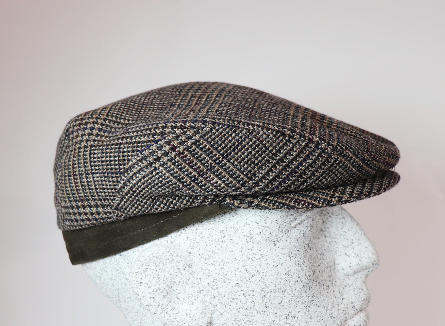 Schildmütze aus Wollstoff in braun Glenscheck mit braun Ledersteg