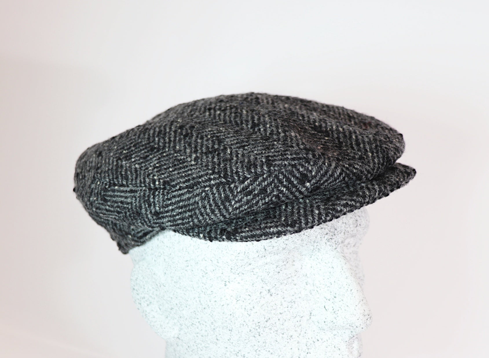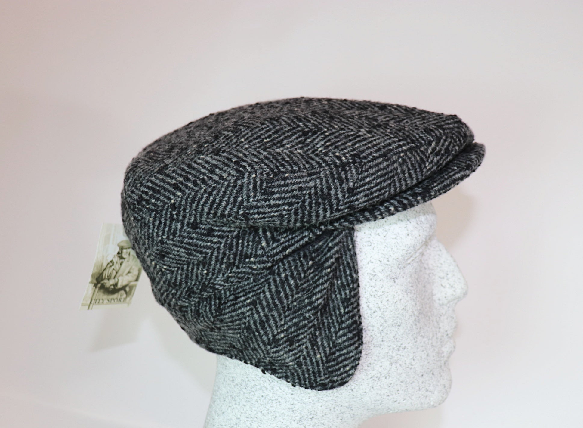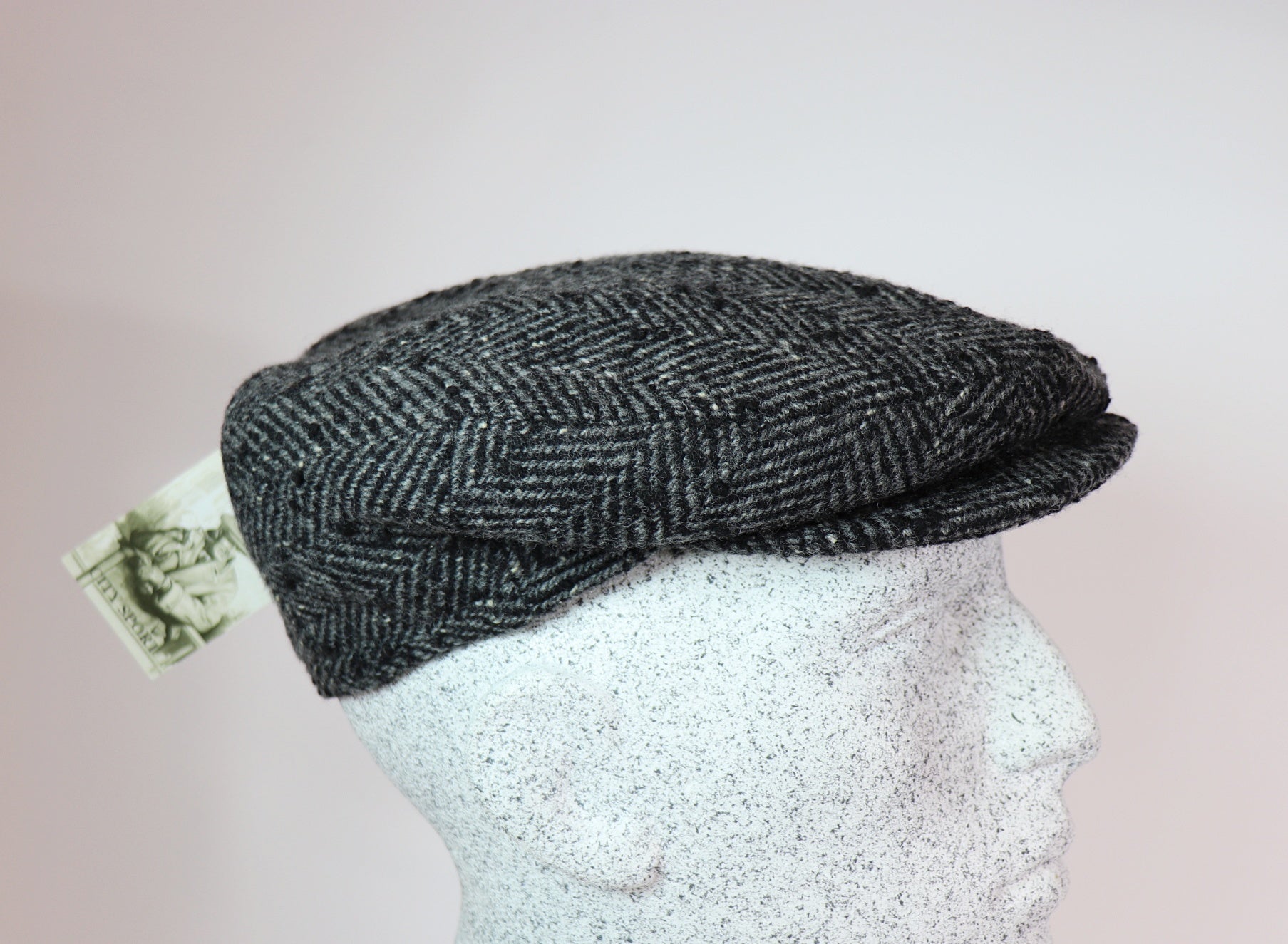 Schildmütze aus Donegal Tweed in grau Fischgrat