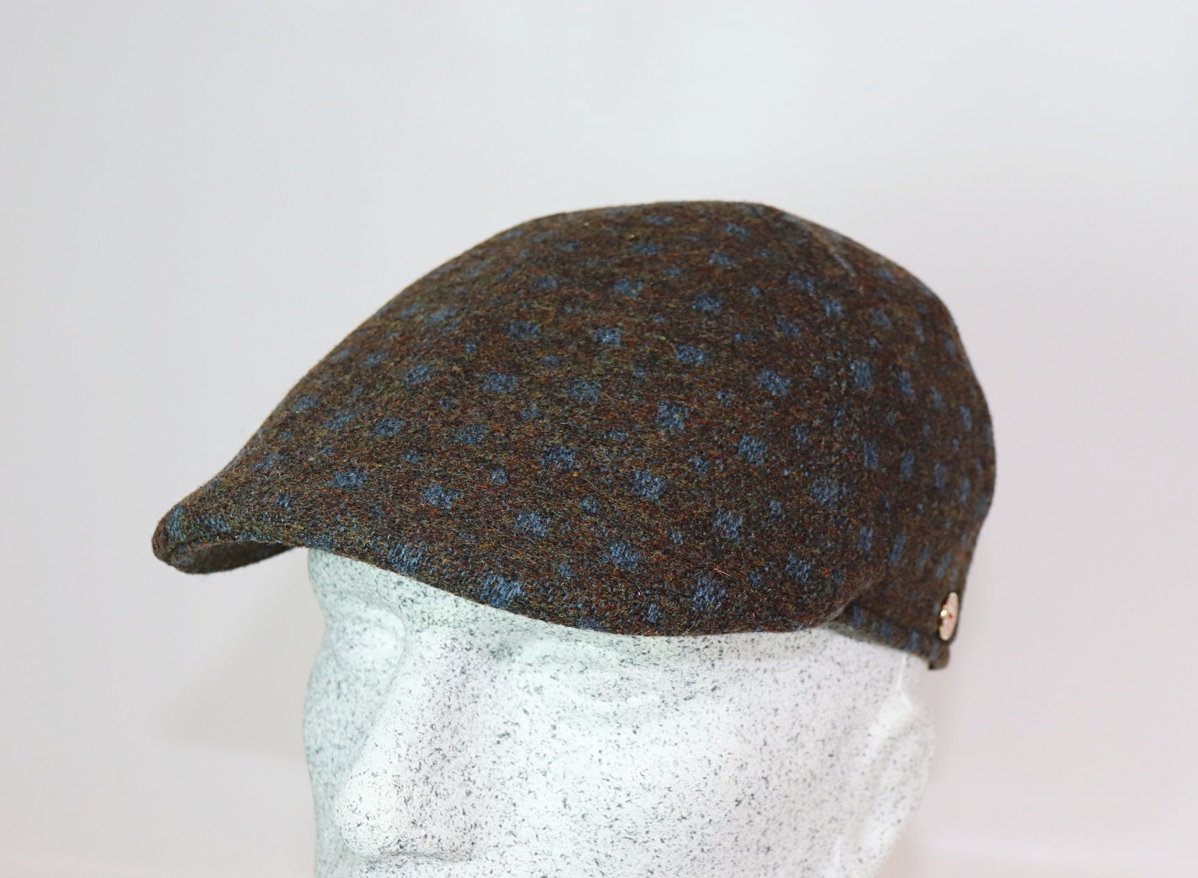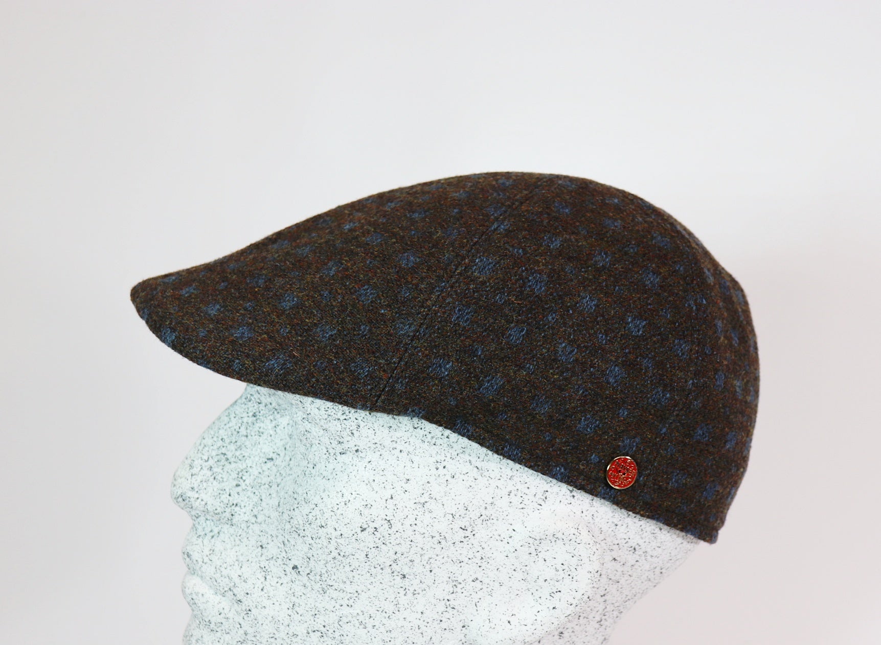 Schildmütze Paddy aus braunem Wollstoff mit blauen Ecken