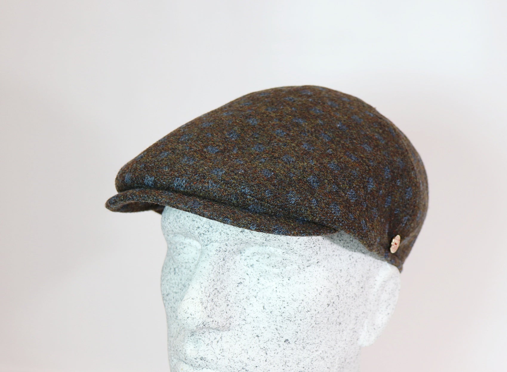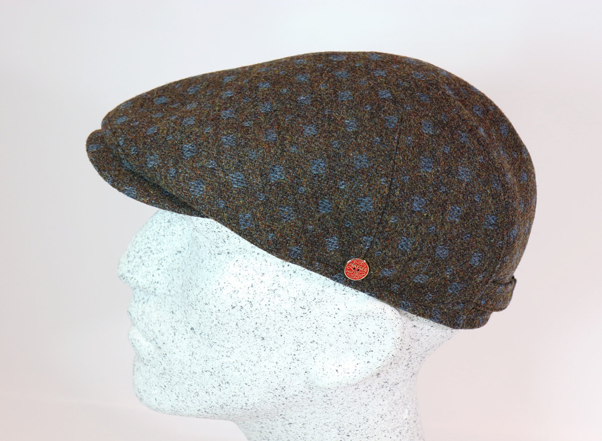 Schildmütze Simon aus braunem Wollstoff mit blauen Ecken - sehr schick