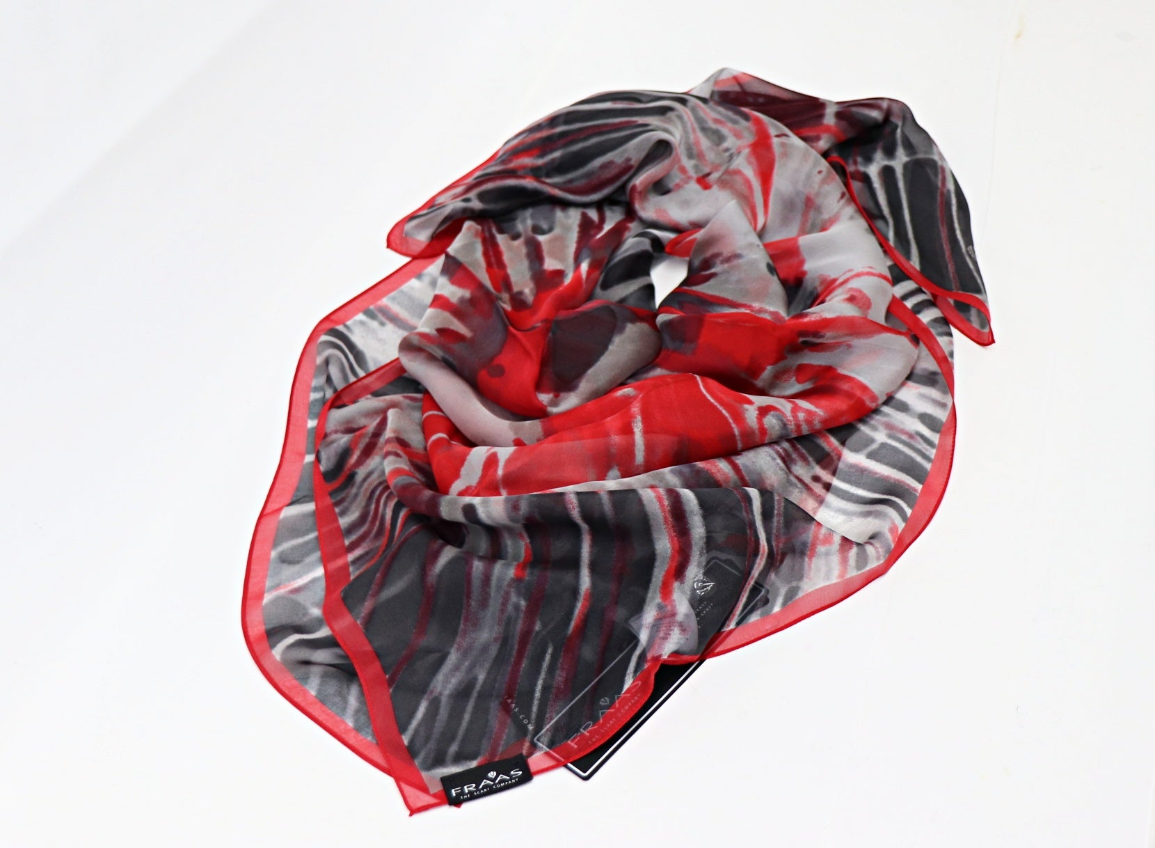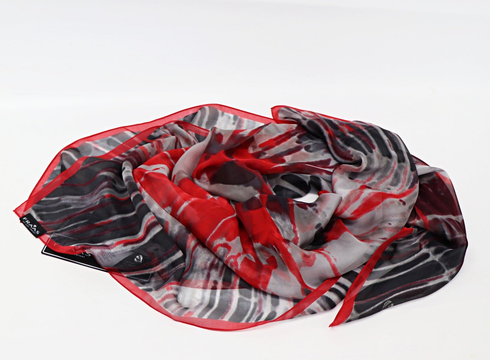 Seidentuch aus feinem Chiffon mit Batikmuster in grau - rot - schwarz