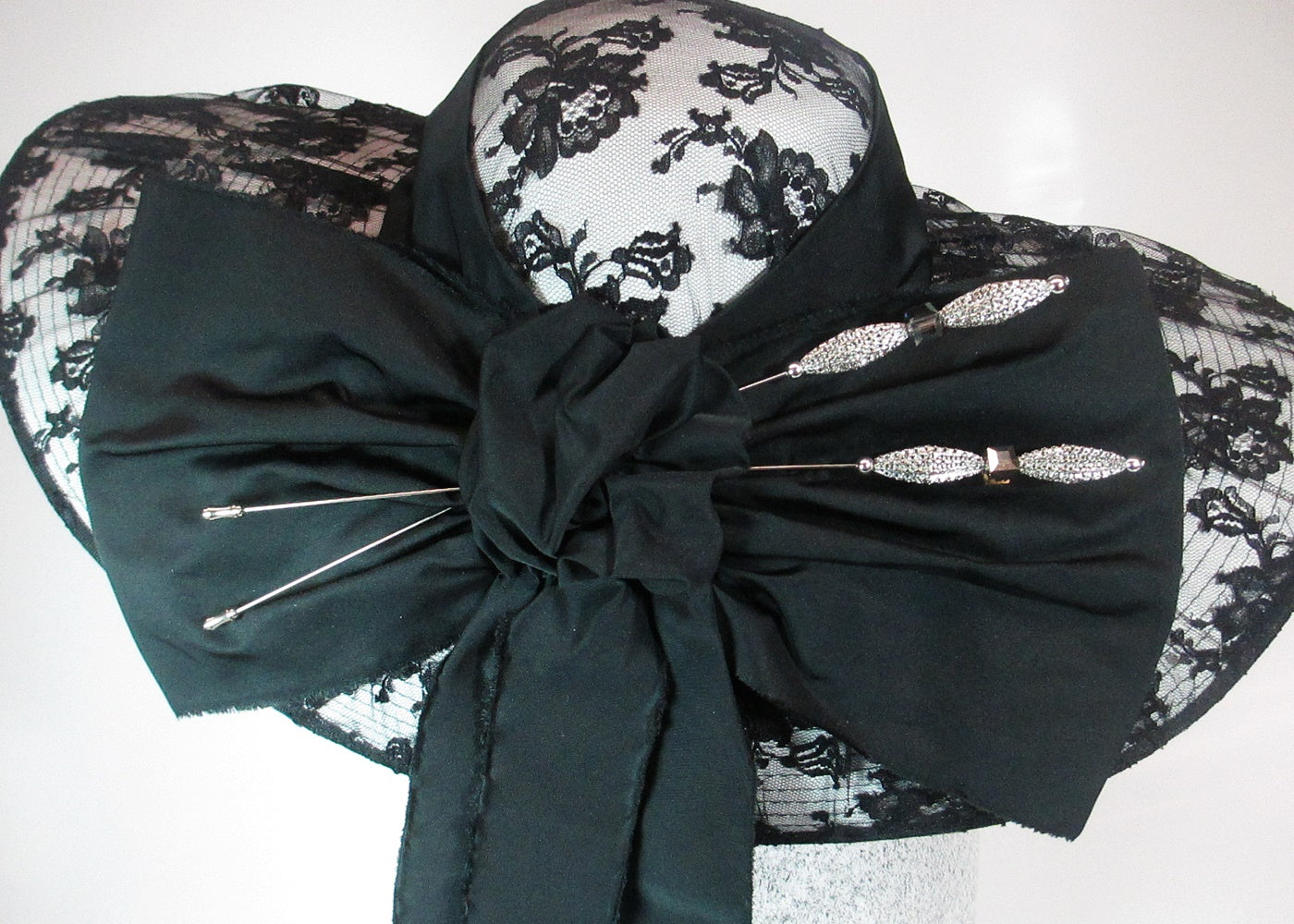 wird mit Kamm und Hutgummi oder einem Haarreif befestigt je nach Frisur