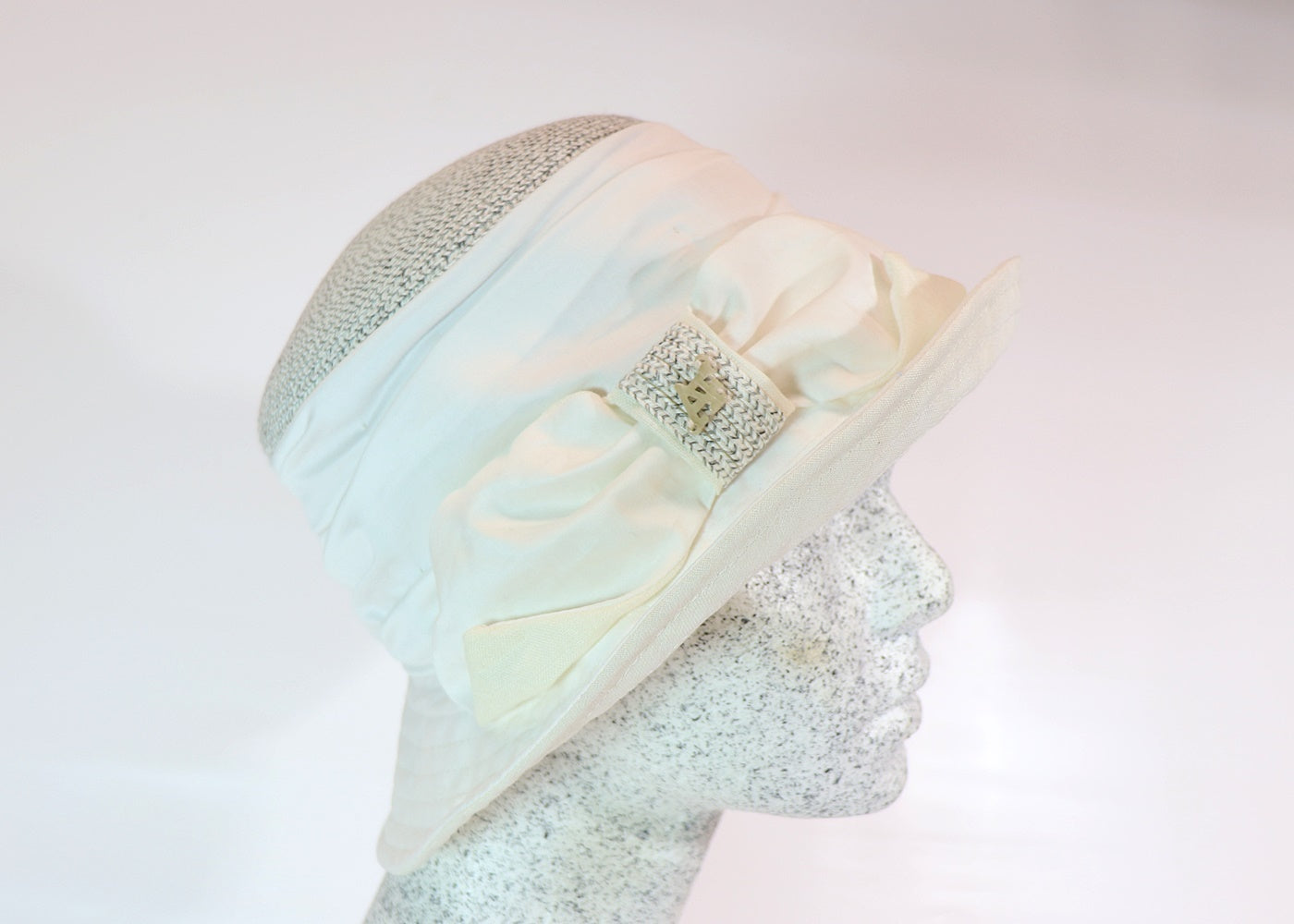 leichter Stoffhut - creme - weiß Glocke mit Schleife