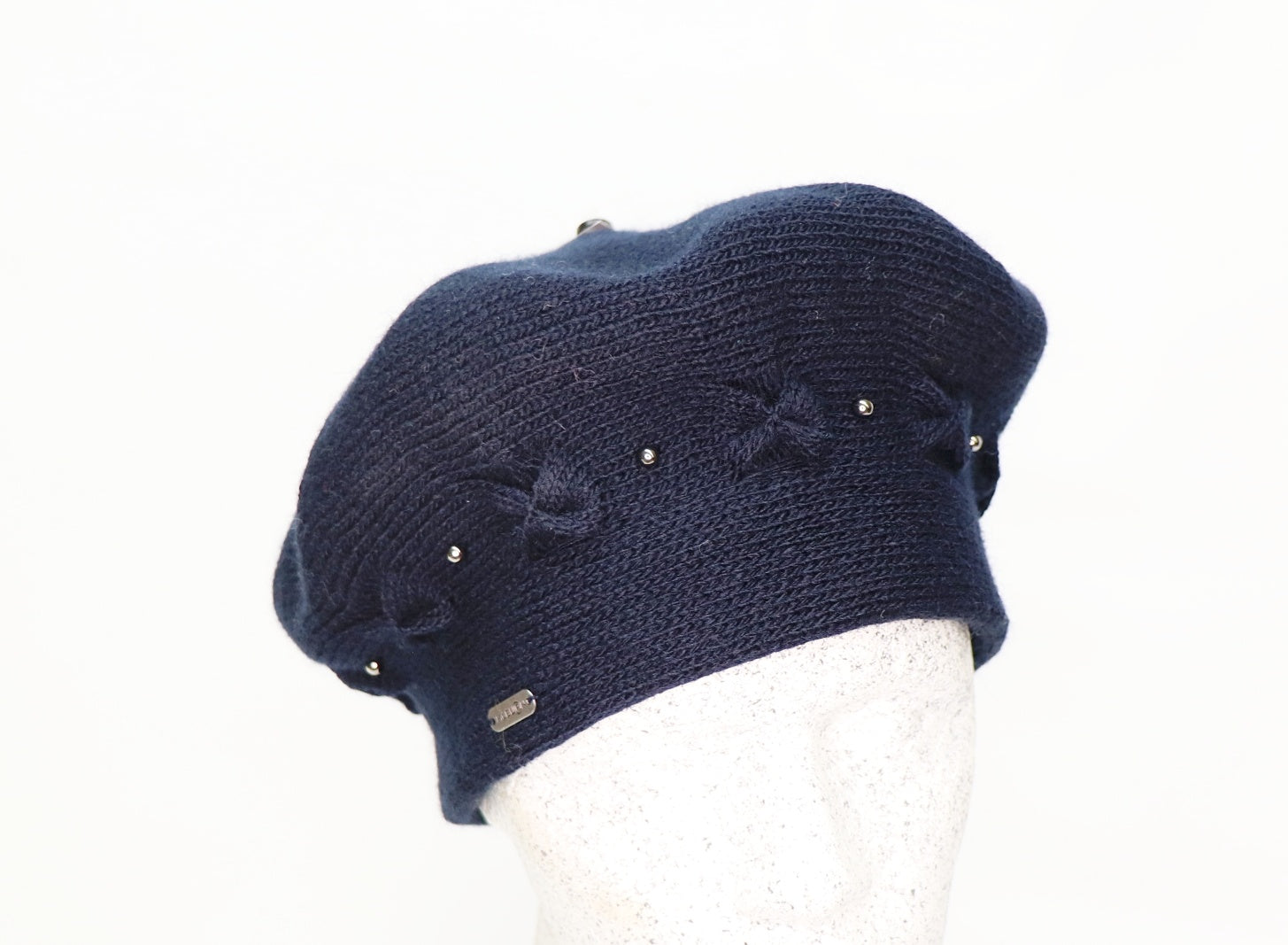 Strick Baske mit Perlen und kleinen Schleifchen oder Biesen