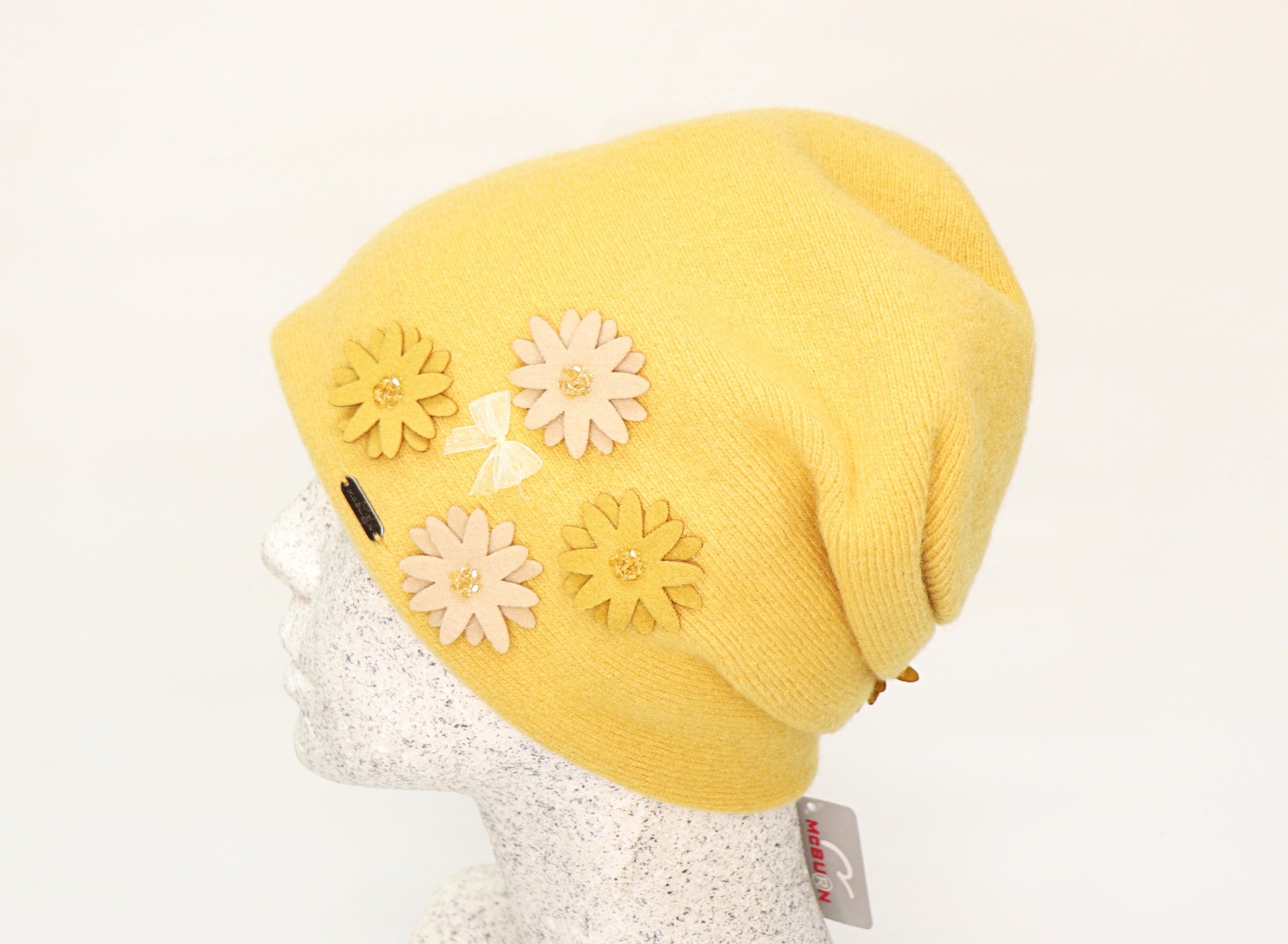 schicke Wollmütze die nach hinten in Falten gelegt ist