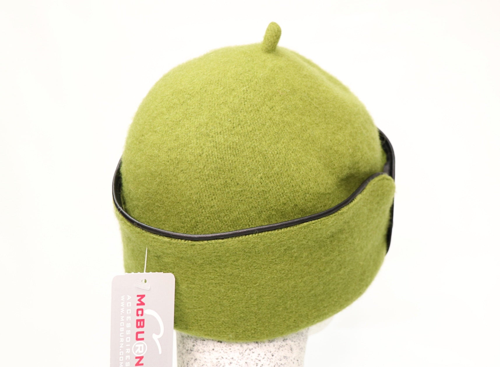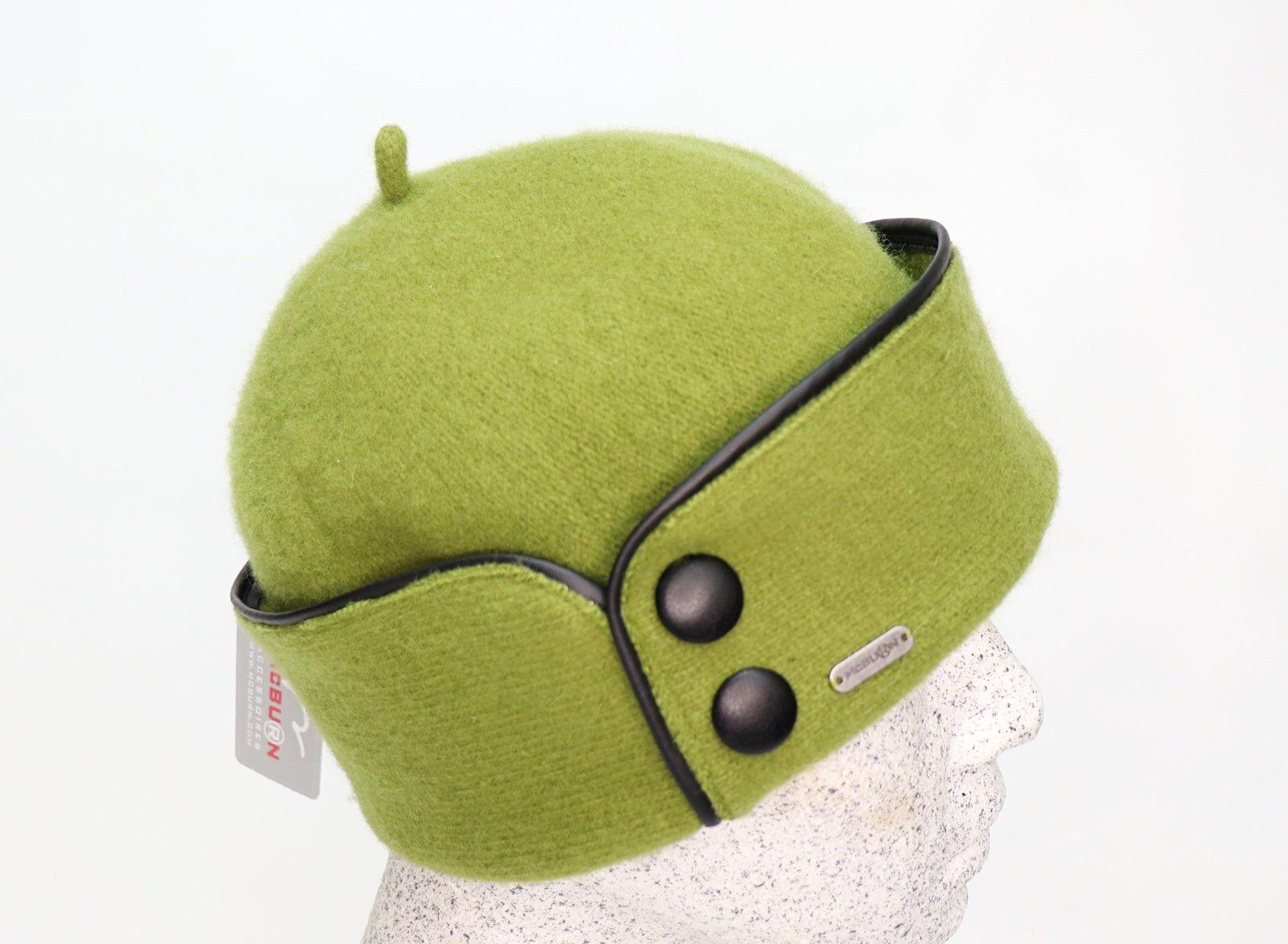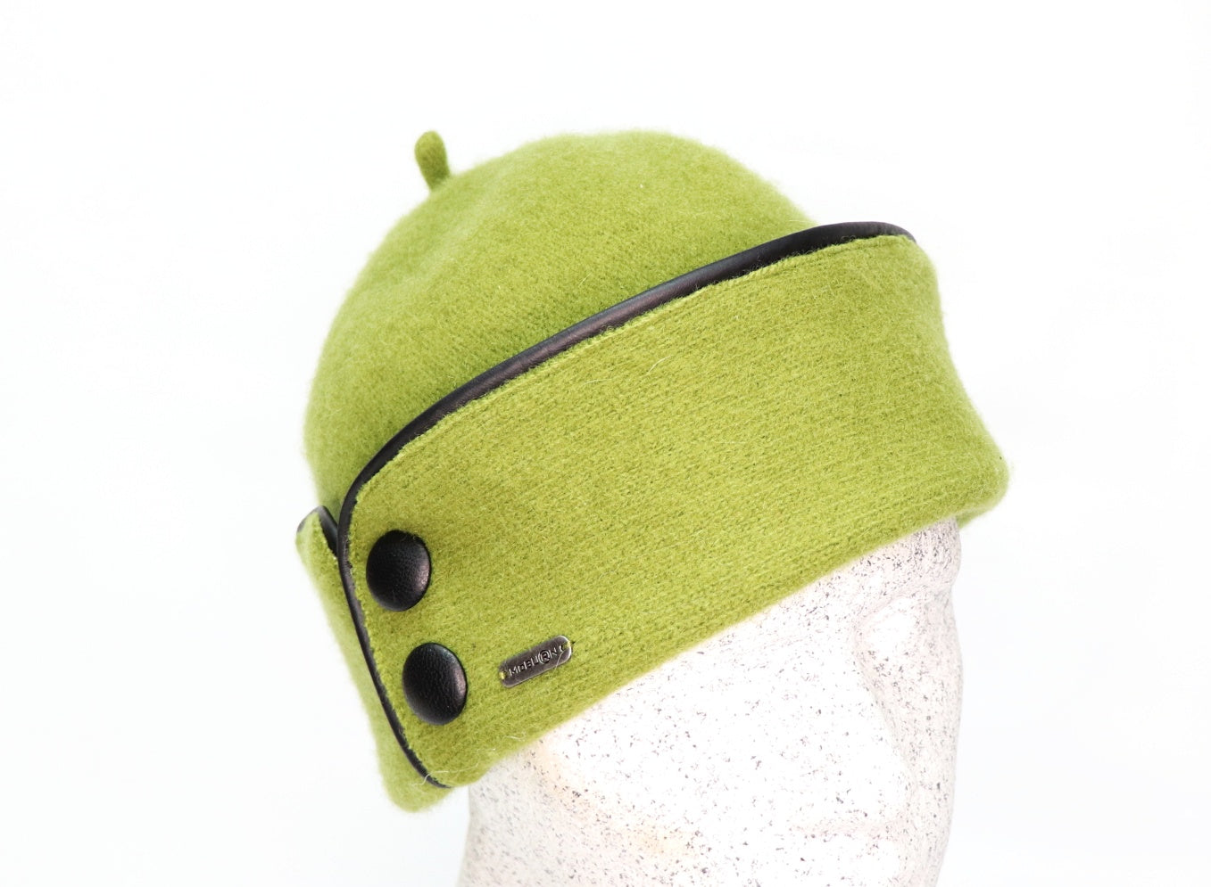 Woll Toque mit Knöpfen und einem Ledereinfass