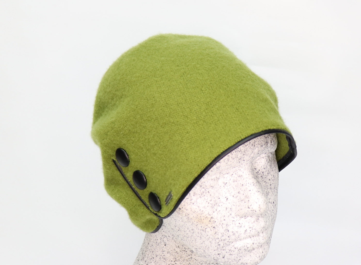 Wollslouch mit Knöpfen und einem Ledereinfass